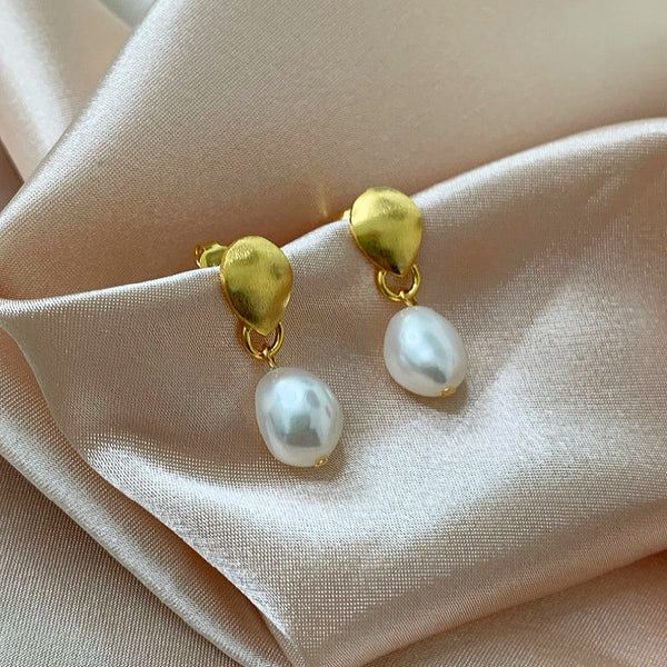 ELLIE WHITE PEARL GOLDEN CREOL EARRING