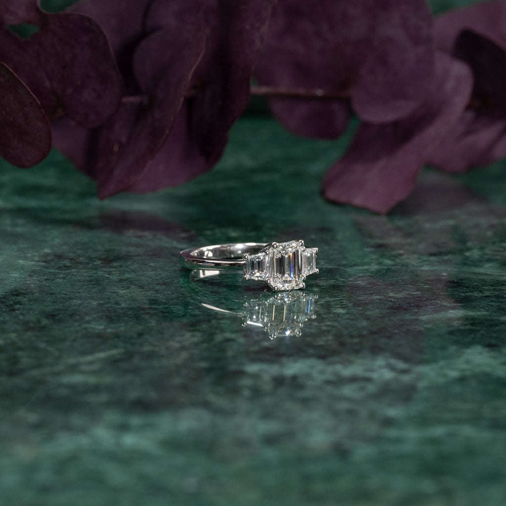 Our multi-stone diamond rings are popular choices for both engagements and weddings. The number of stones can carry symbolic meaning — for instance, three diamonds traditionally represent the past, present, and future. Both our beautiful three-stone and five-stone designs feature graduated diamond sizes, with the center stone being the largest.