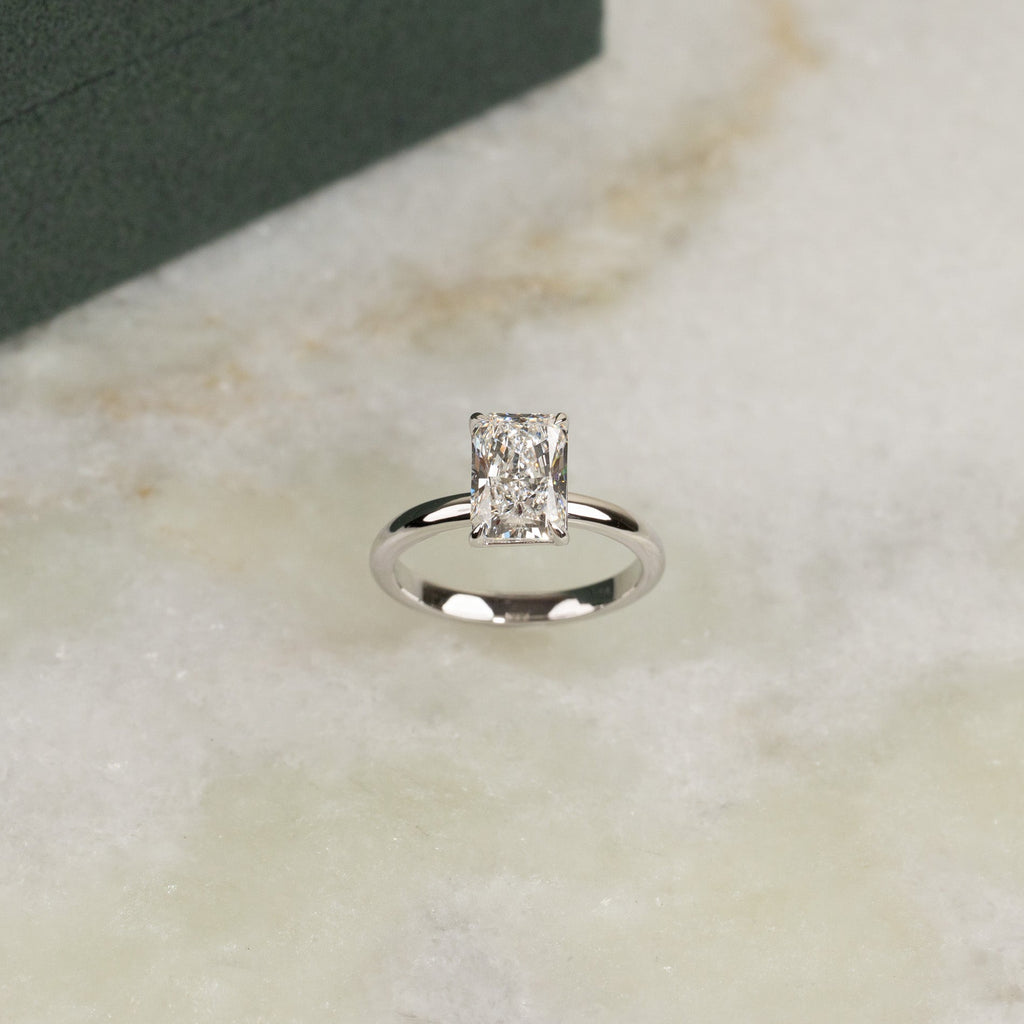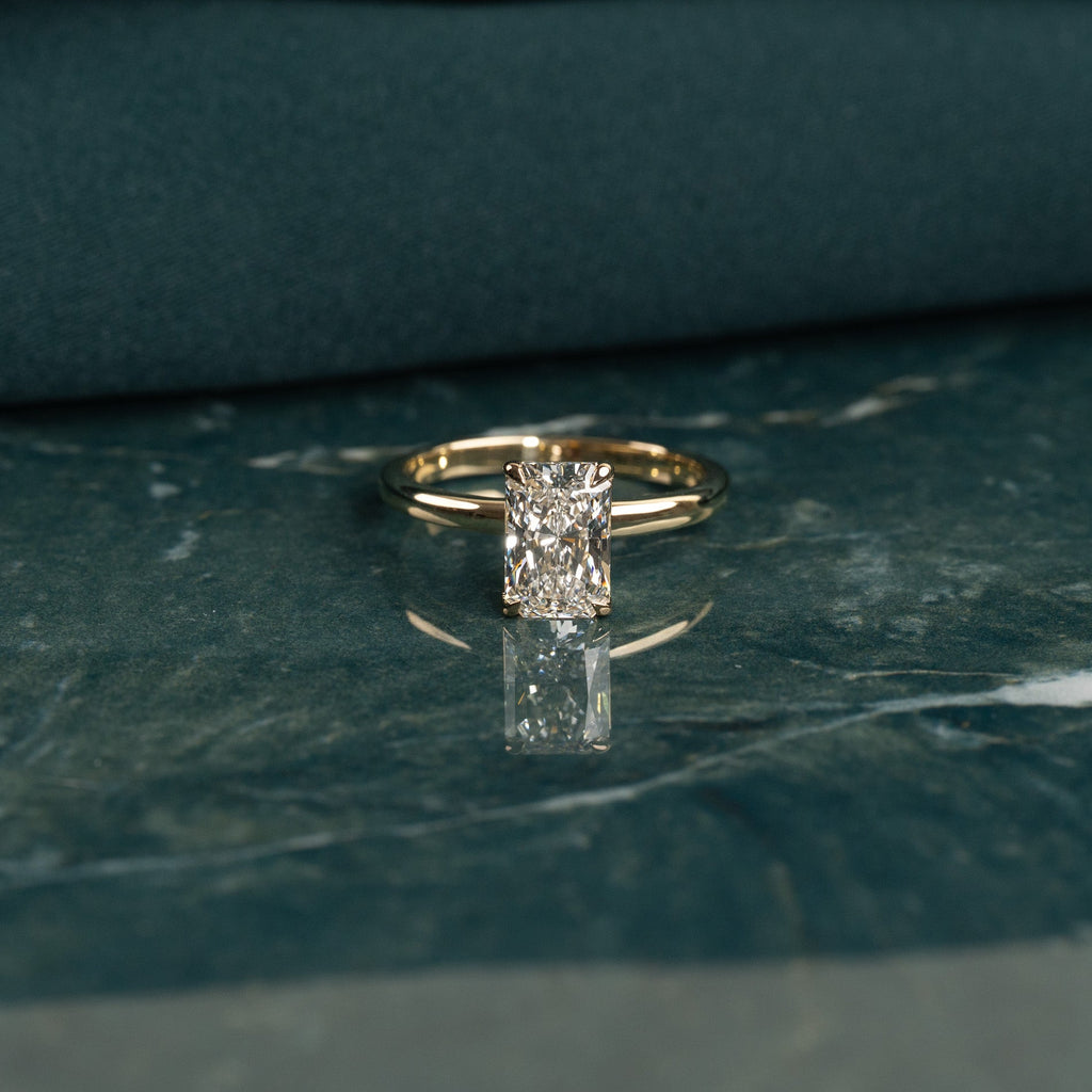 Our solitaire diamond rings are of the highest quality, featuring E/F color (River) and VVS clarity. They are lab-grown using, among other things, solar-powered energy, and the gold is 100% recycled. With lab-grown diamonds, you get a piece of jewelry that is chemically and visually identical to natural diamonds, but at a much more accessible price.