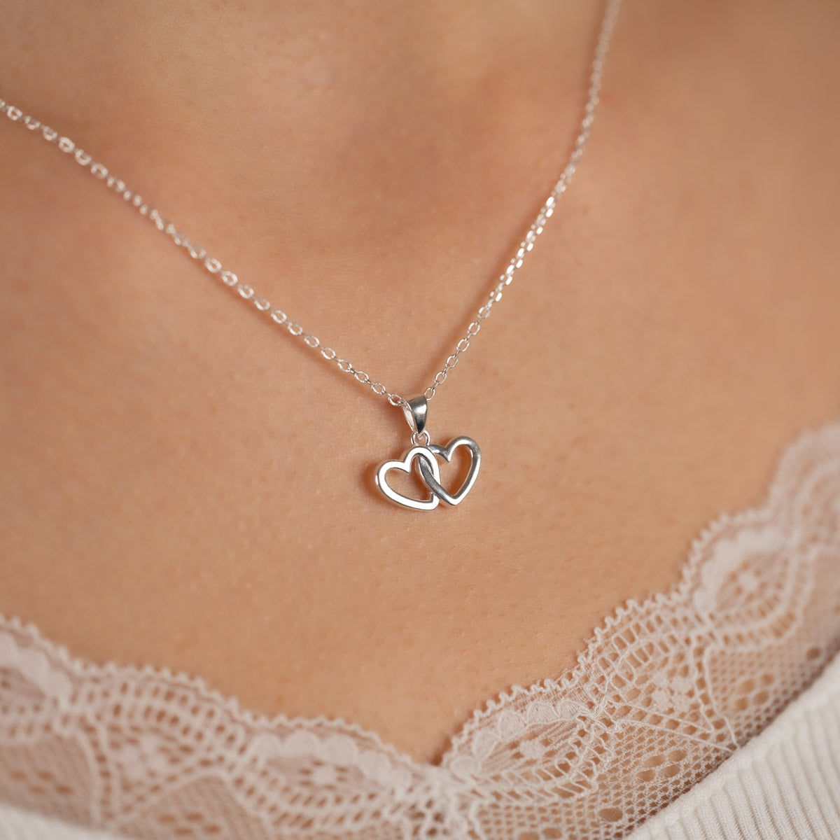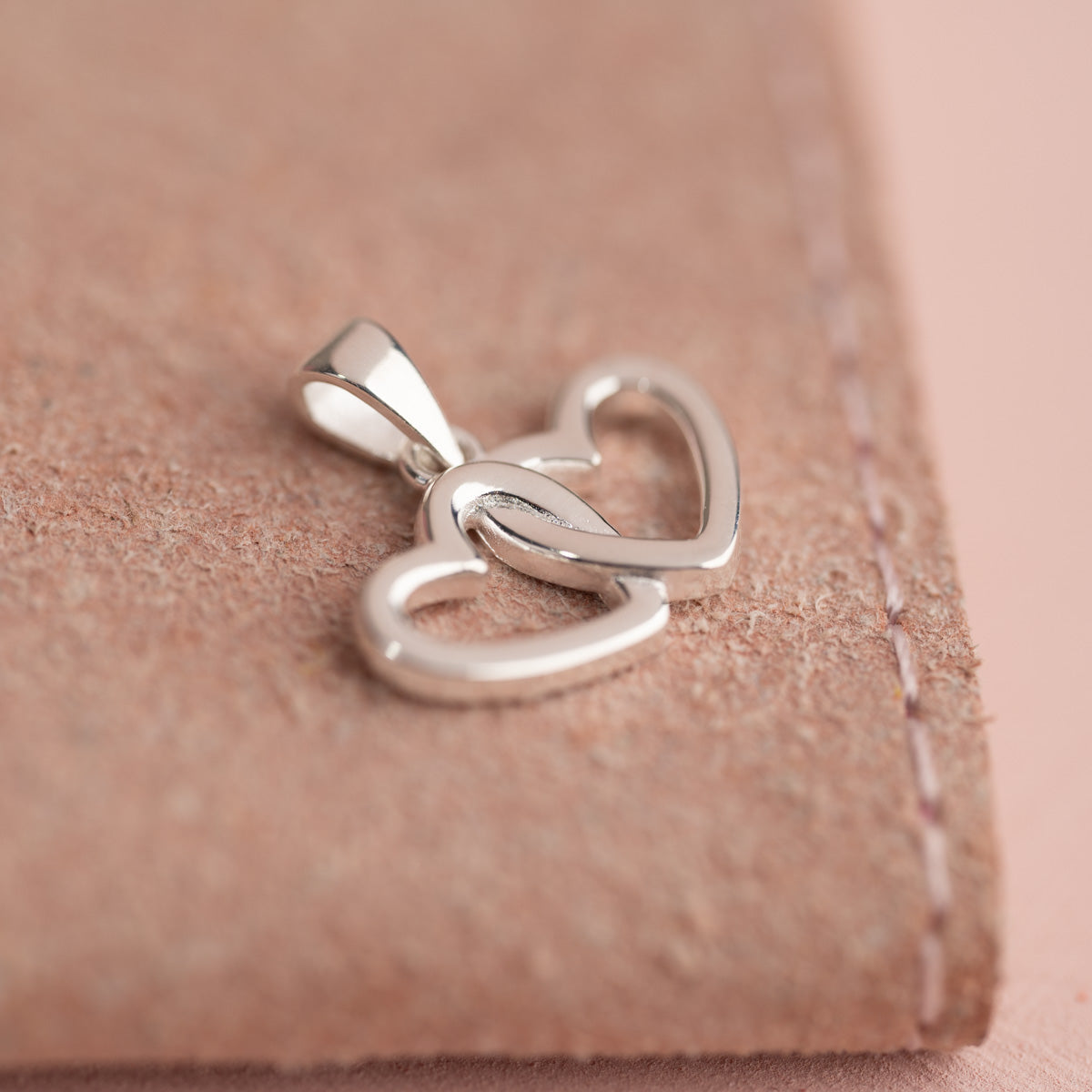 This heart pendant is made of 100% 925 sterling silver. It features two completely united hearts, adding a charming and sweet detail to the pendant.