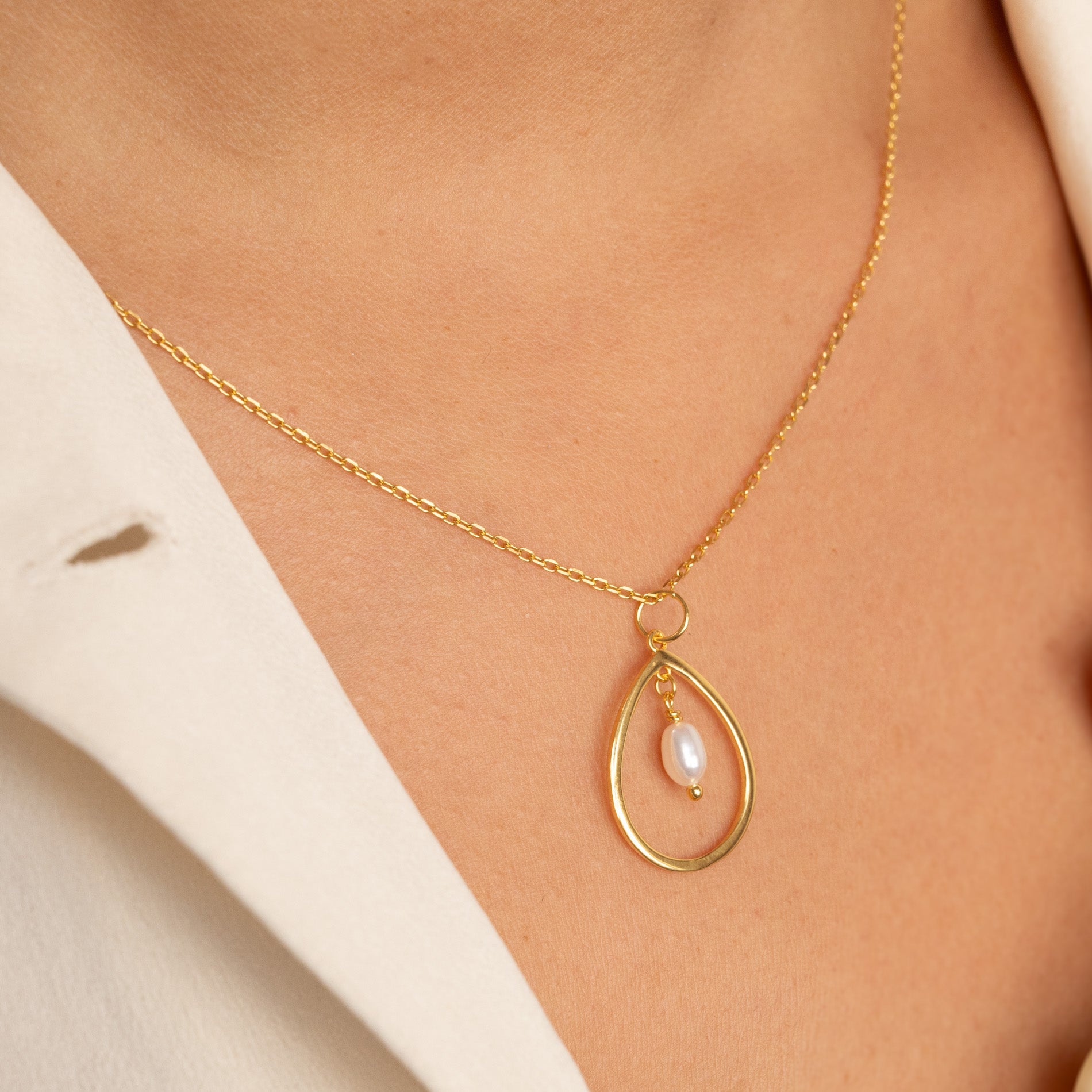 Drop-shaped pearl pendant in gold-plated silver