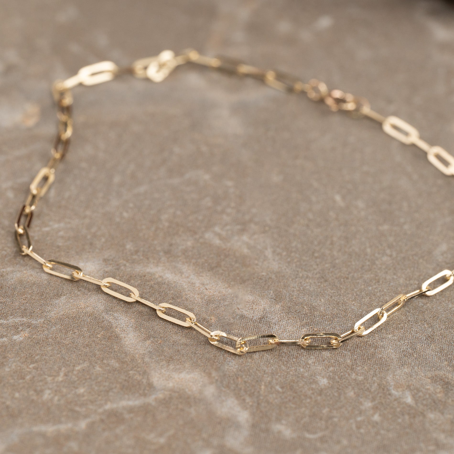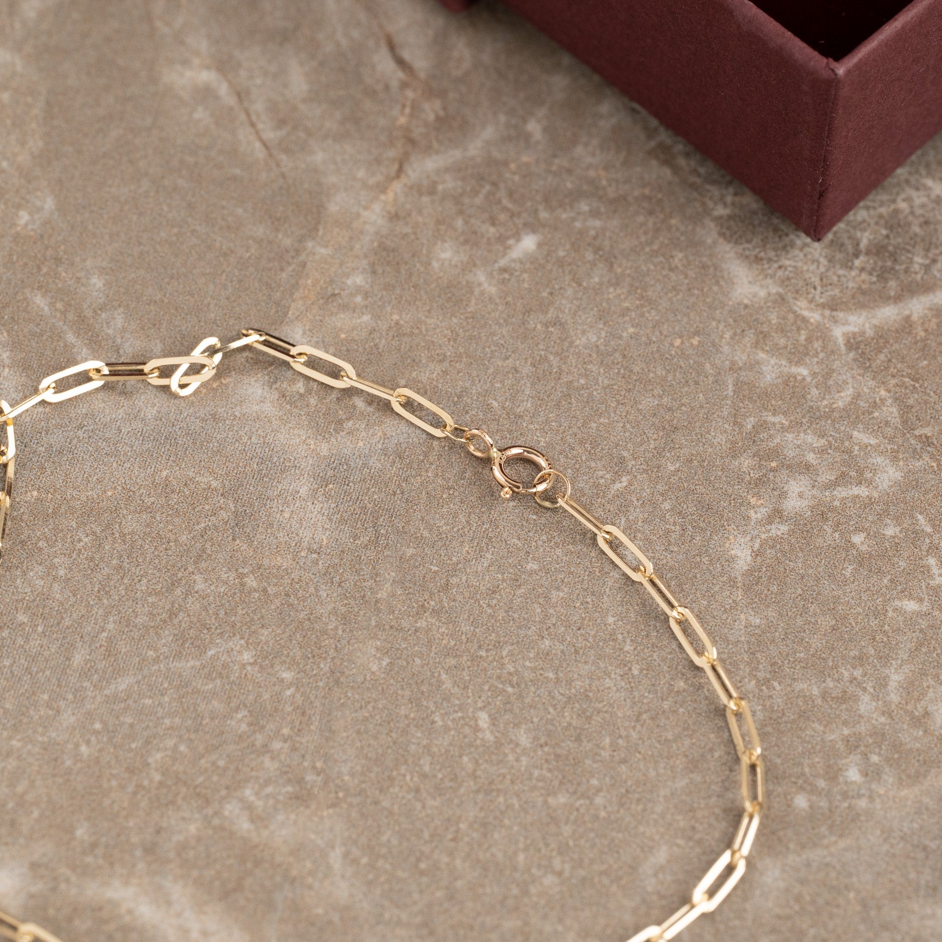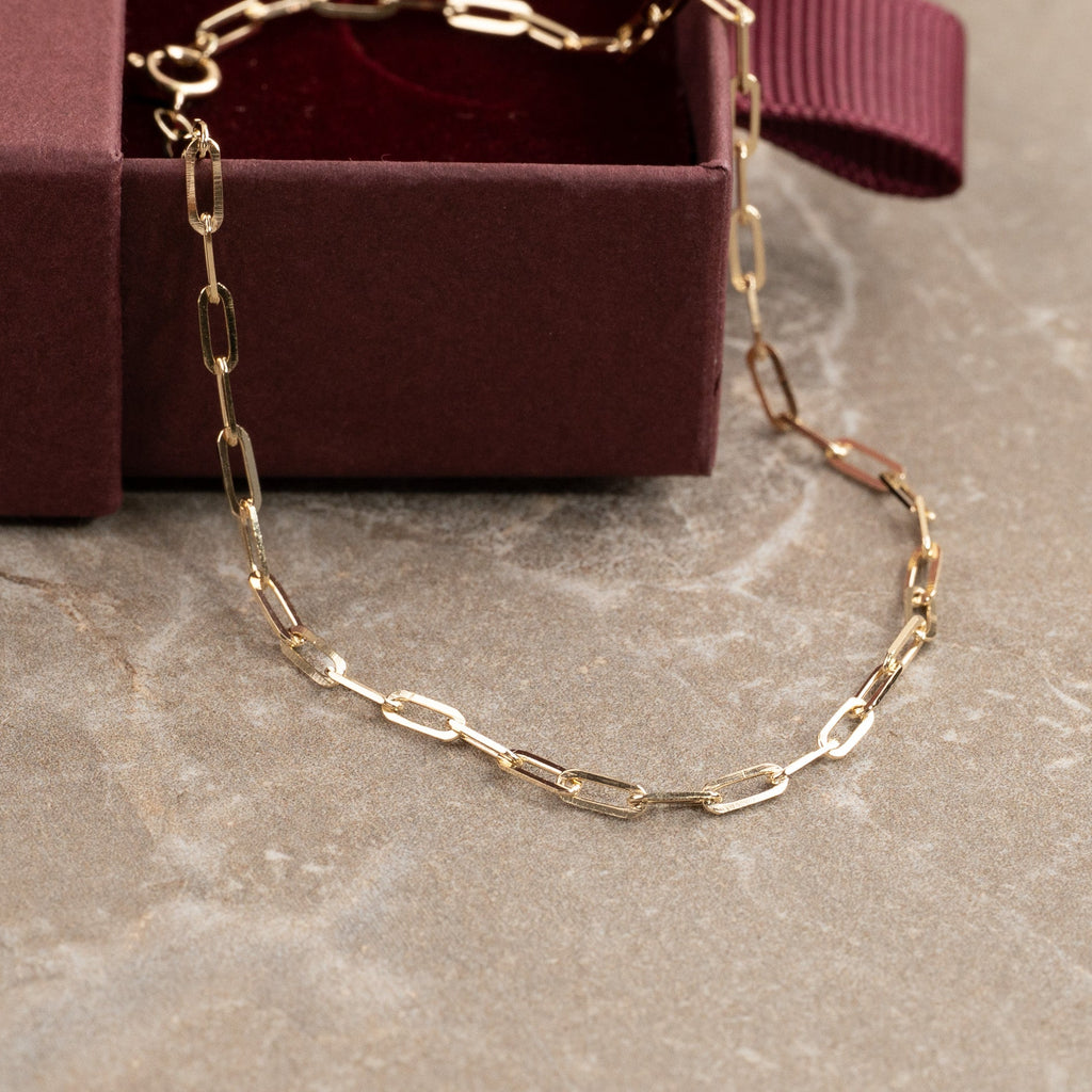 The Alma Medium gold bracelet is made of 100% recycled solid 9 carat gold. The bracelet is made as a 'paperclip' chain.