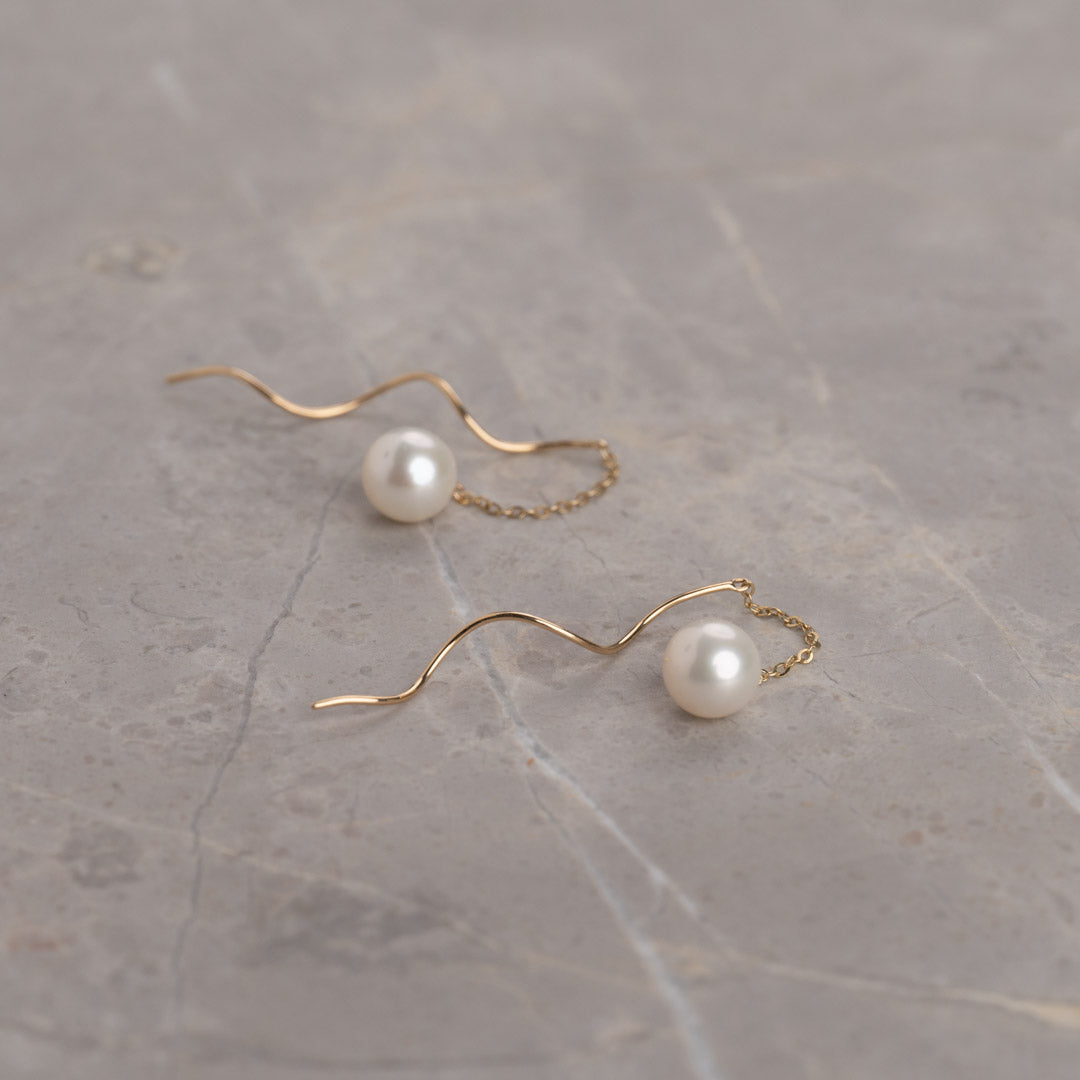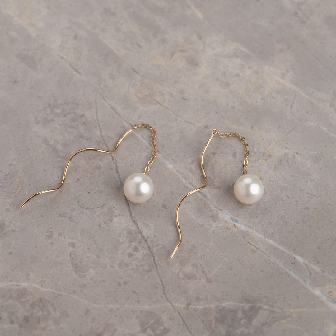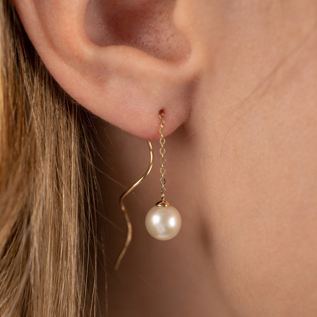 The earring has a beautiful freshwater pearl connected to a chain which has a solid and nice swirl at the back.