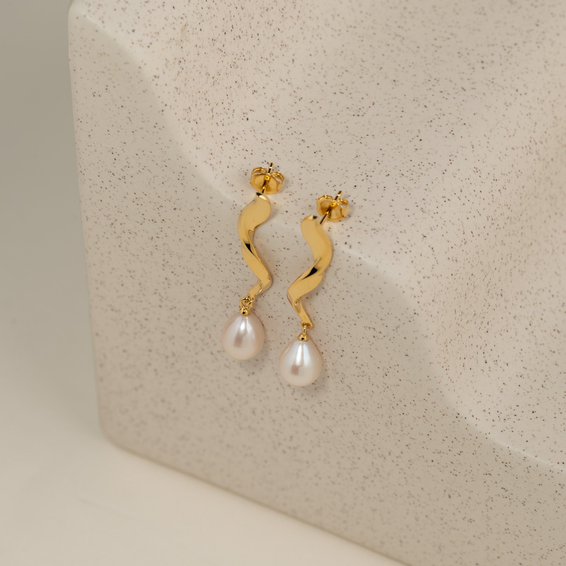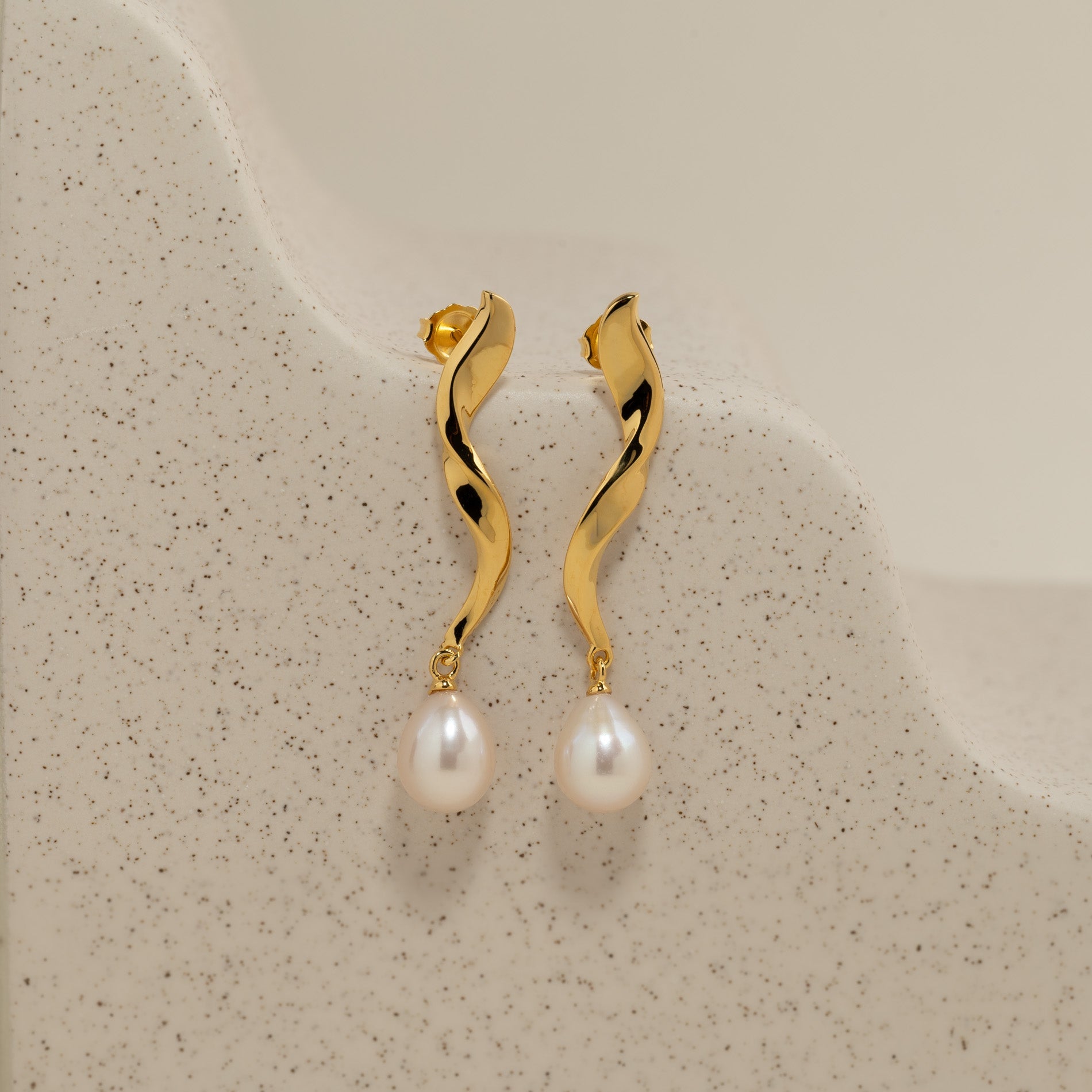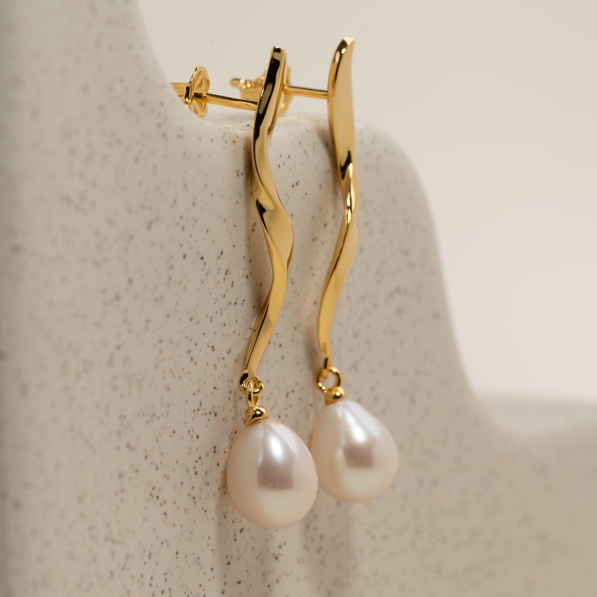 Twisted Hanging Earrings in Gold-Plated Silver with Freshwater Pearl