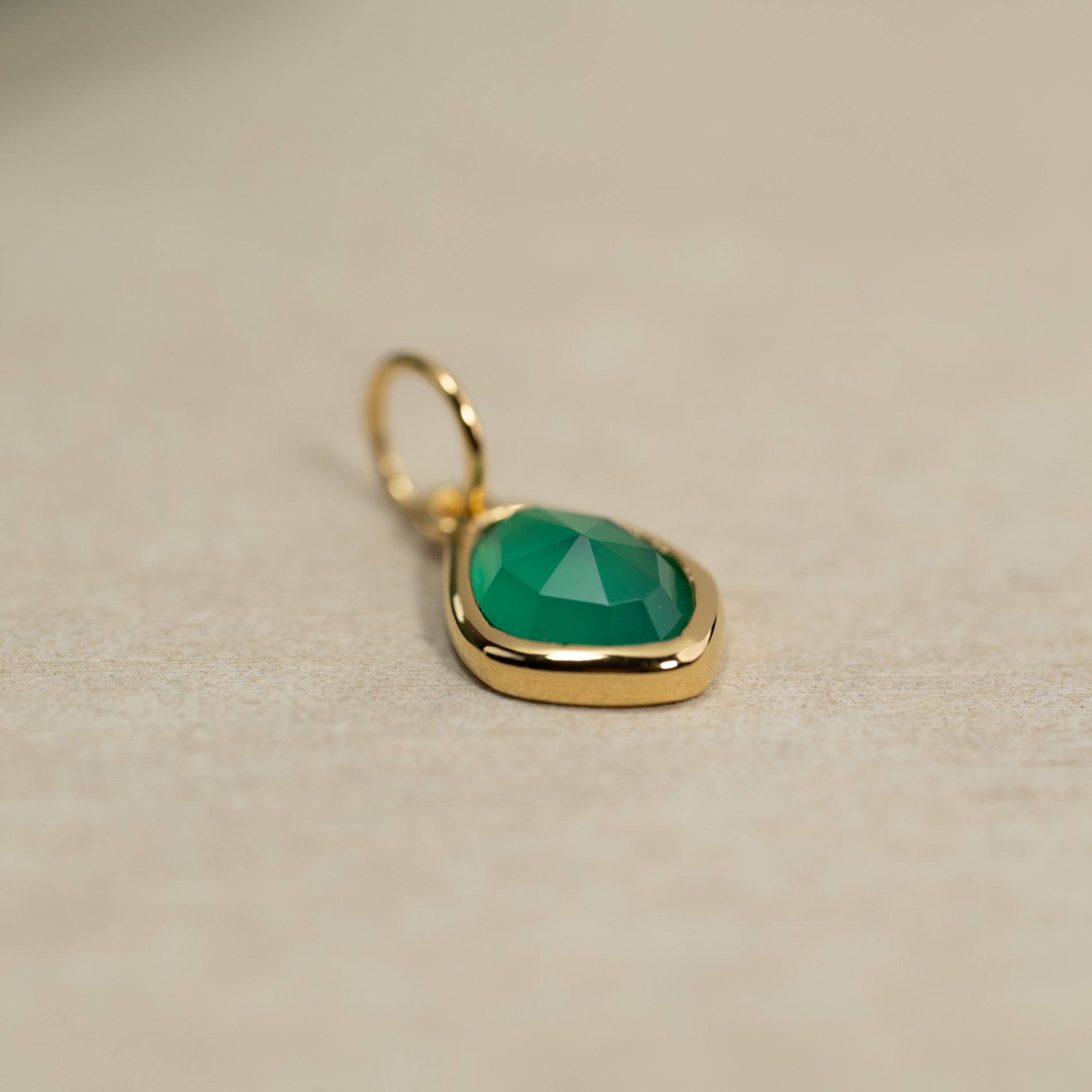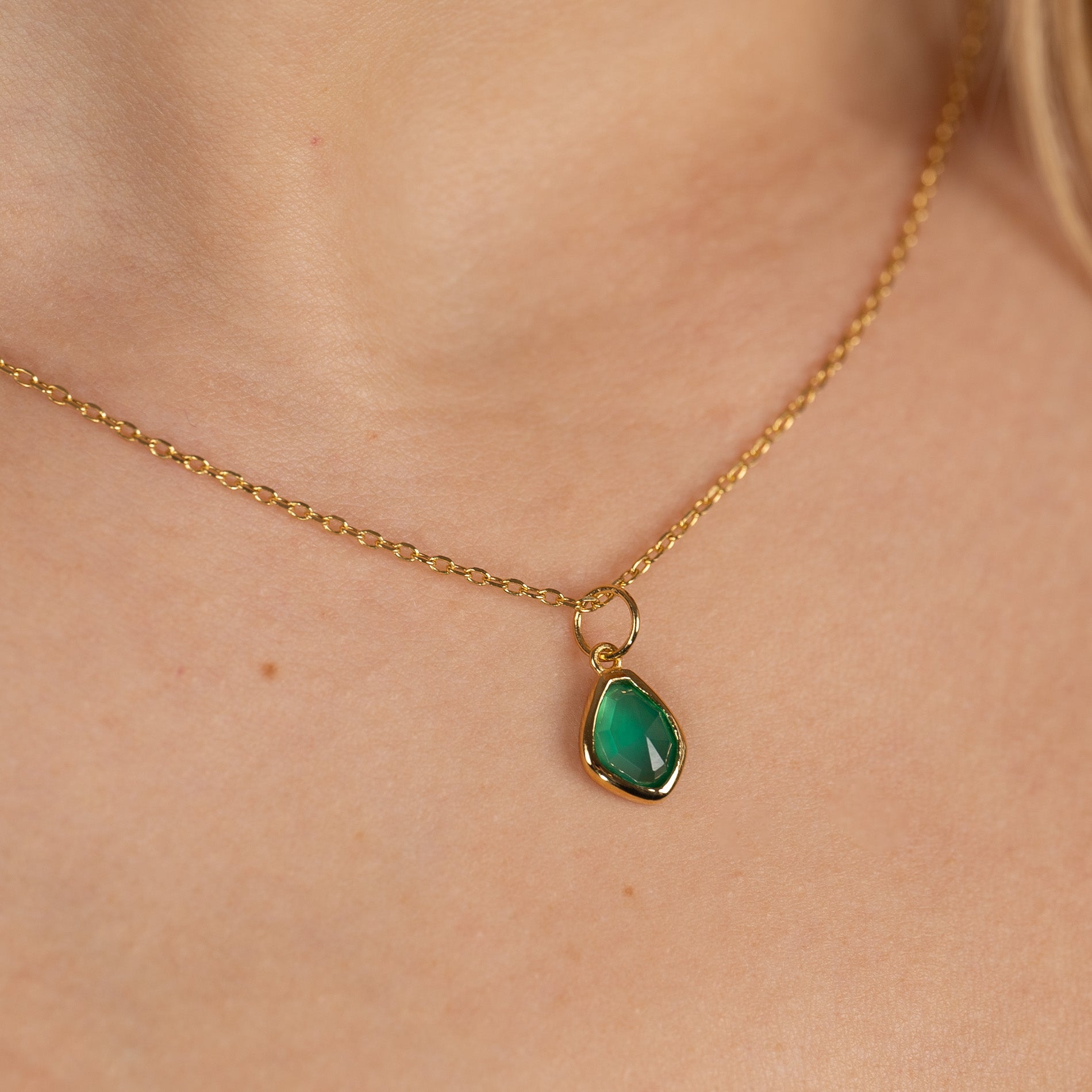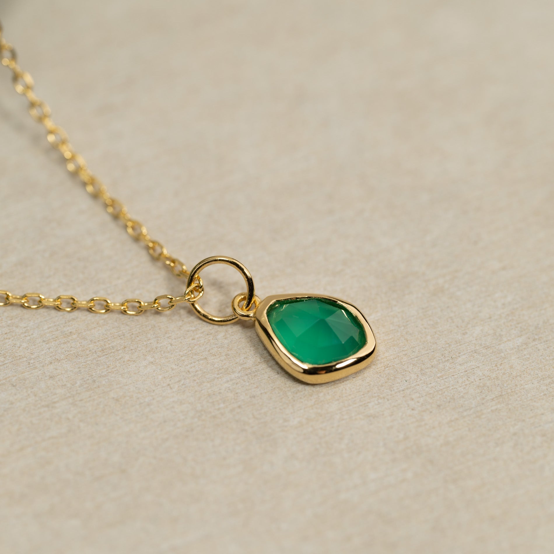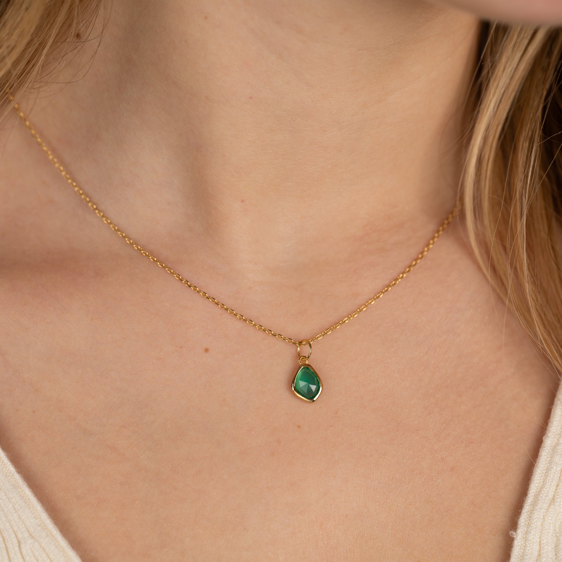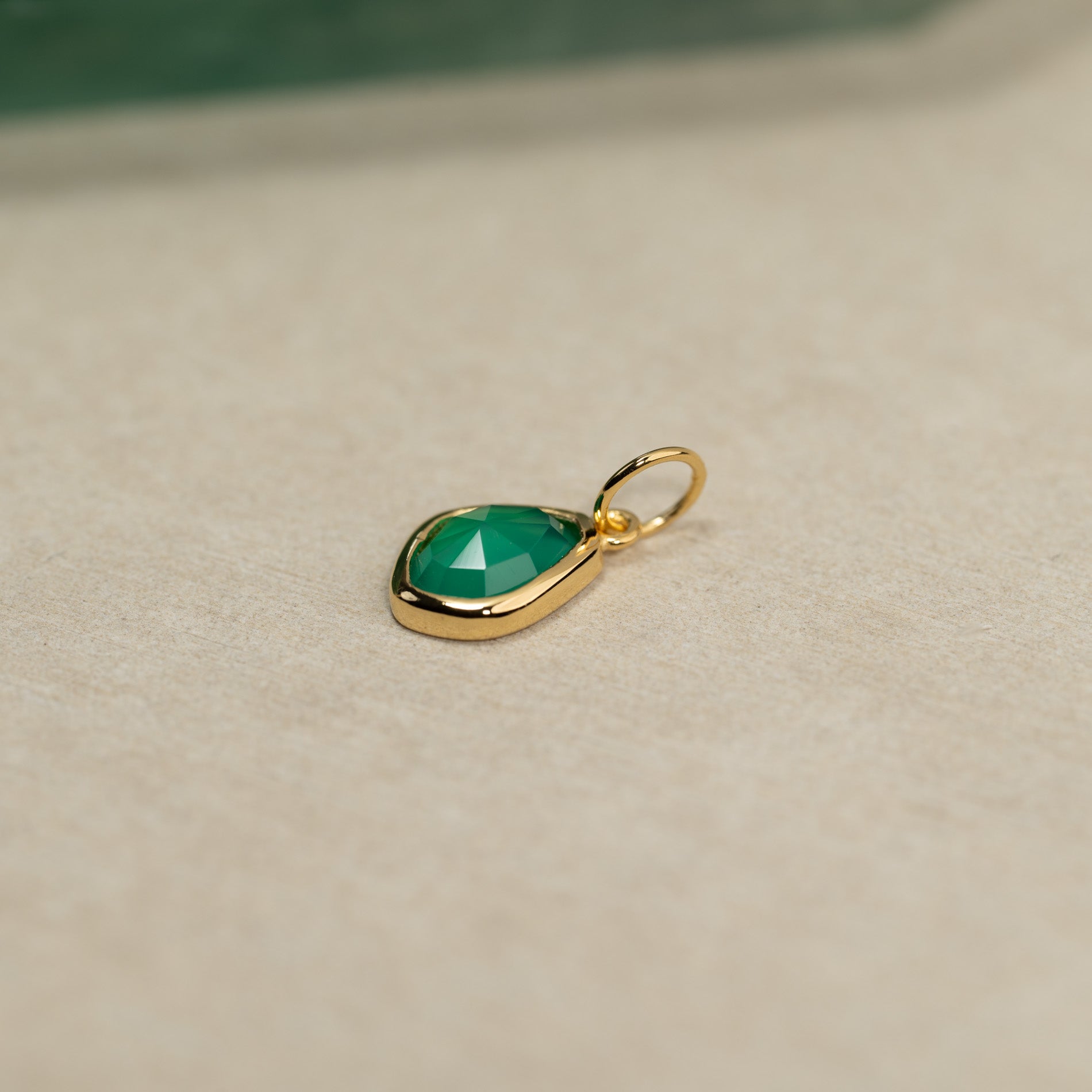 Necklace pendant made from 100% recycled 18kt. gold-plated sterling silver with a beautiful asymmetrical faceted green agate.