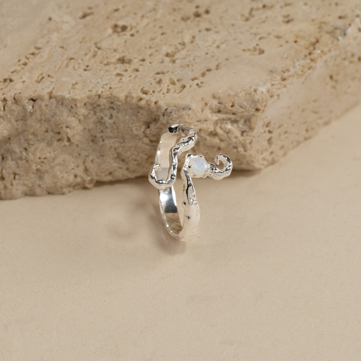 Organic Ring with a Moonstone in Sterling Silver