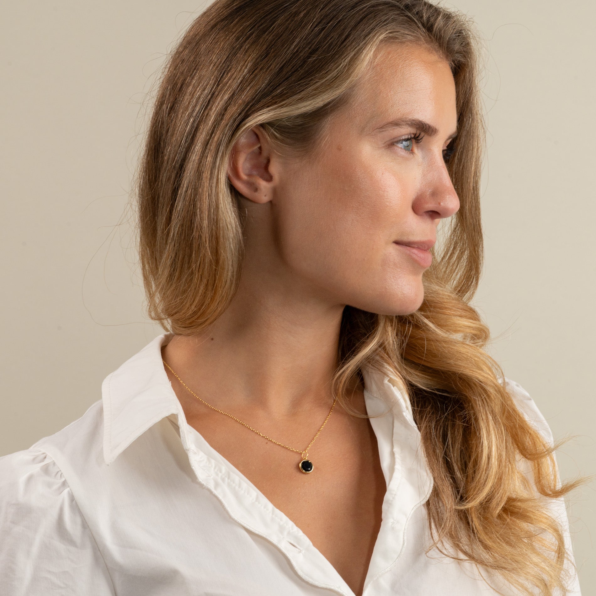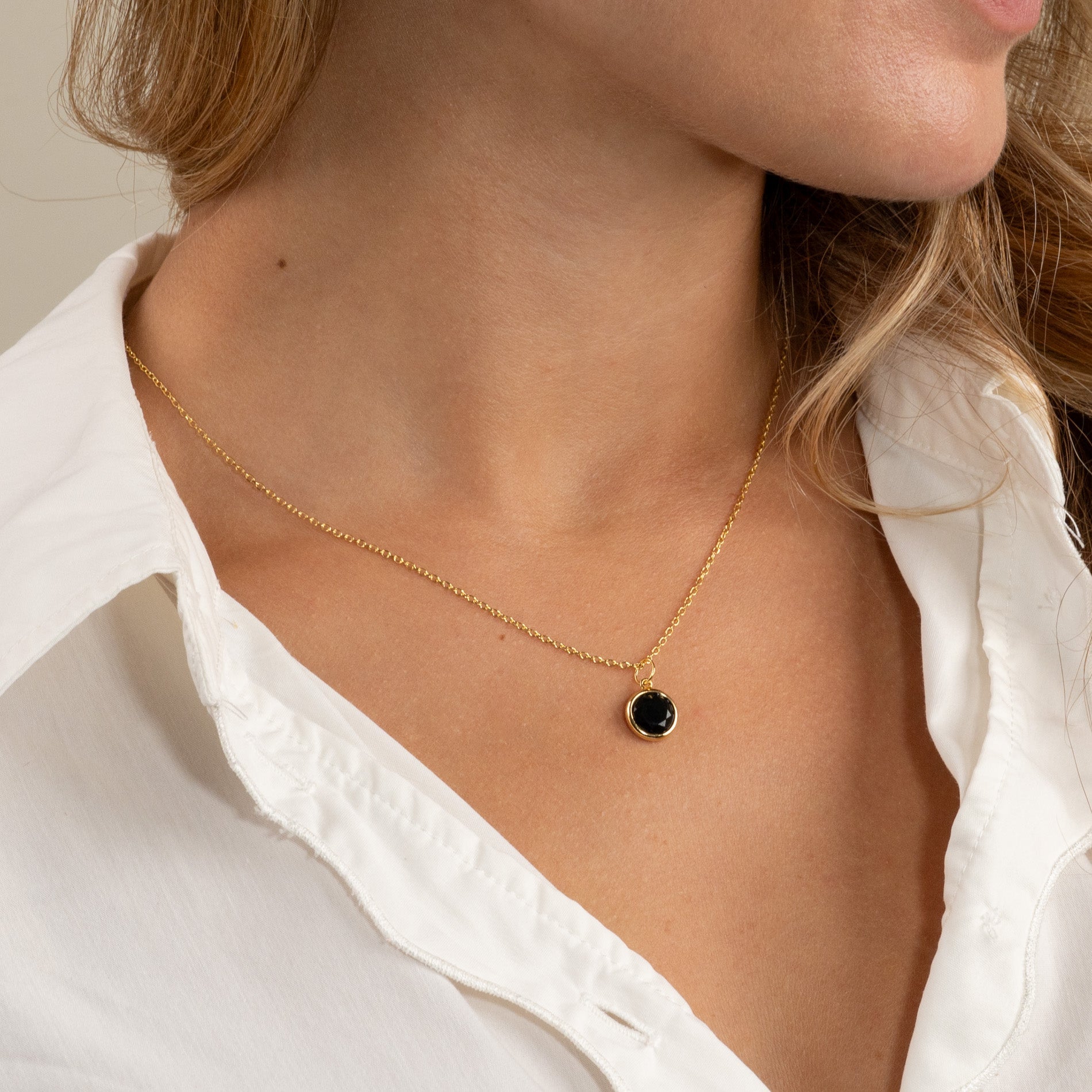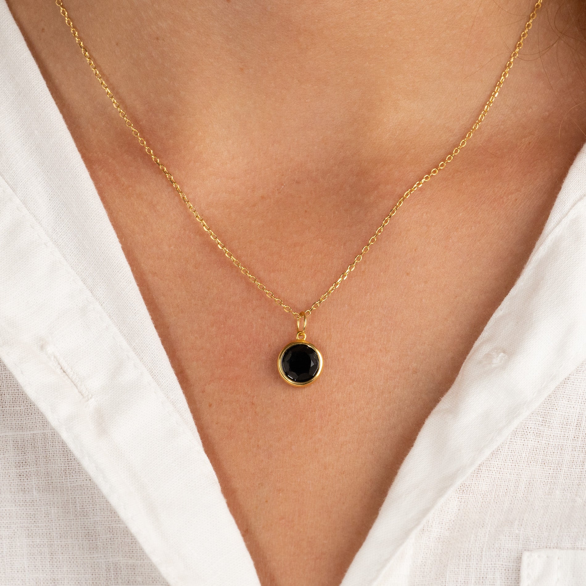 Unser AVA -Anhänger istHergestellt aus recyceltem goldplattiertem Sterlingsilber mit einer schönen runden, facettierten schwarzen Onyx. Das hübsche Design des Schmucks hat viele klassische Referenzen, ist aber auch elegant und einfach in seinem Ausdruck. Black Onyx ist ein eleganter, tief schwarzer, halbverträter Stein, der nicht durchsichtig ist. Schwarzer Onyx können in vielen Kontexten wunderschön getragen werden - unabhängig davon, ob der Schmuck für einen besonderen Anlass verwendet wird oder jeden Tag getragen wird.