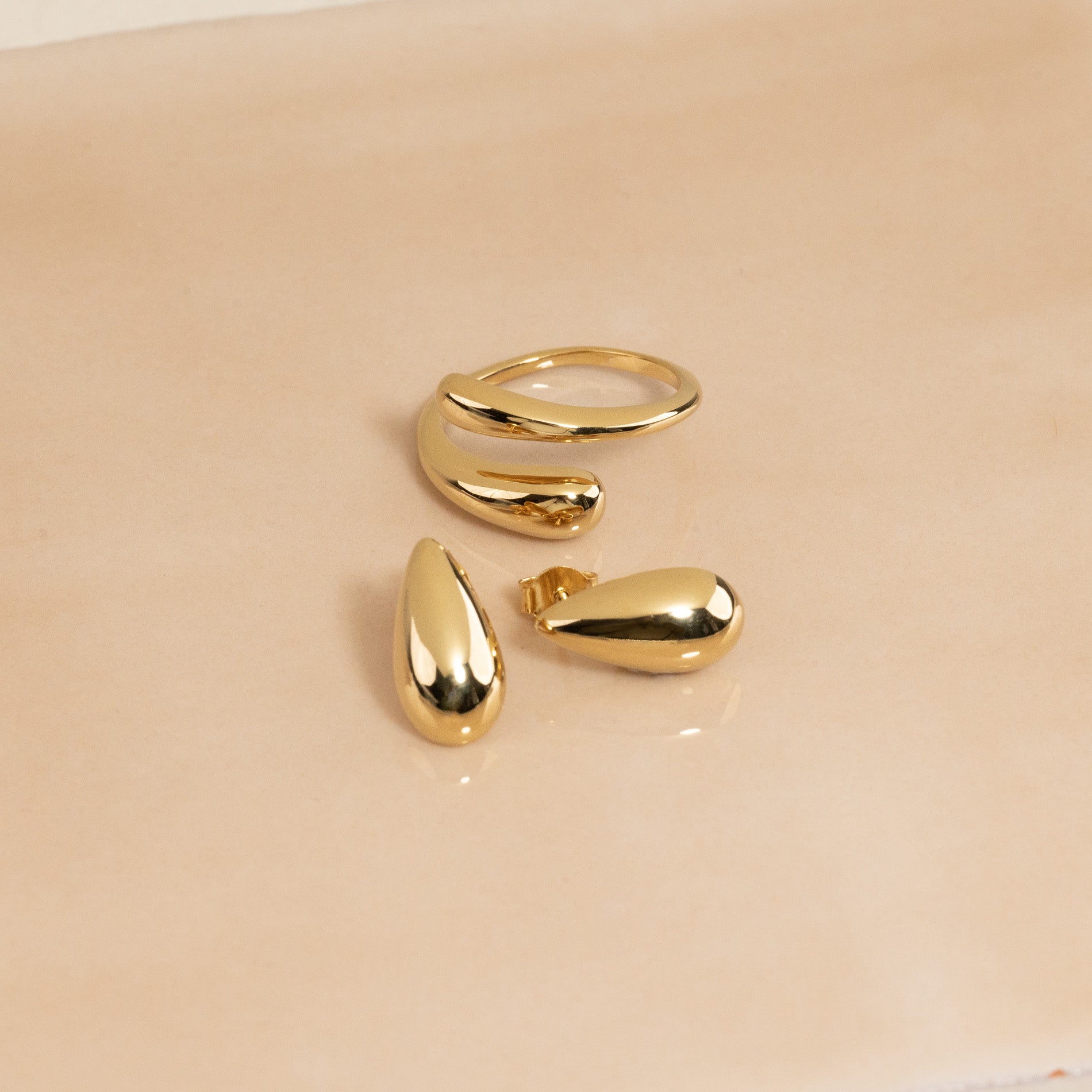 Open ring in gold-plated sterling silver in drop-shaped design