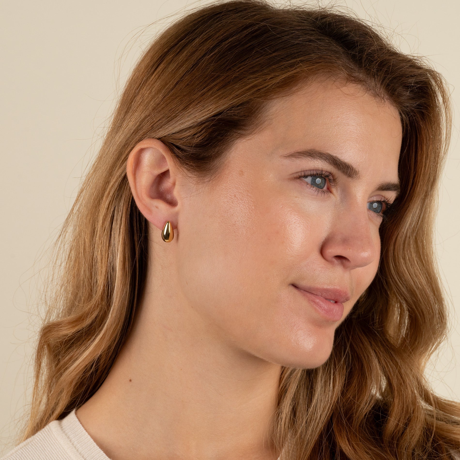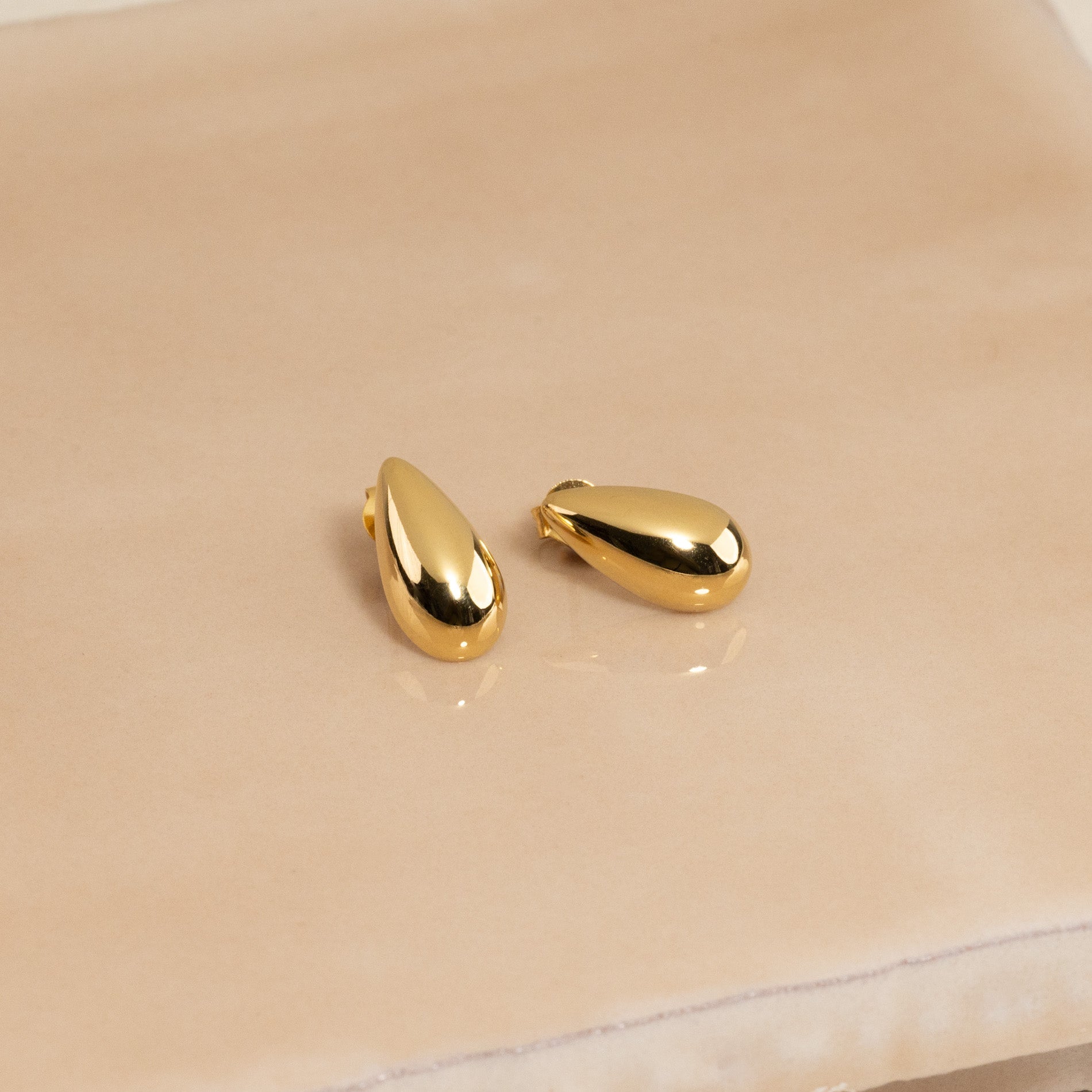 Our Bea studs are made from 100% recycled 18 karat gold-plated 925 sterling silver. The design is inspired by water droplets, giving them a simple and organic look.