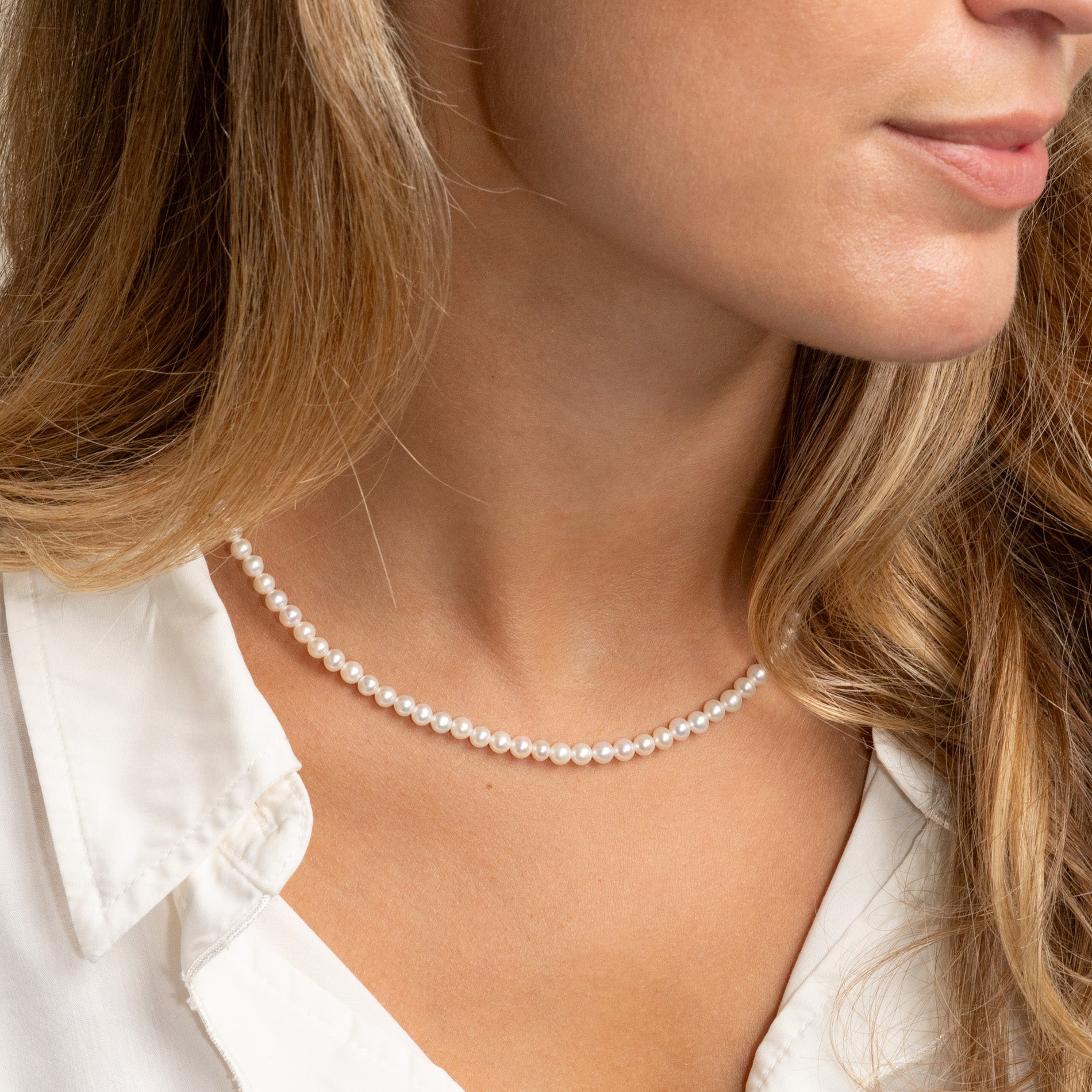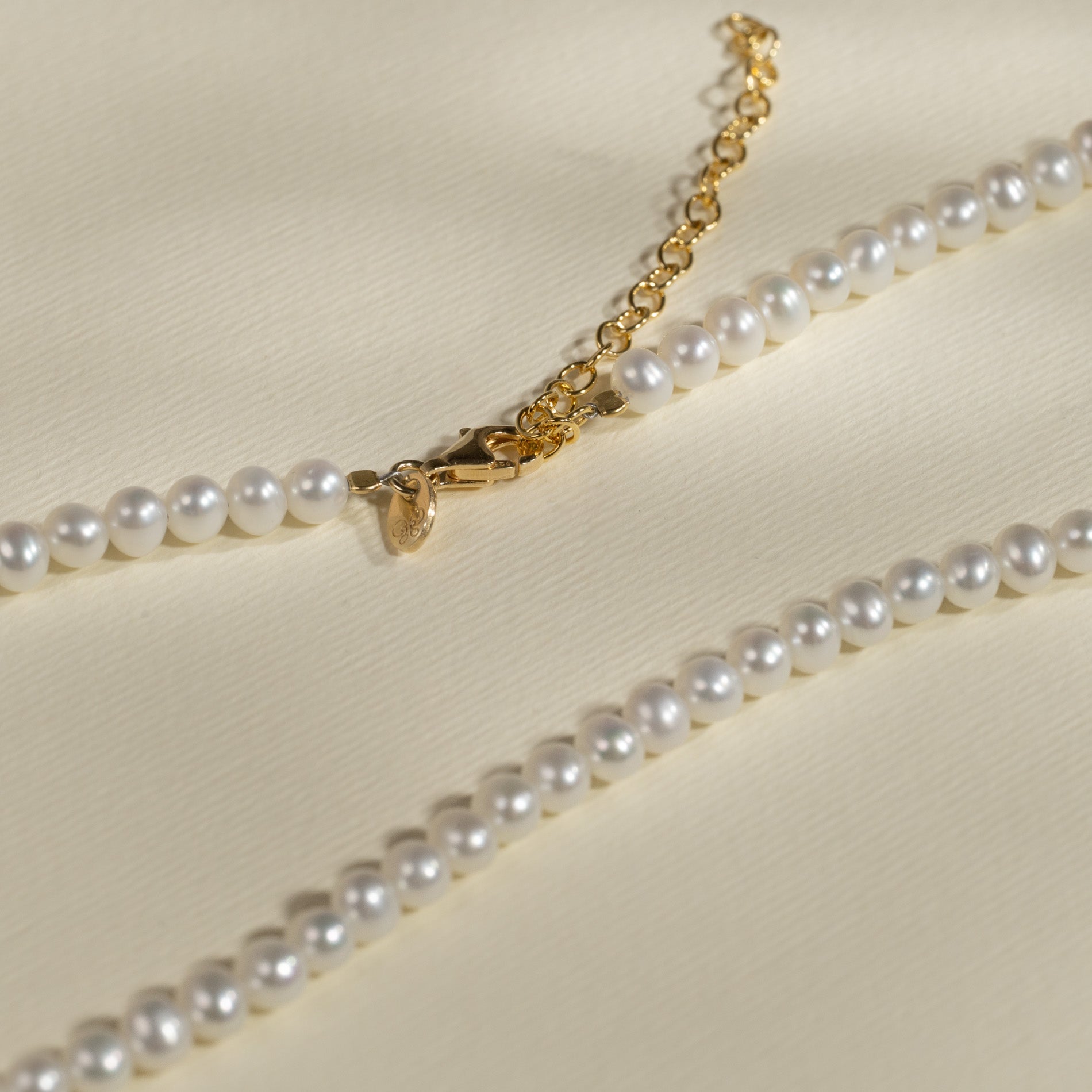 Pearl necklace with small white freshwater pearls in gold-plated sterling silver
