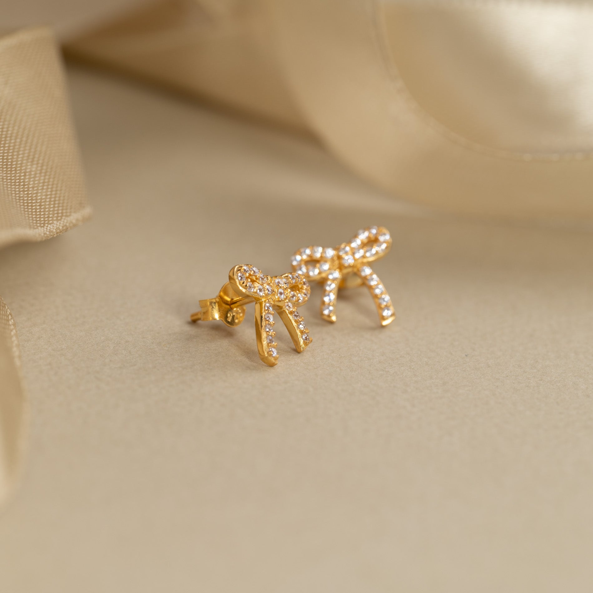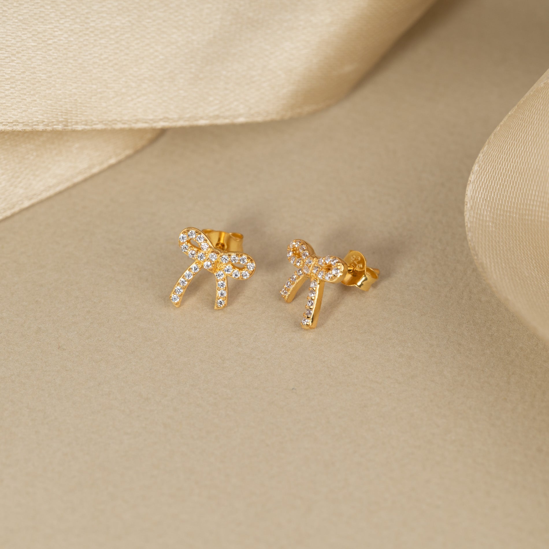 Bow-shaped stud earrings in 18K gold-plated 925 sterling silver