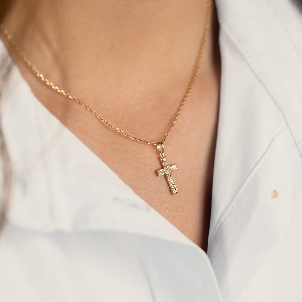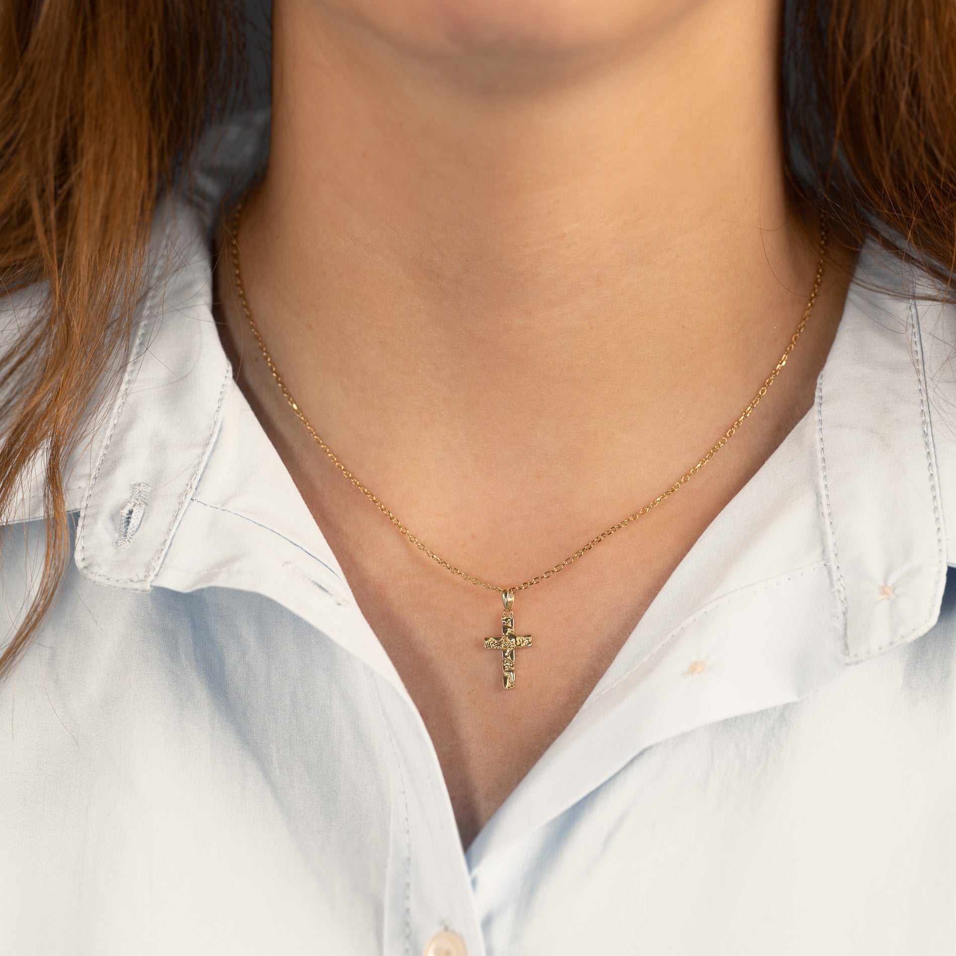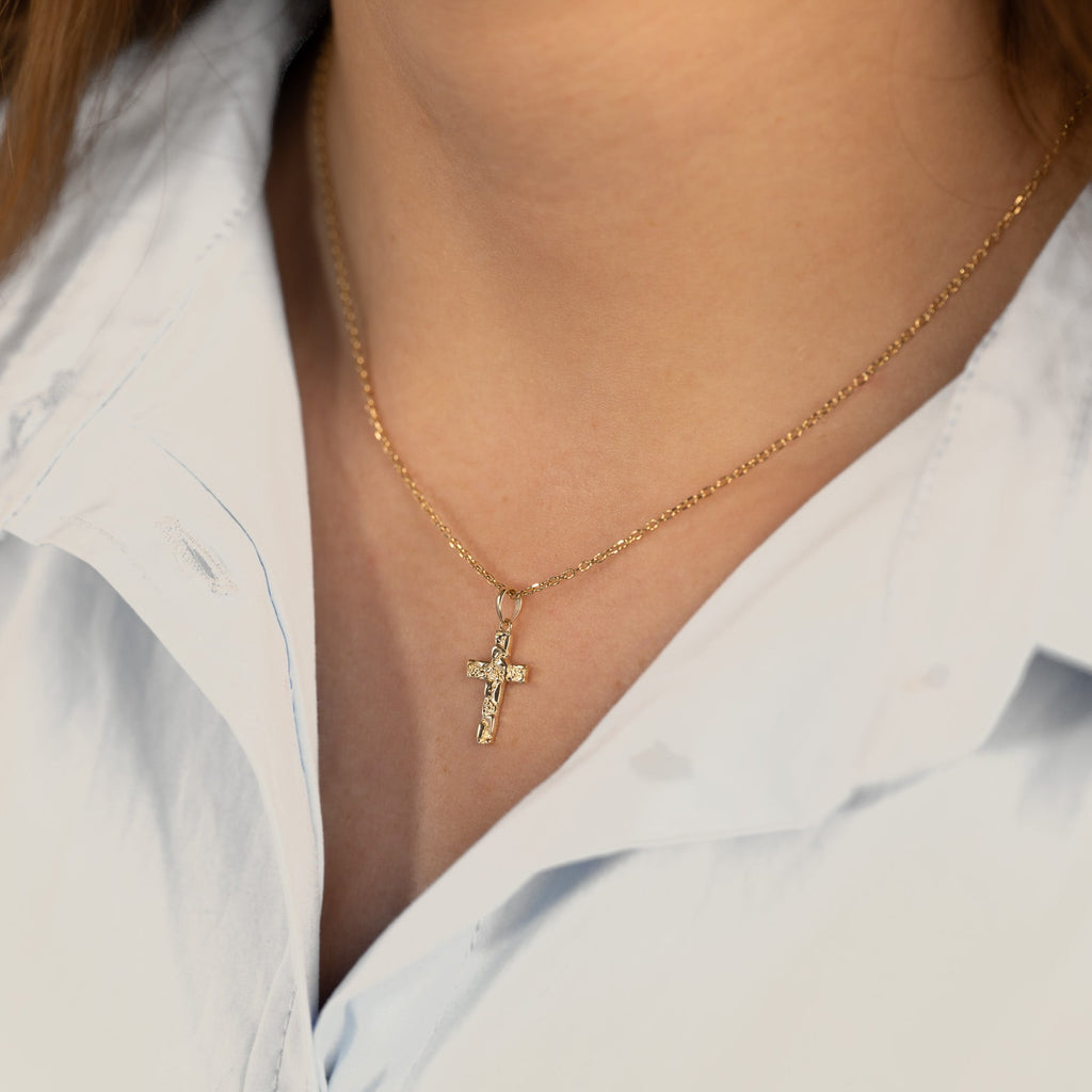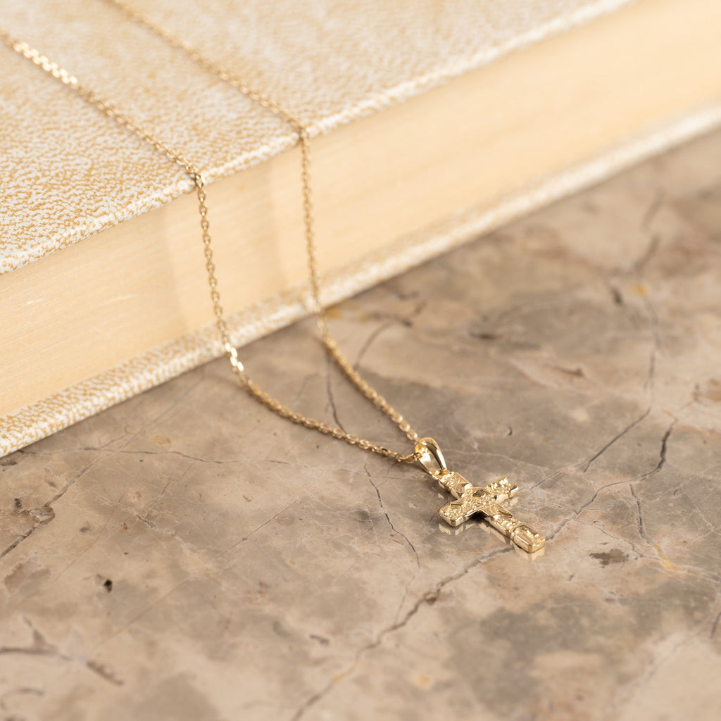 This pendant is made of 100% recycled solid 9-karat gold. The pendant is a modern twist on a classic piece of jewelry; the cross has a 'melted' surface, which gives the pendant fine details and a more rustic look. Perfect if you want a Christian symbol that still has a modern expression. A great confirmation gift for both boys and girls.