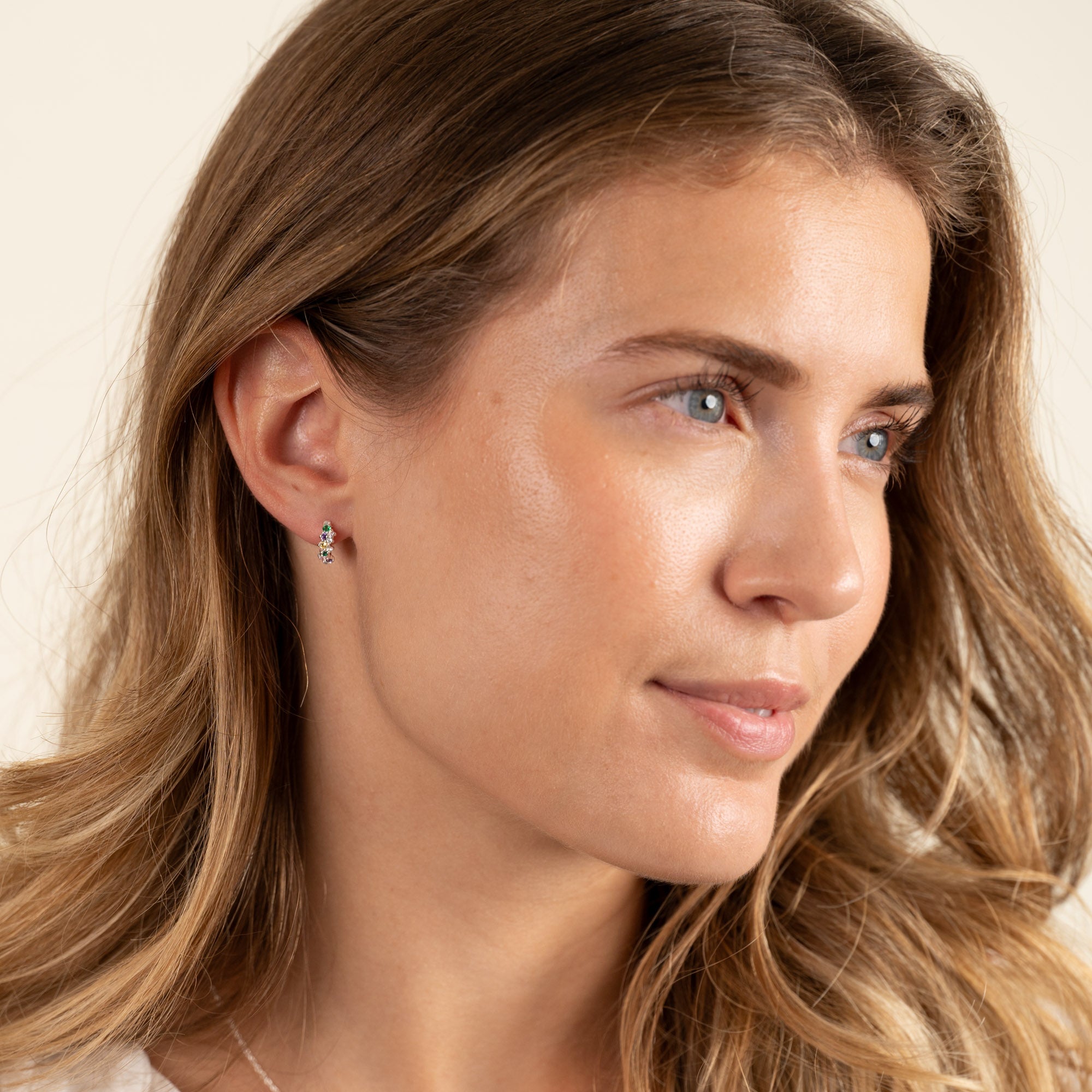 Earrings in recycled 18 karat gold-plated sterling silver with colorful cubic zirconias. The earring measures approximately 10.5 mm.
