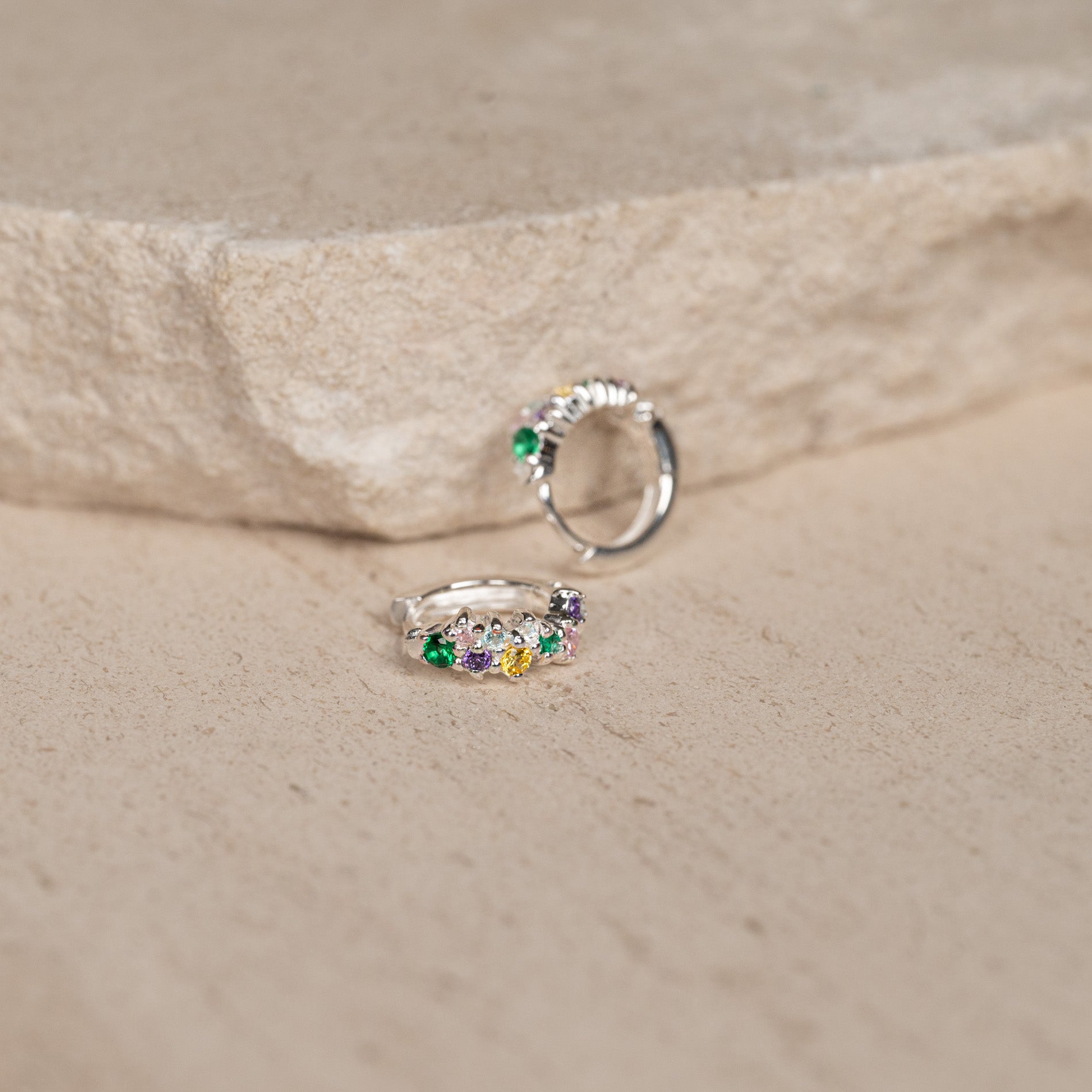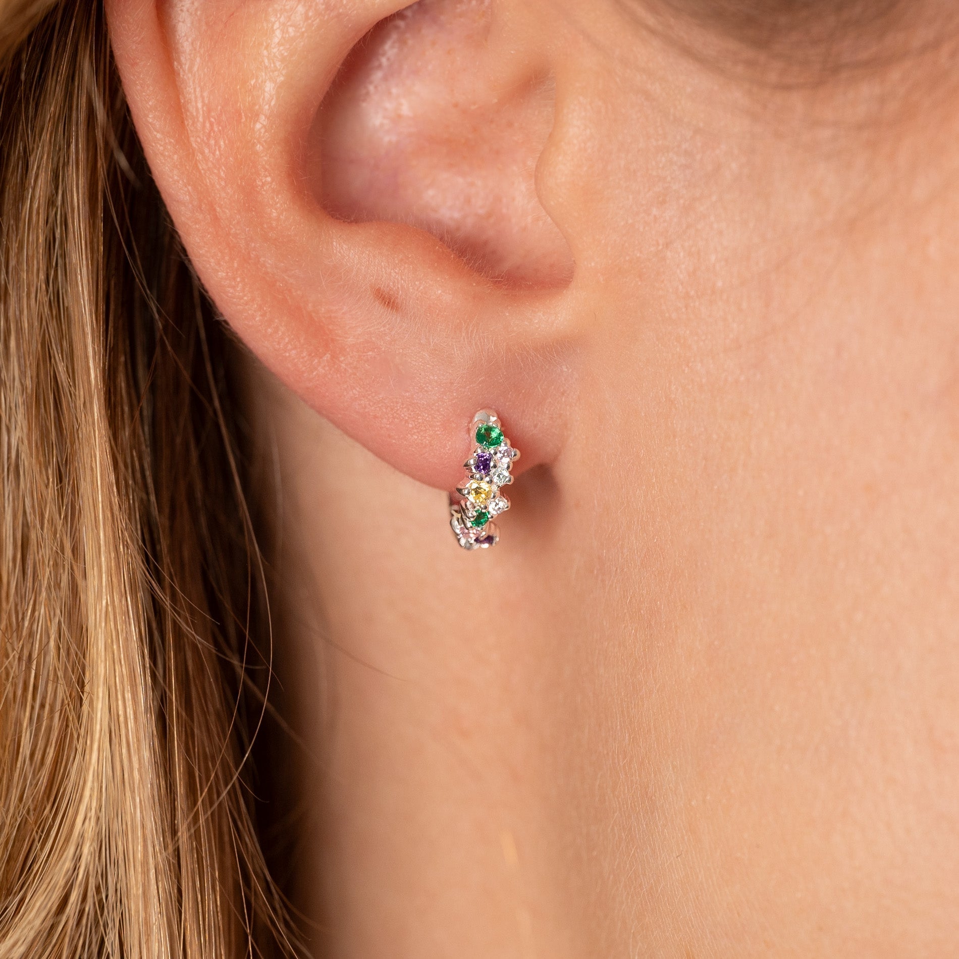 Our Clair huggies are designed with colorful zirconias that create a beautiful play of colors in the earring. These huggie earrings wrap around the ear and are easy to wear for everyday as well as finer occasions.