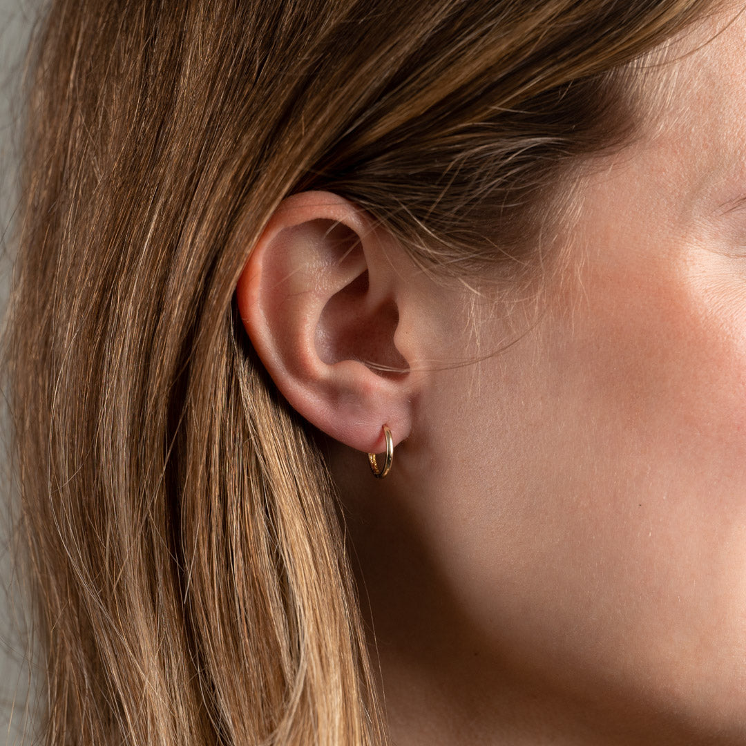 The hoops are a simple and classic earring that you can have in your jewelry collection for many years. They are designed with classic simplicity and elegance, making them easy to style for any occasion - whether you're looking for new everyday earrings or a classic piece for a party. The hoops are also available in 10mm and 14mm.