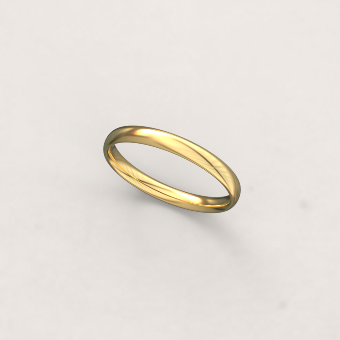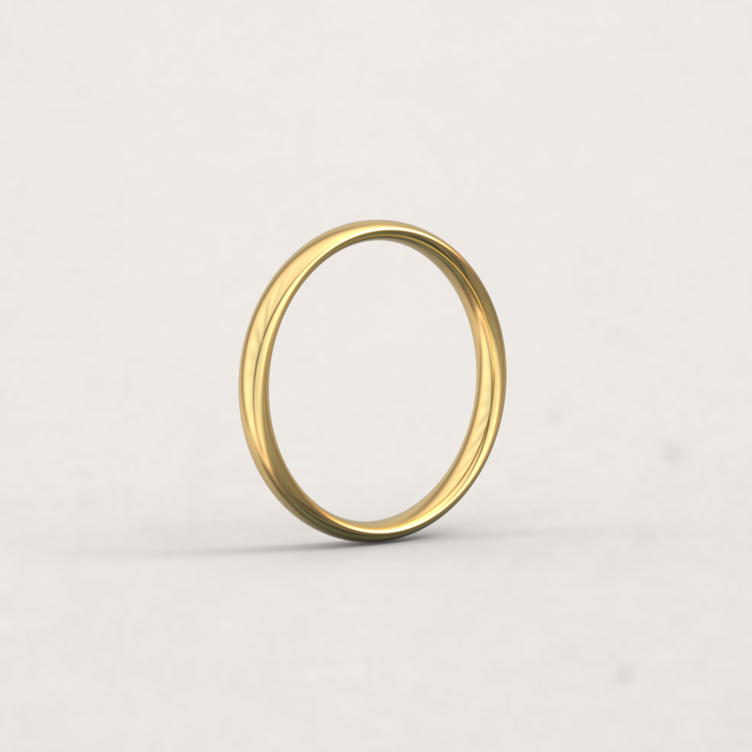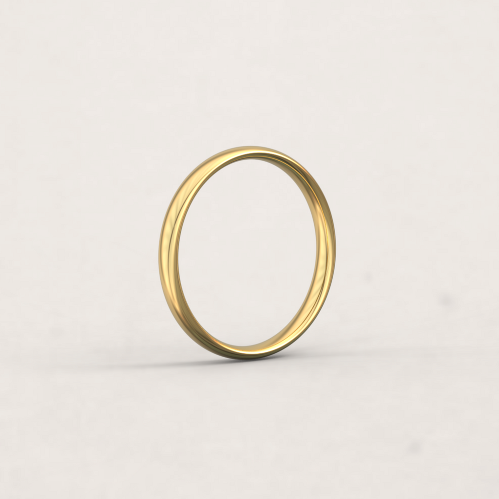The D-shape has a flat interior and a softly curved exterior, creating the signature ‘D’ silhouette. It’s a traditional wedding band profile with a timeless feel.