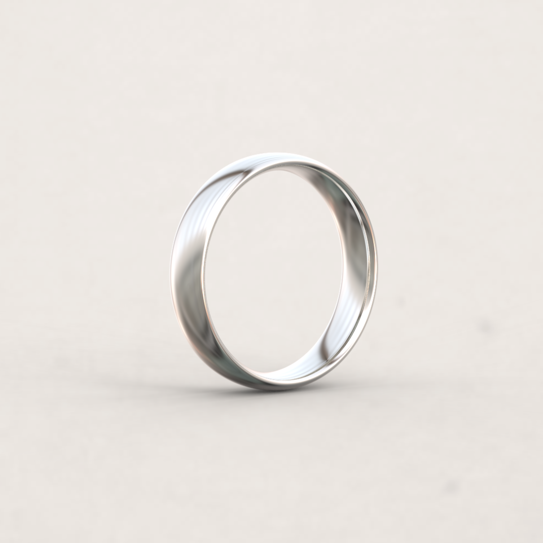 The D-shape has a flat interior and a softly curved exterior, creating the signature ‘D’ silhouette. It’s a traditional wedding band profile with a timeless feel.