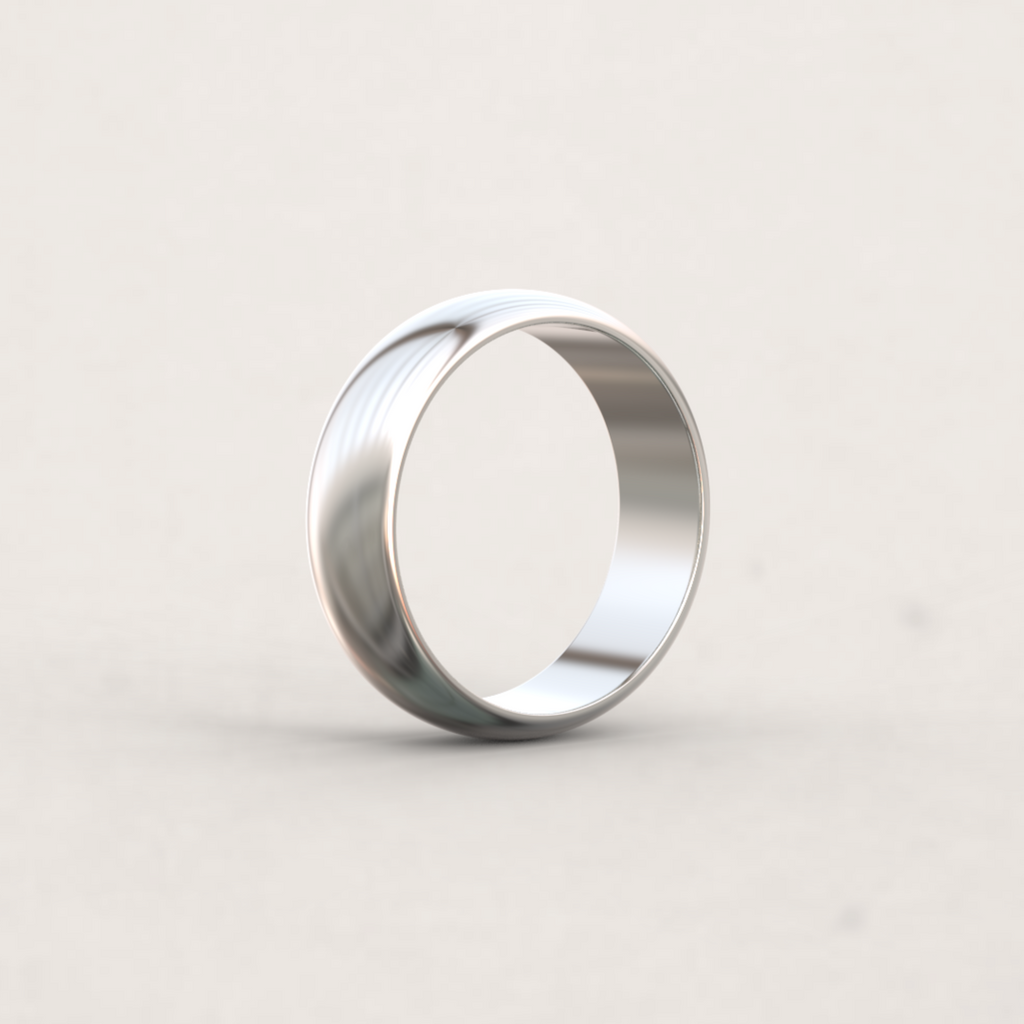 For the 6 mm profile, we recommend a thickness of 1.5 or 1.75 mm to ensure a solid and balanced feel. The 6 mm width is most commonly chosen for men who prefer a strong and wide wedding band.