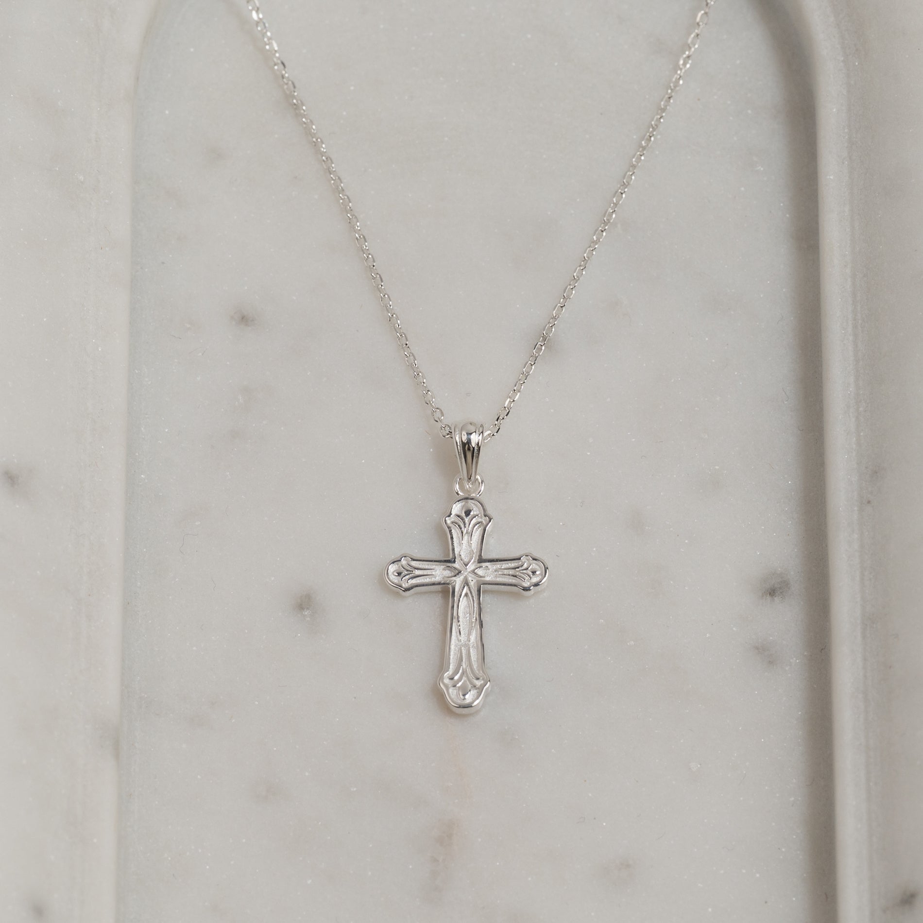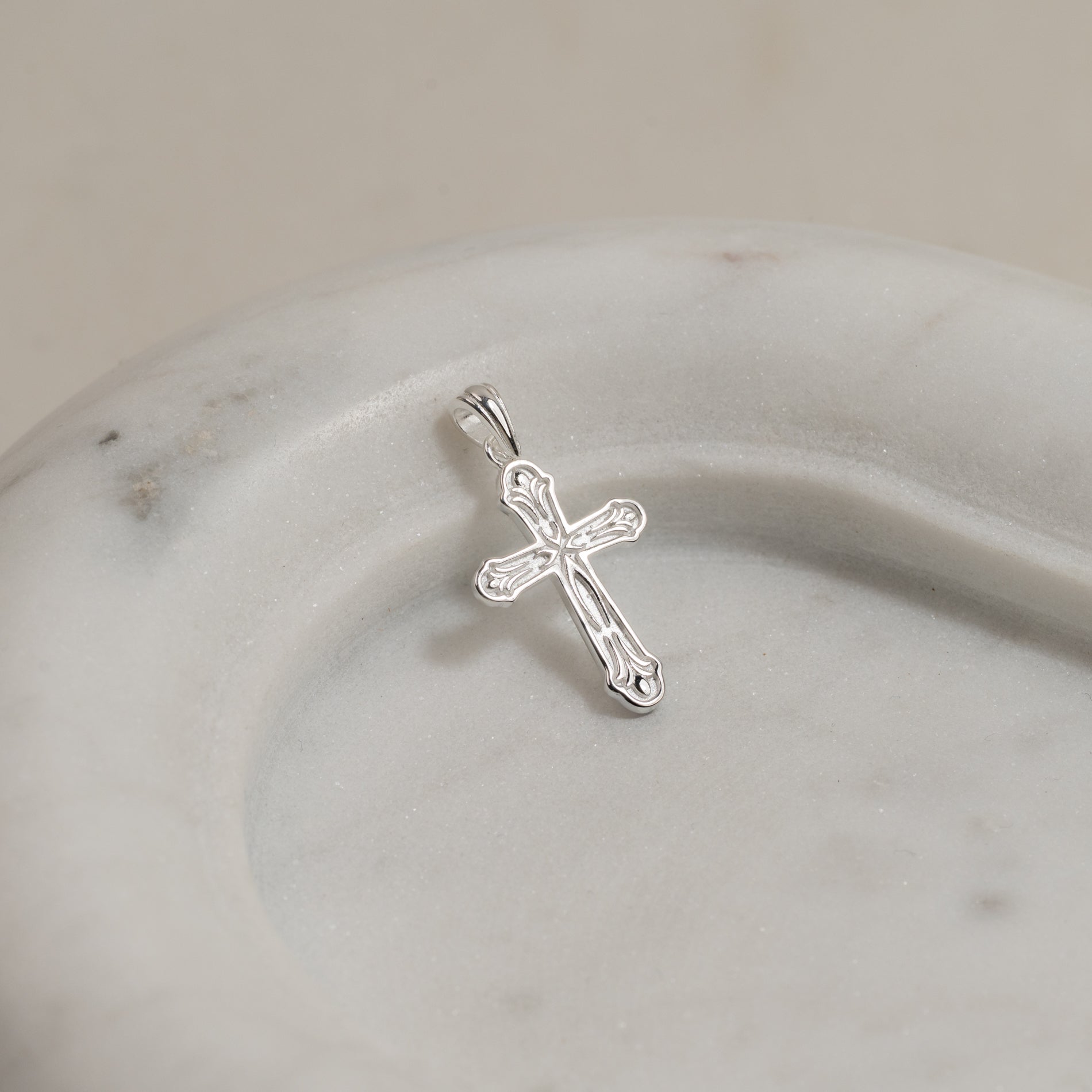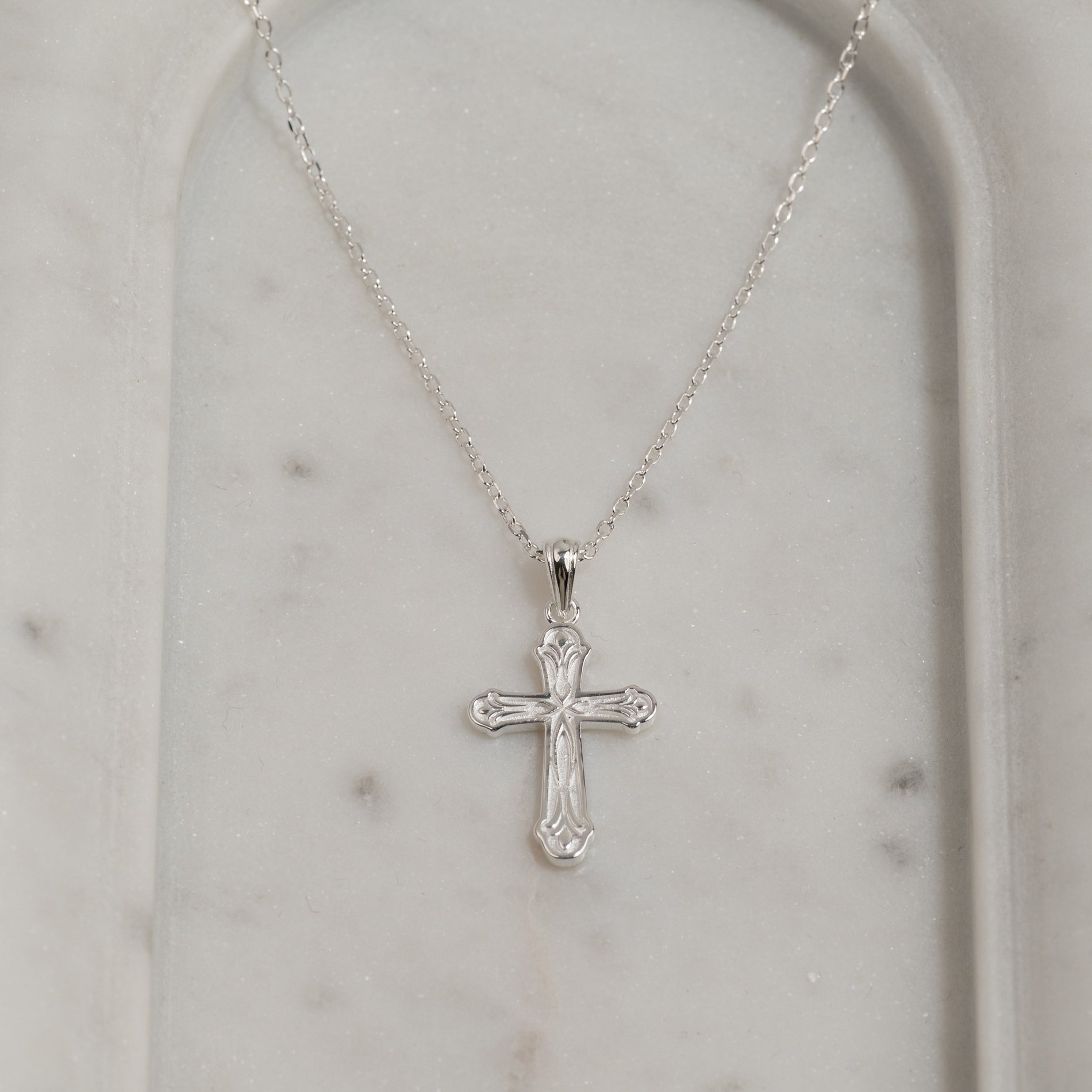 Cross pendant in 100% recycled 925 sterling silver.