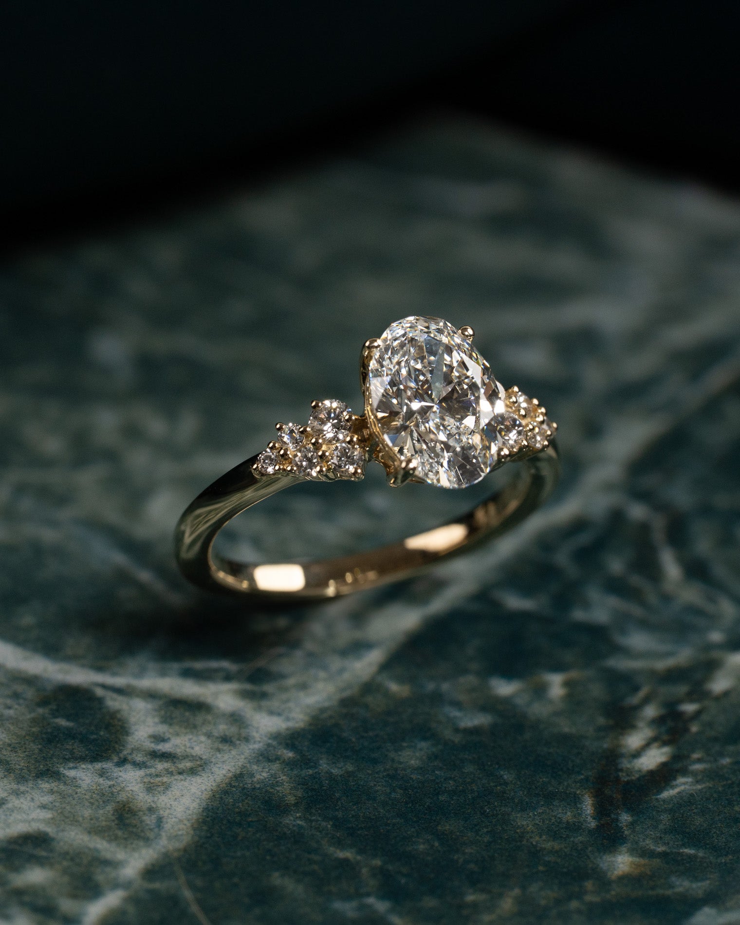DELICATE CLUSTER OVAL-CUT DIAMOND RING