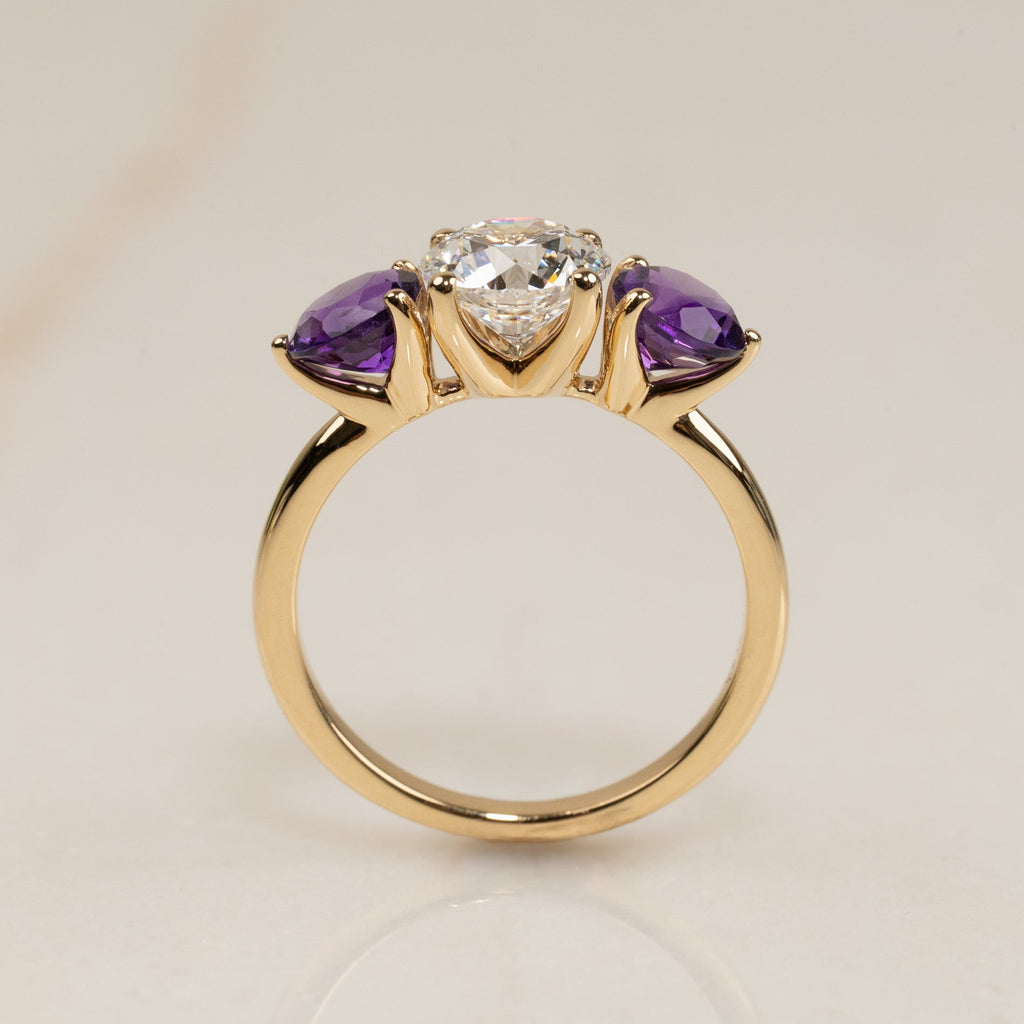 PURPLE AMETHYST TRILOGY DIAMOND RING - 2.7ct