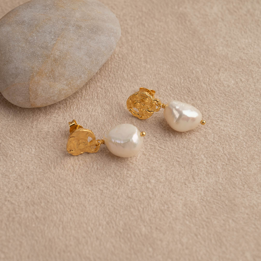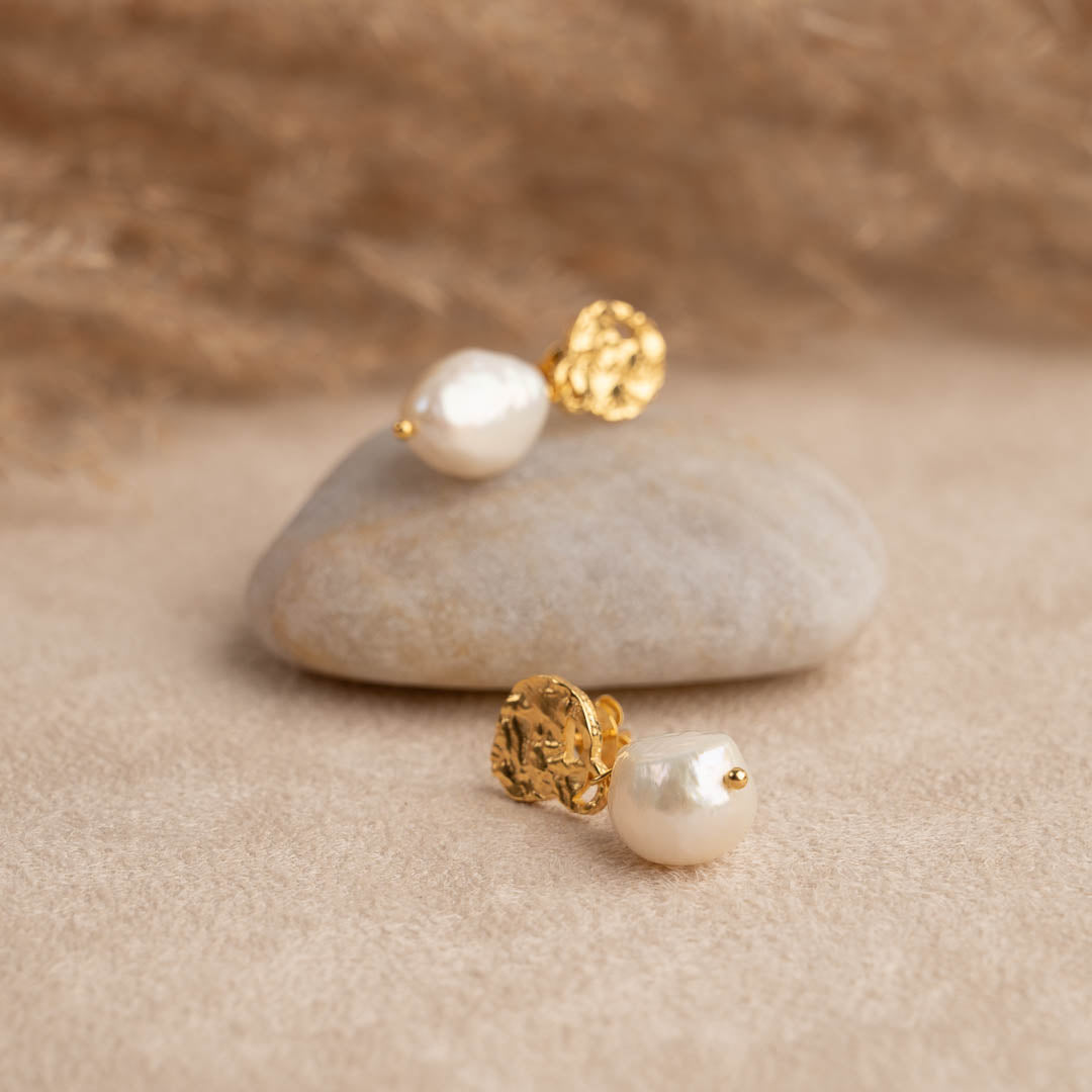 Baroque pearl earrings with raw texture