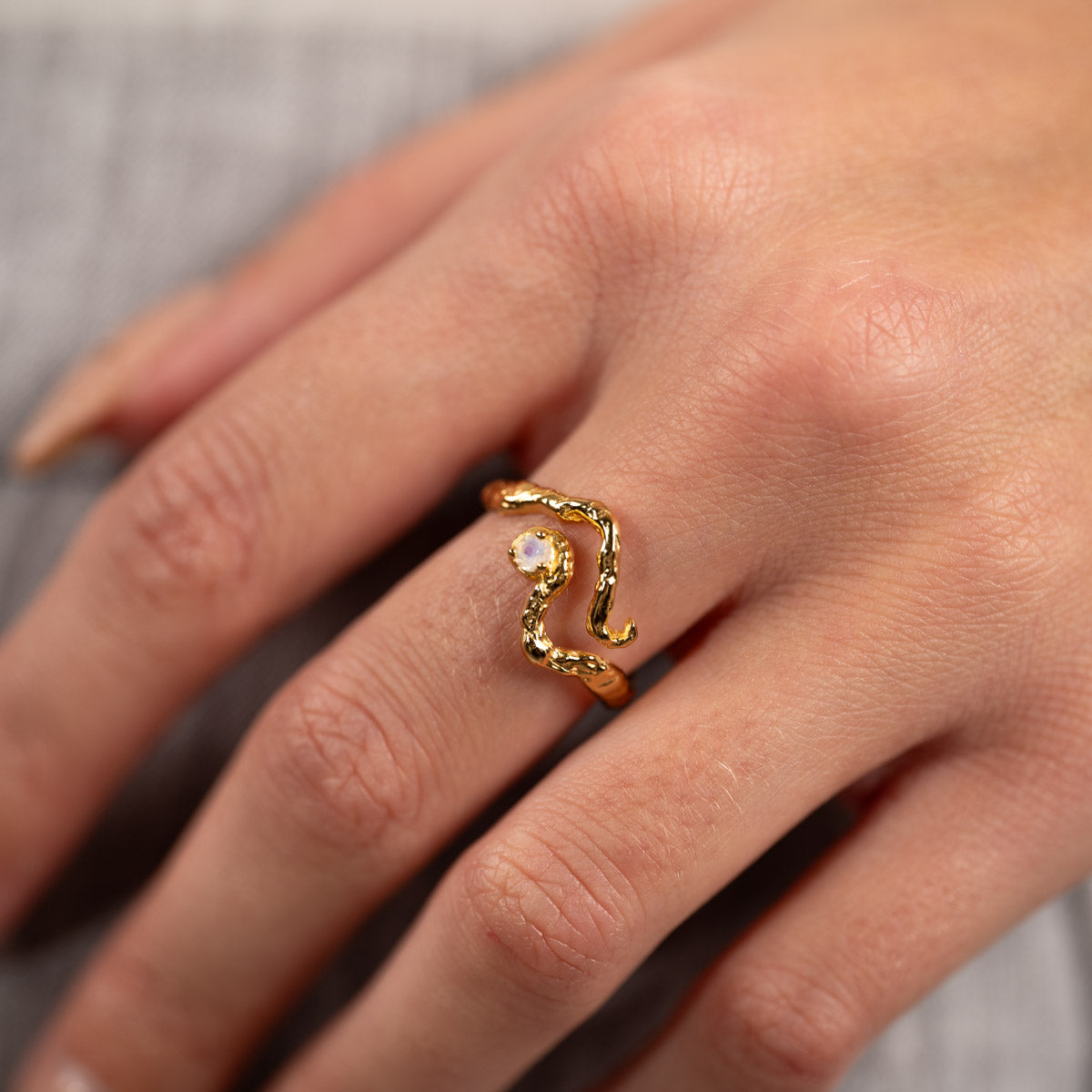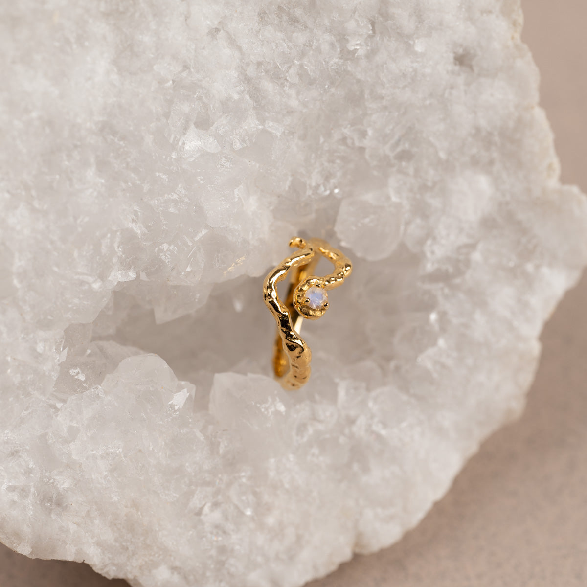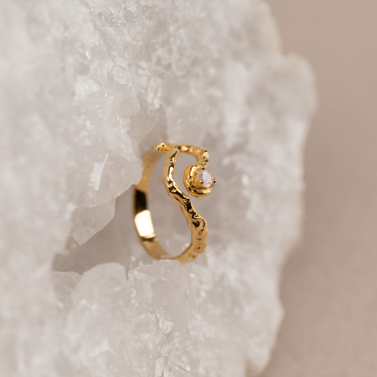 Organic Ring in Gold-Plated Silver with Moonstone