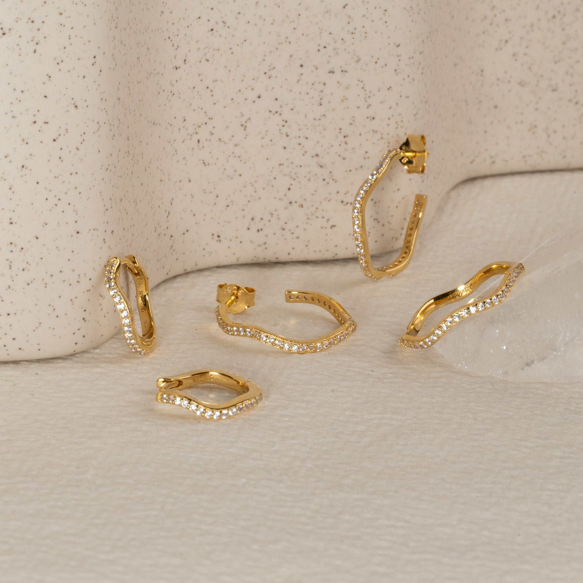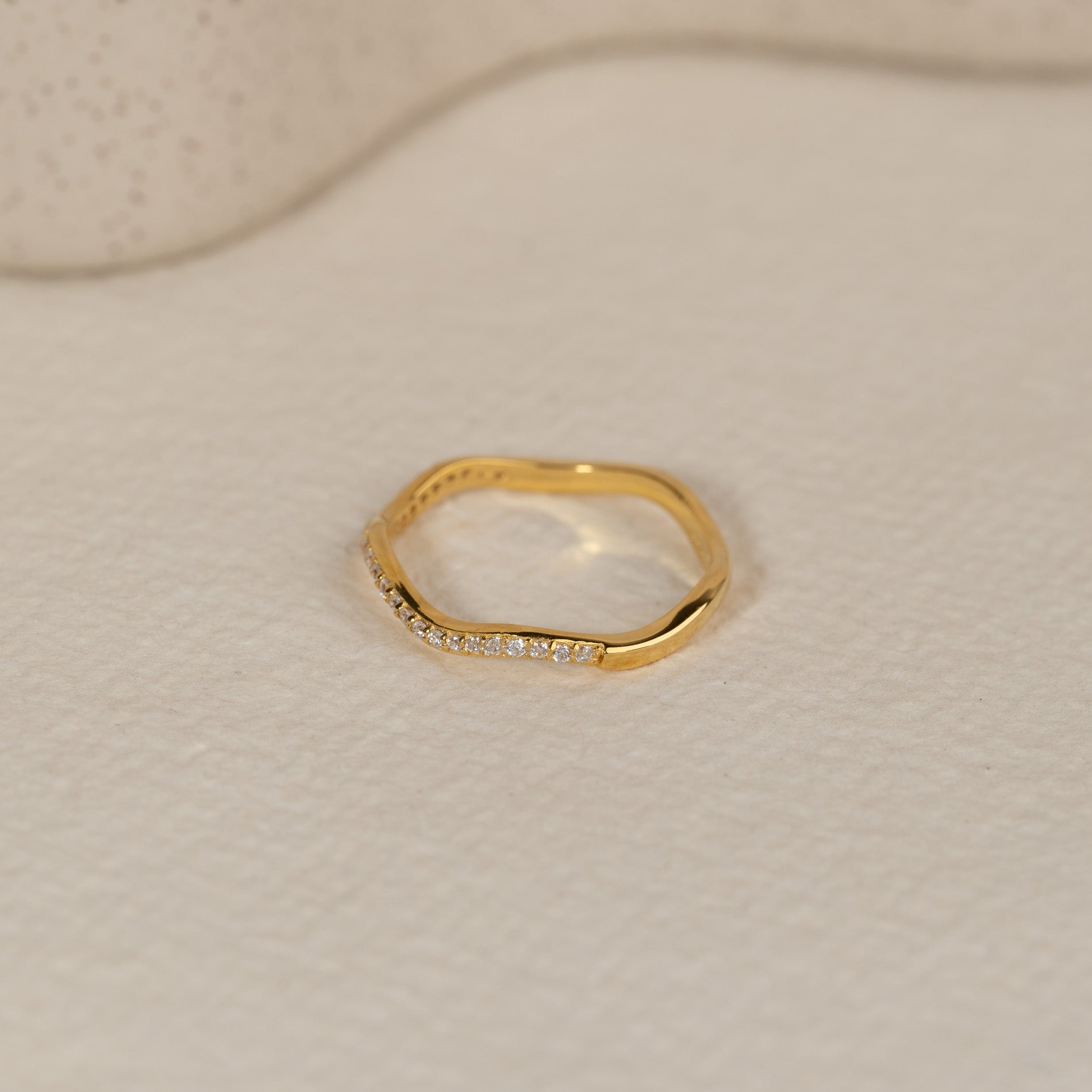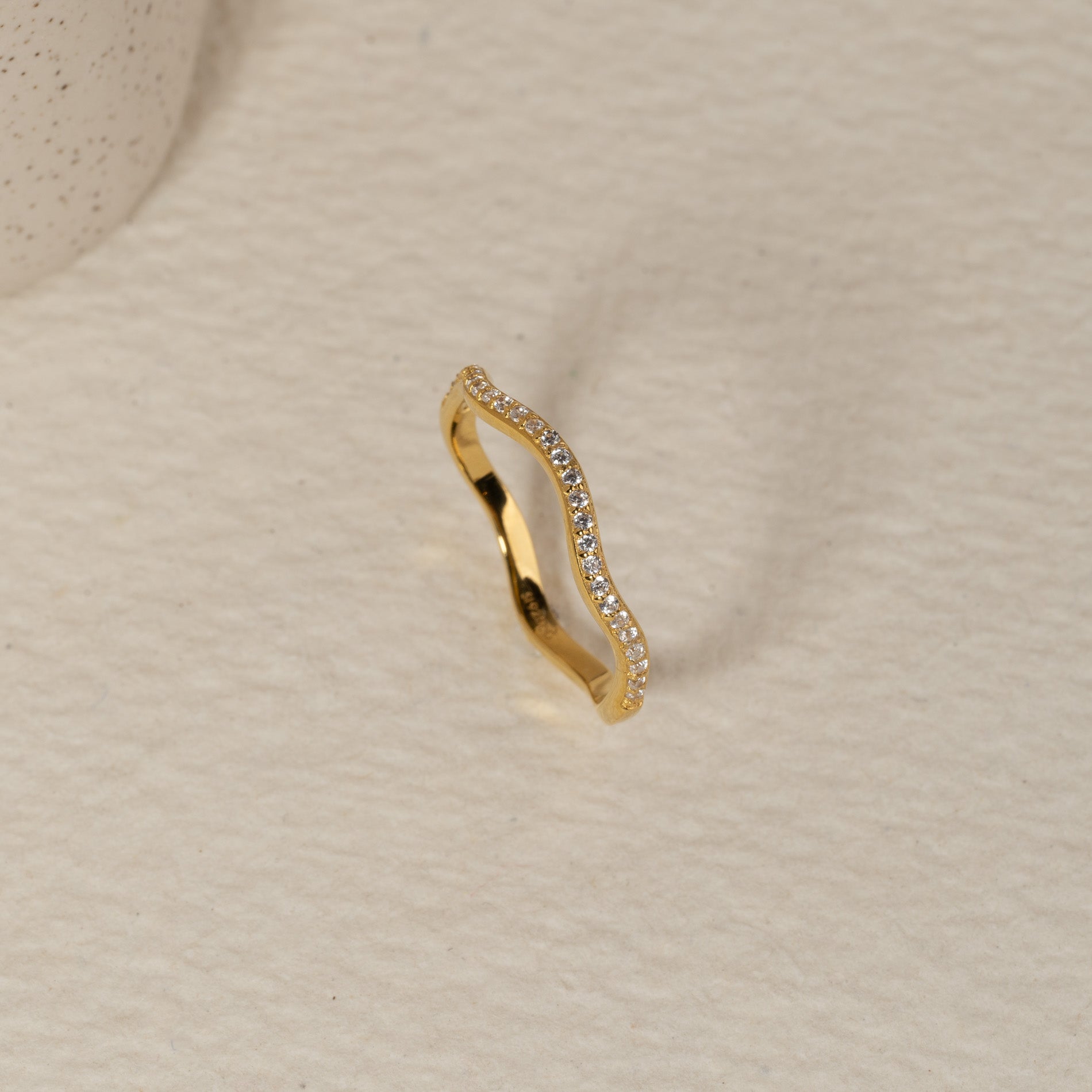 Wavy ring in gold-plated silver with zirconia