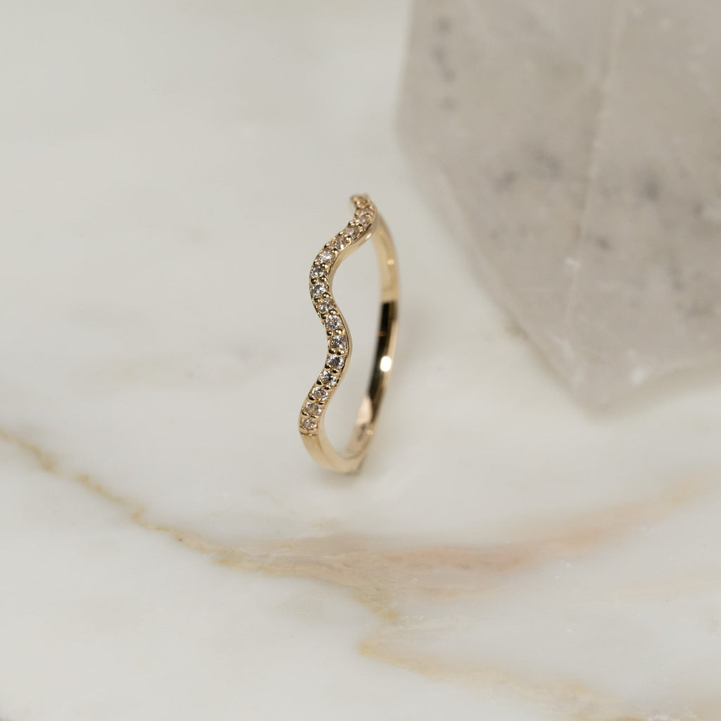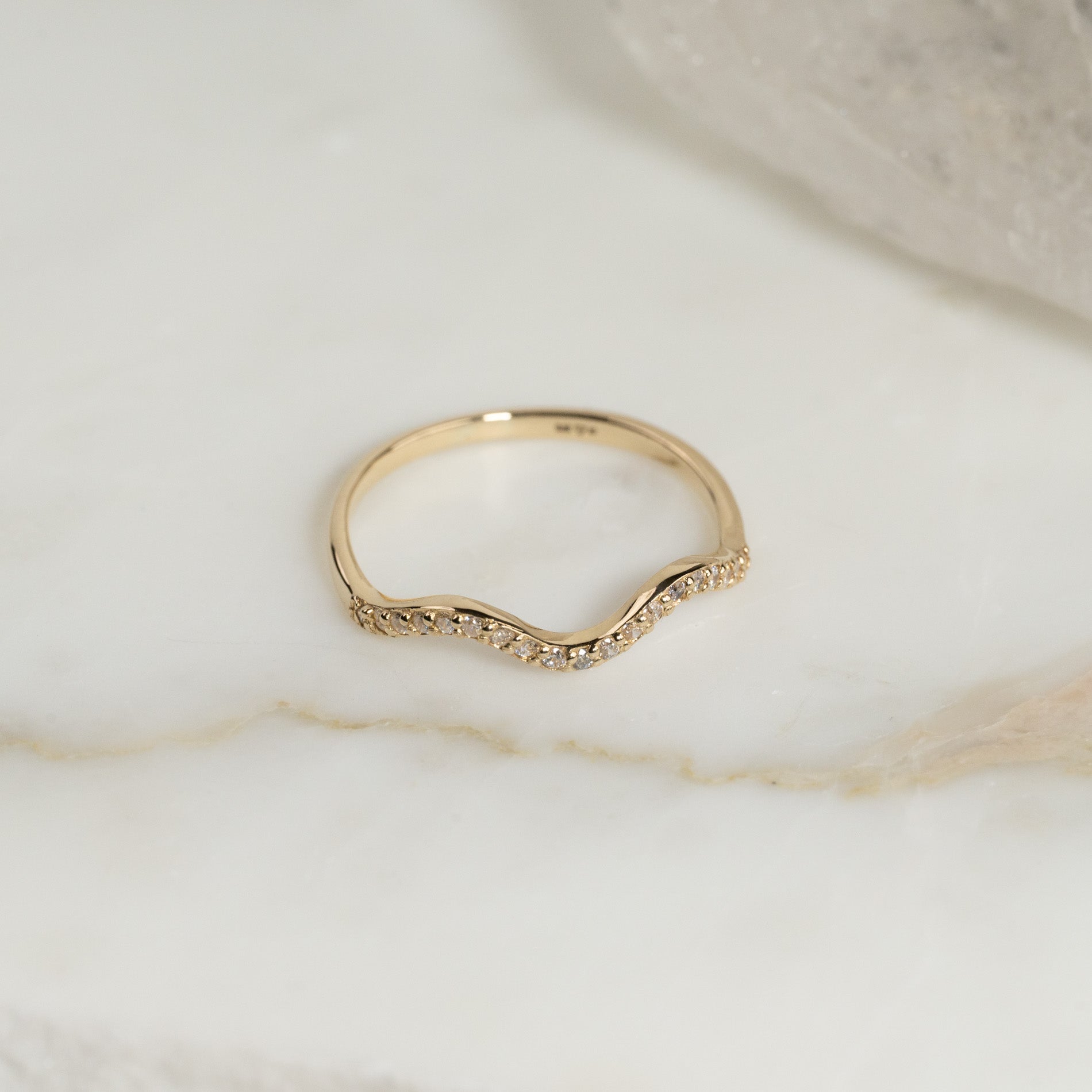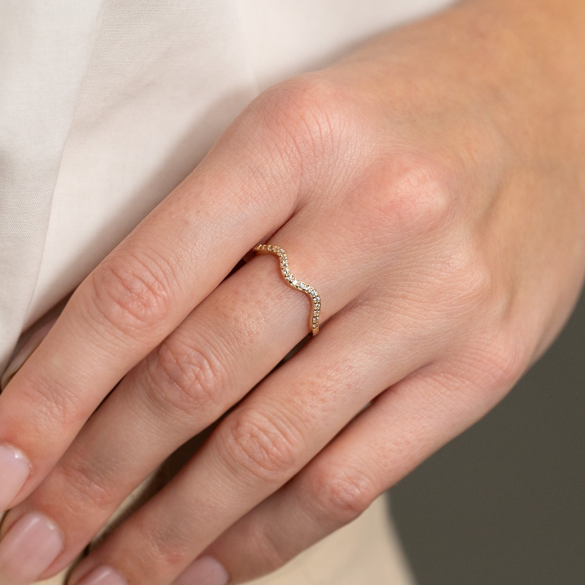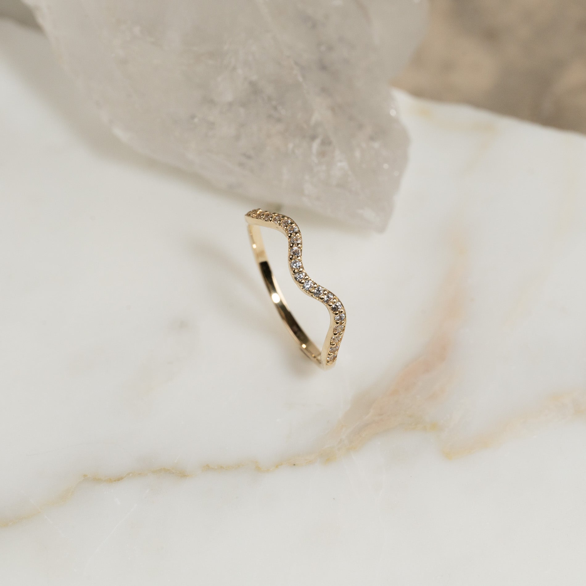 Wavy ring in 100% recycled 9 kt. Gold with clear zirconias.