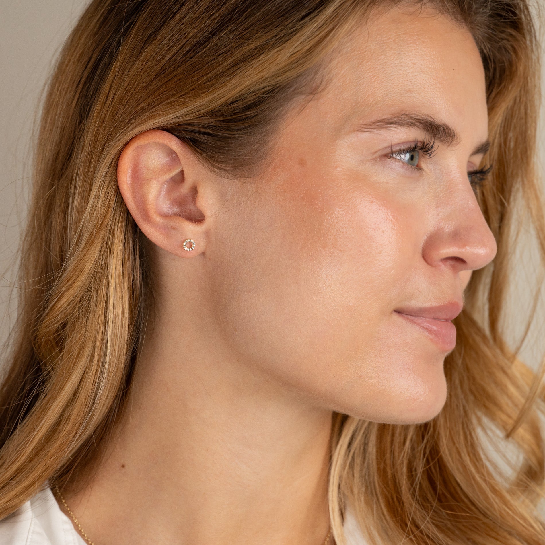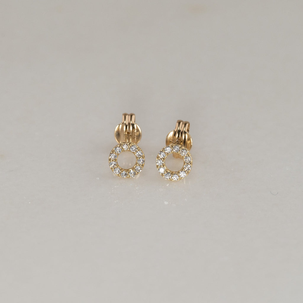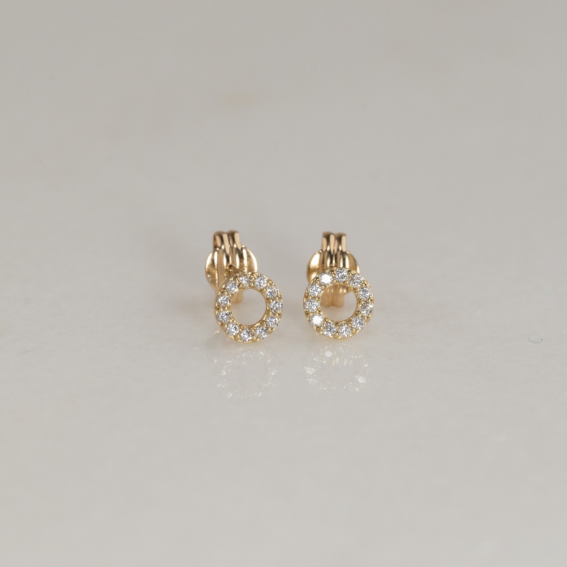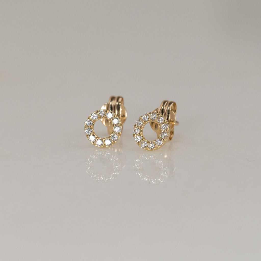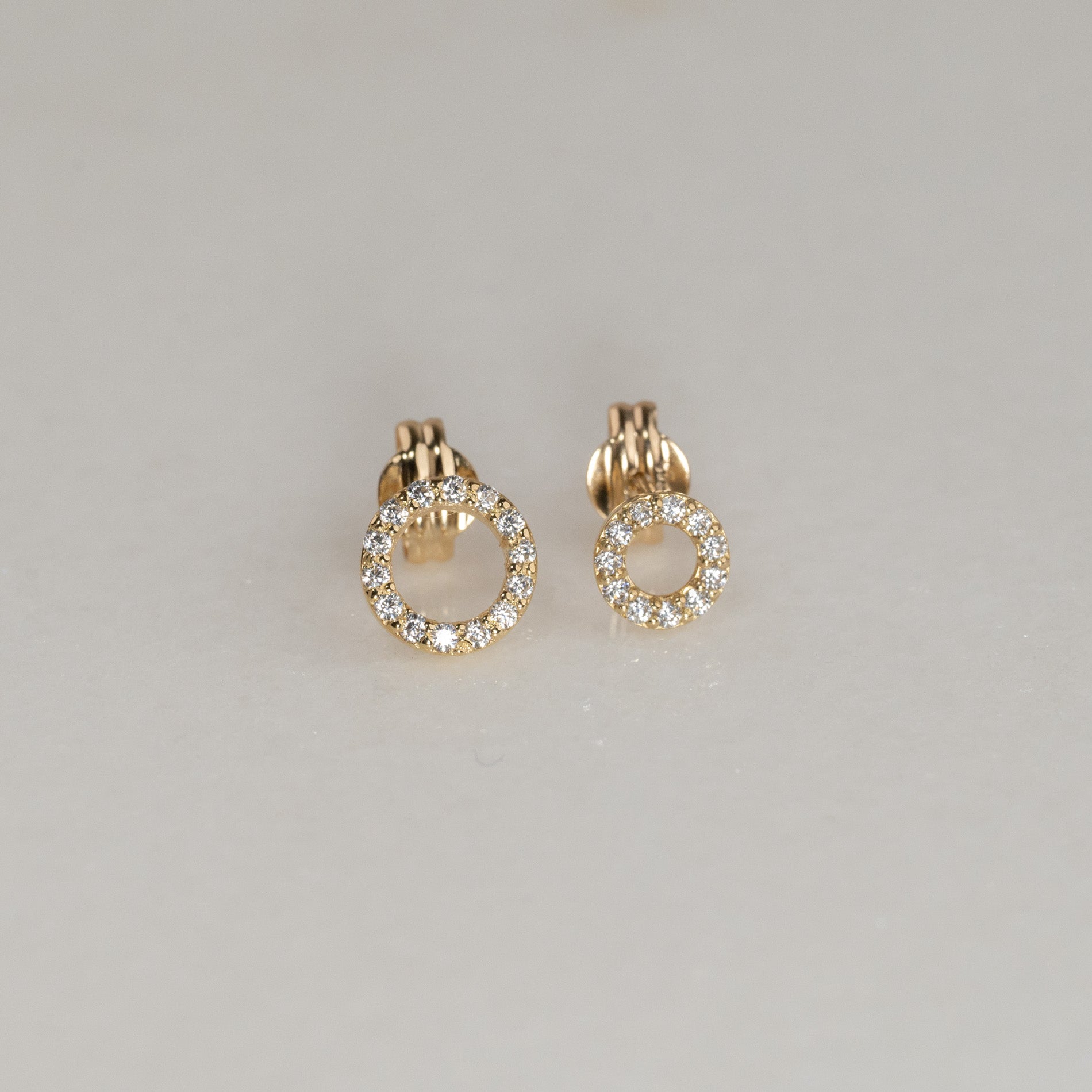 The studs consist of an open circle adorned with small white cubic zirconia stones, which create a beautiful play of light and they sparkle elegantly.