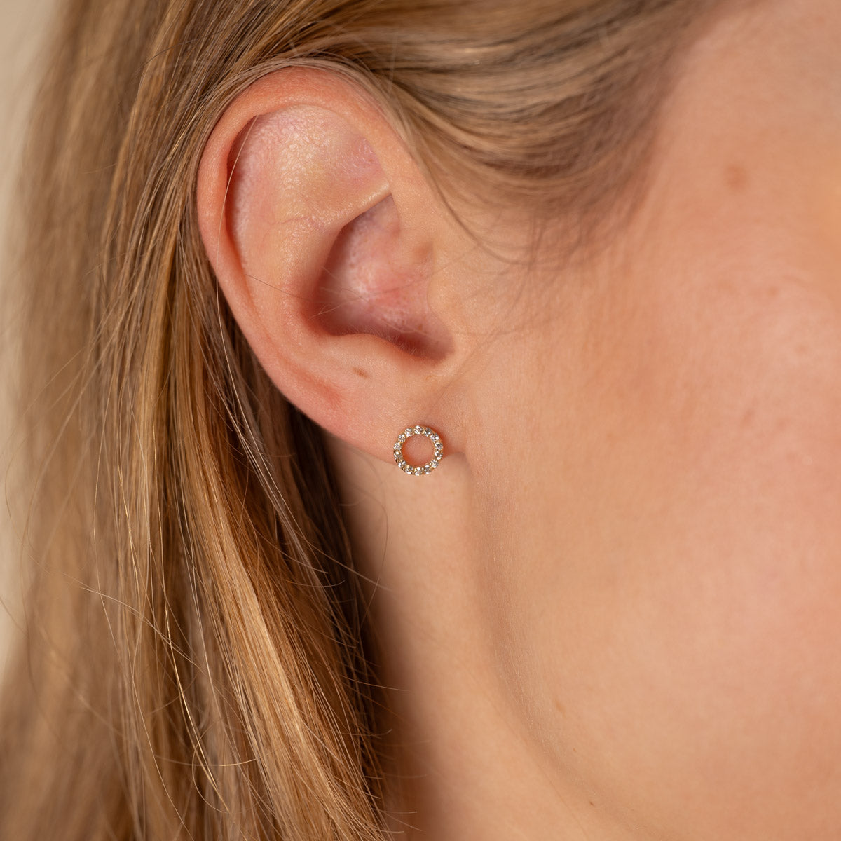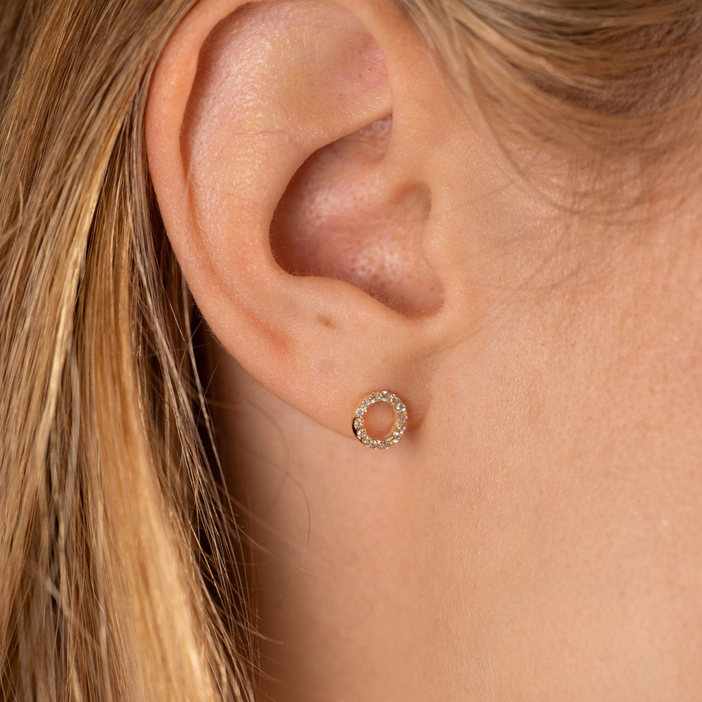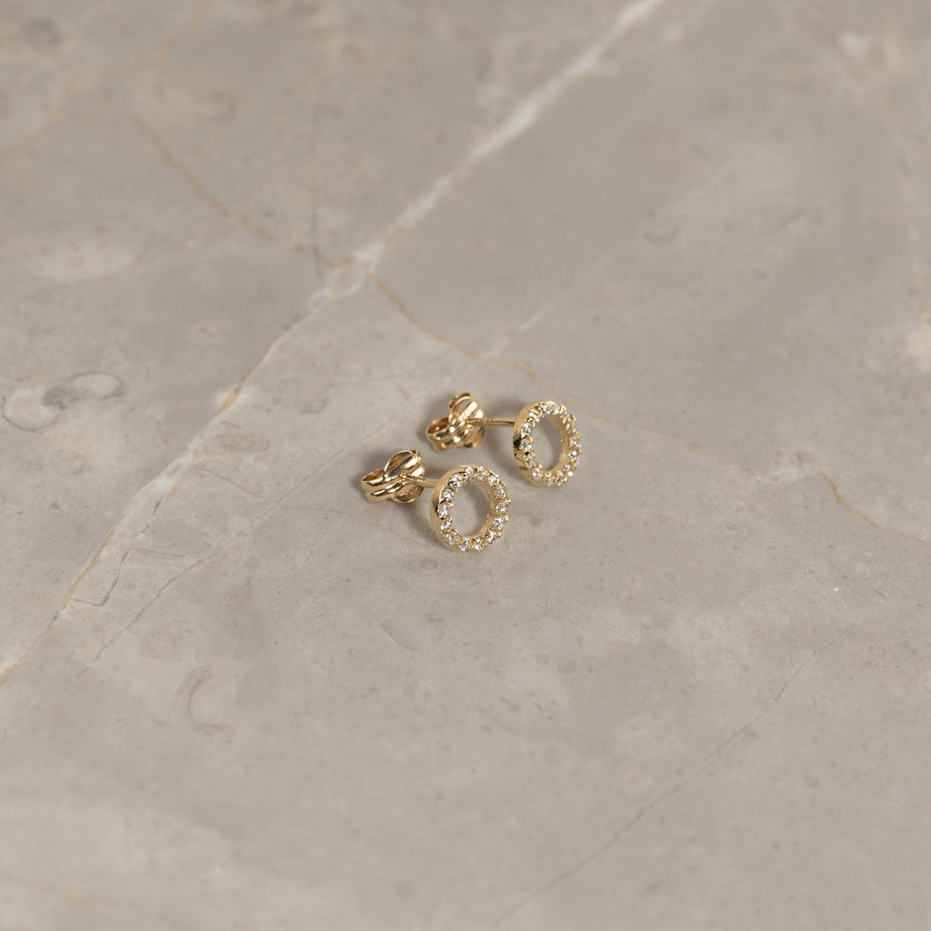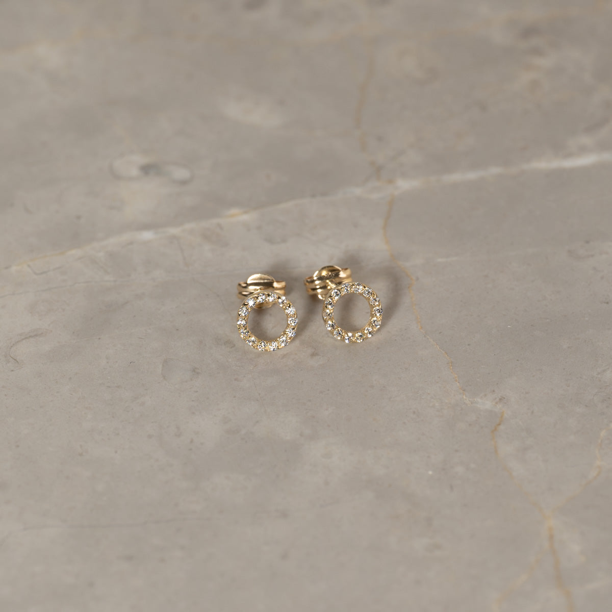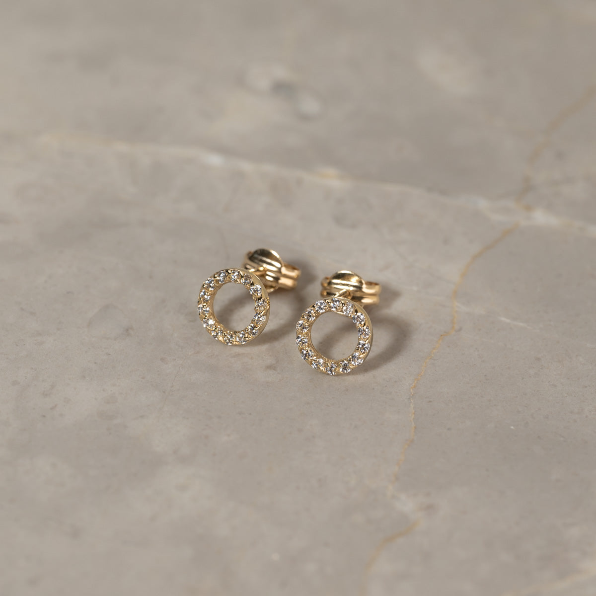 Golden Stud Earrings in Circular Shape with Pavé Cubic Zirconia