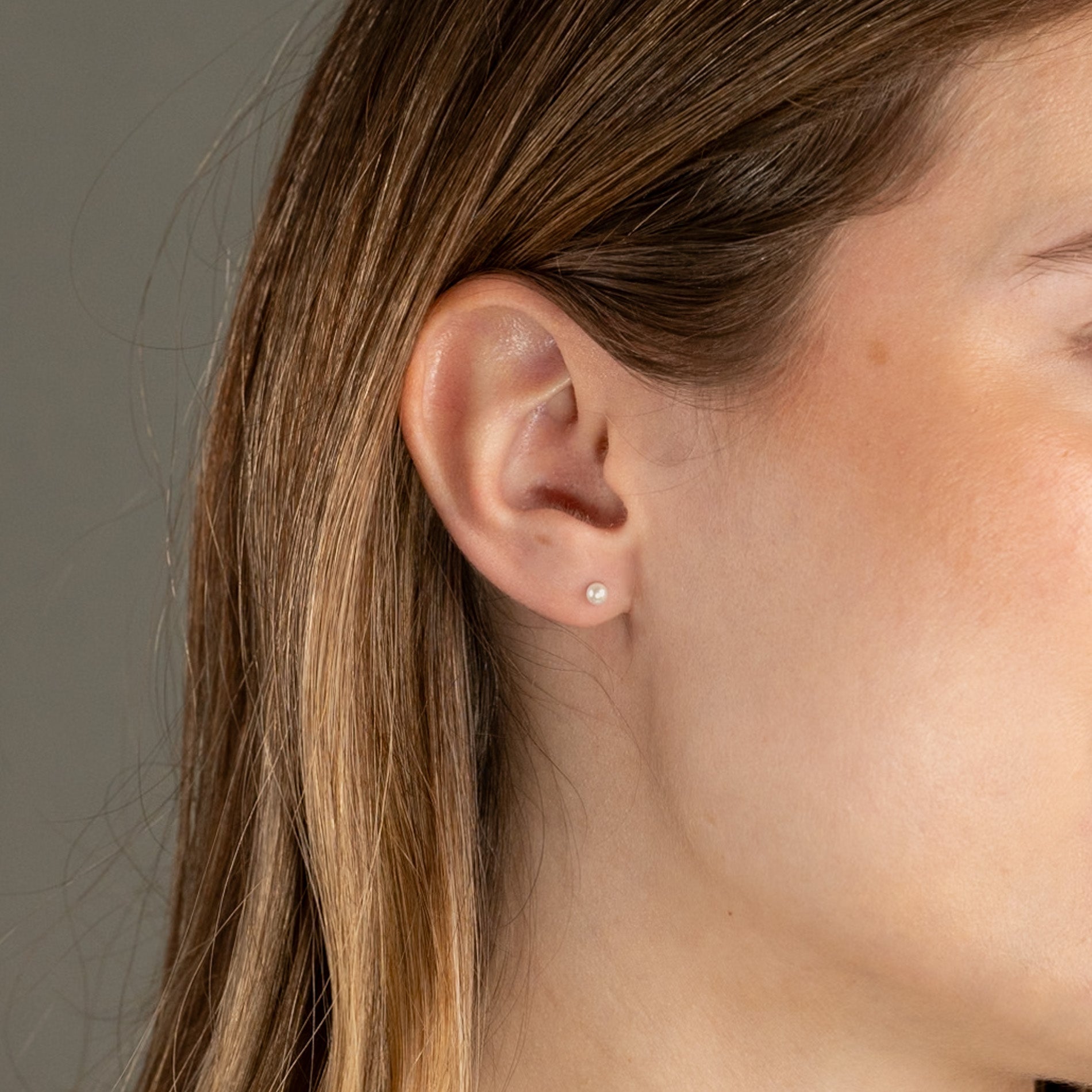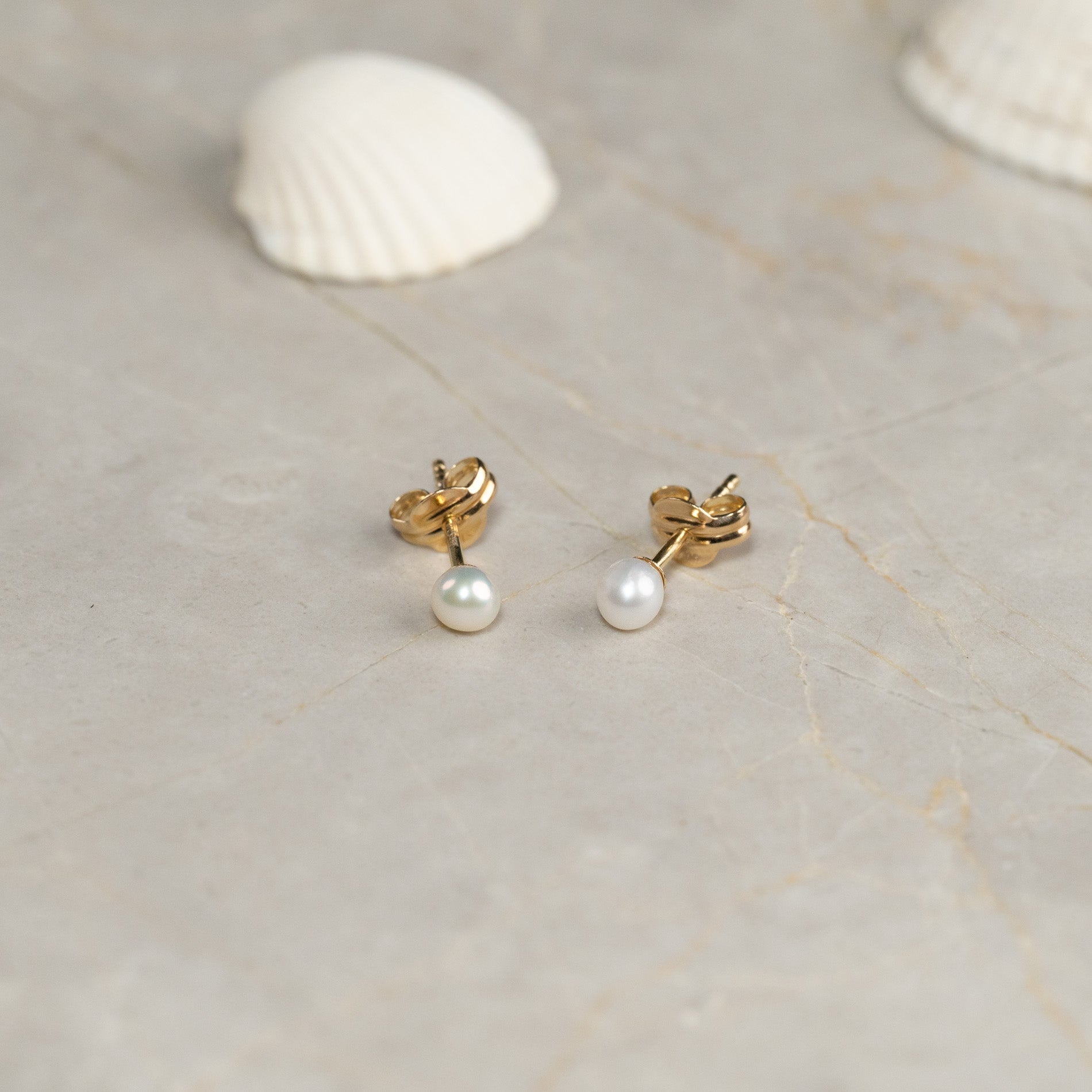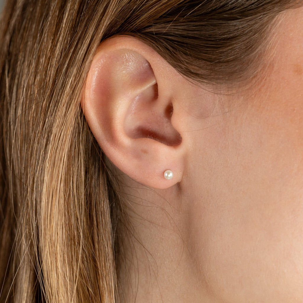 MAGGIE PEARL SOLID GOLD STUD EARRING - 3mm