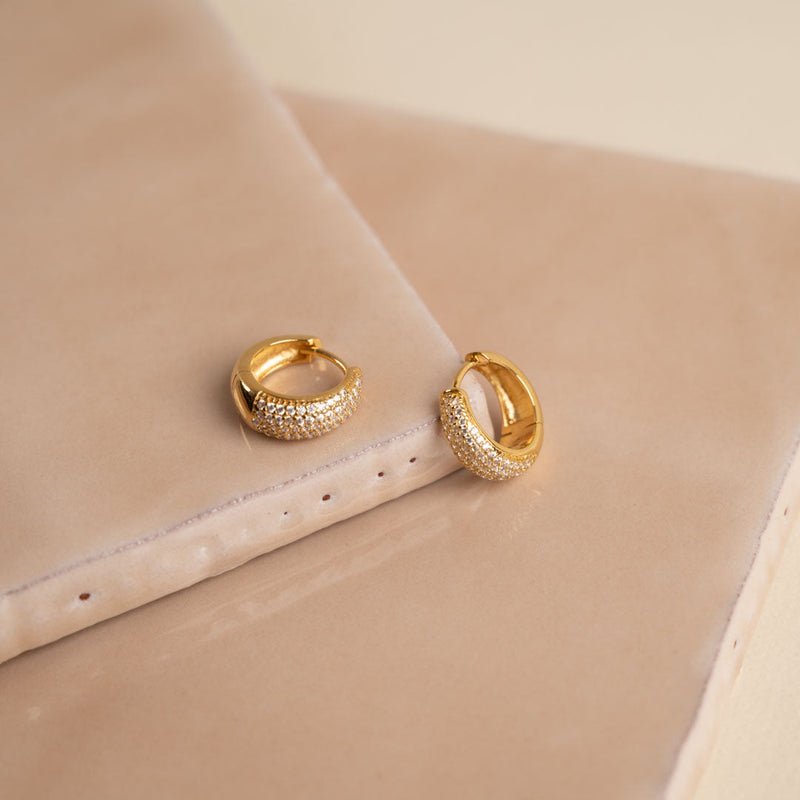Unsere Mary-Ohrringe sind aus 18 Karat vergoldetem 925er Sterlingsilber gefertigt. Die Ohrringe haben ein edles und zeitloses Design. Die kleinen Zirkone verleihen einen femininen Ausdruck und lassen die Ohrringe schön funkeln, wenn das Licht darauf fällt.