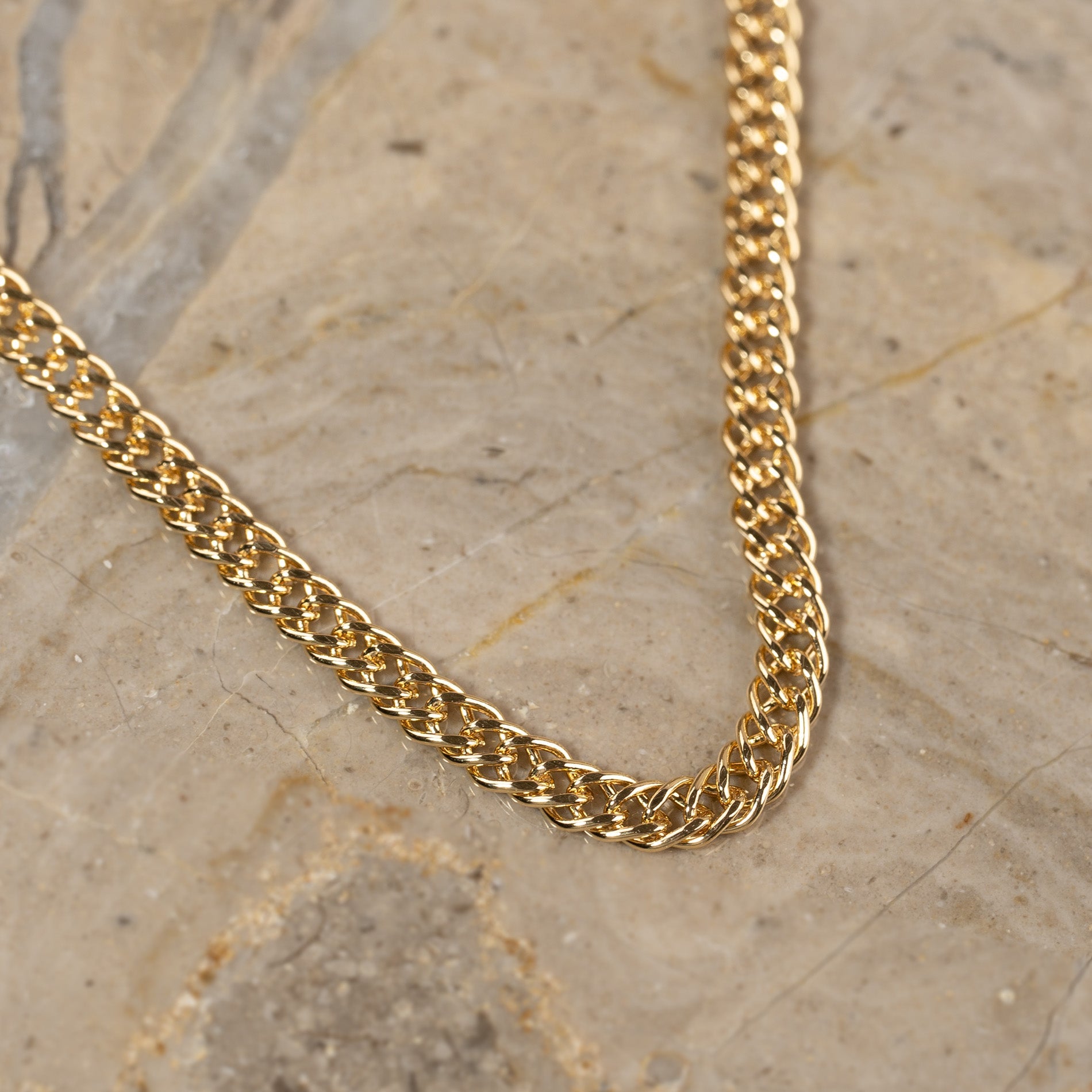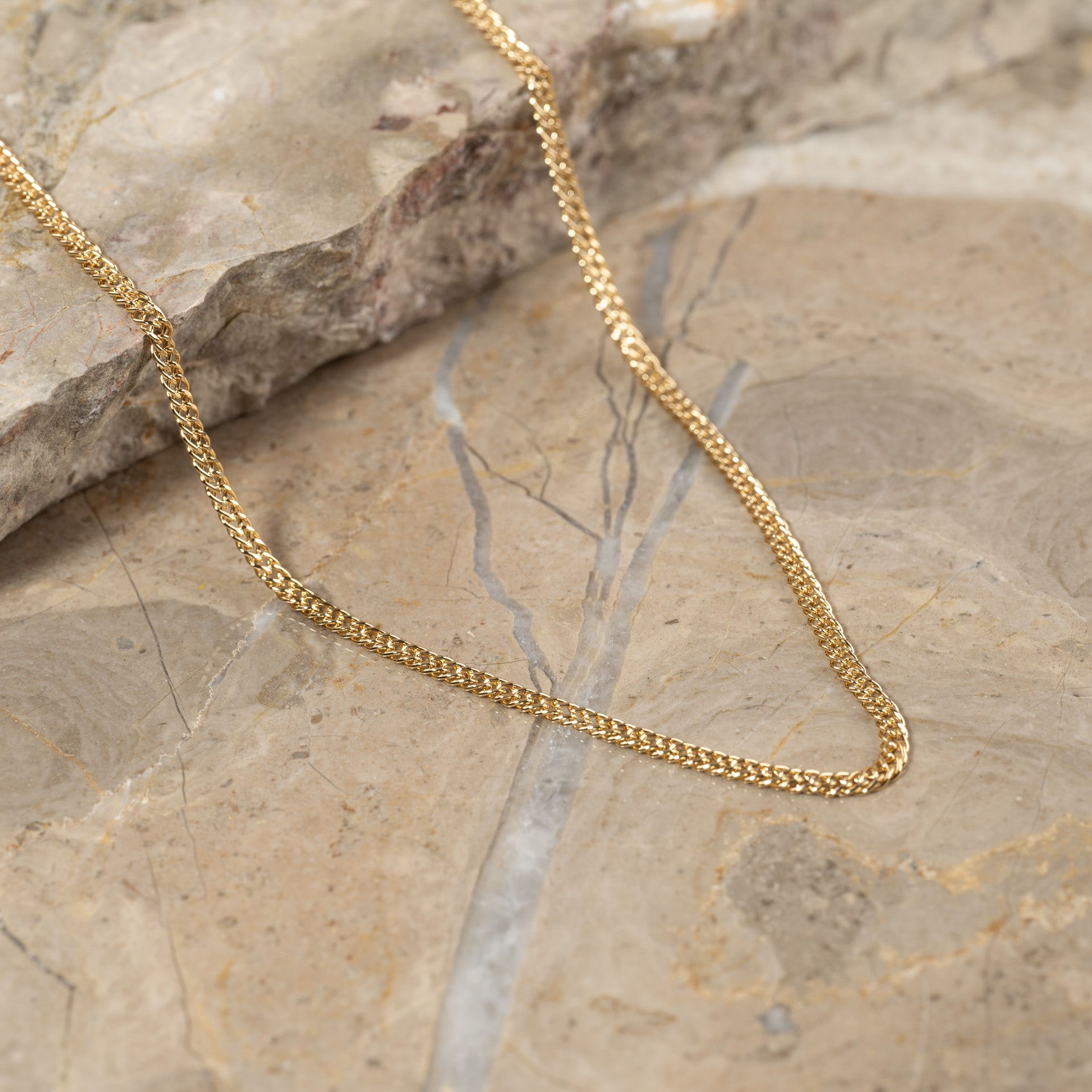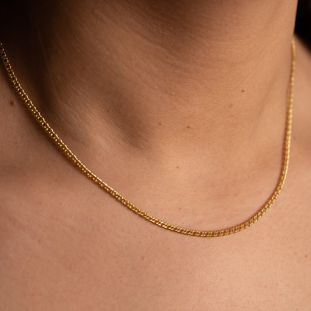 Unsere Mynte-Halskette wurde entwickelt, um einen minimalistischen und eleganten Ausdruck zu erzeugen, der niemals aus der Mode kommt. Die dichten Gelenke bieten ein einfaches und schönes Muster, das gut um den Hals fällt.