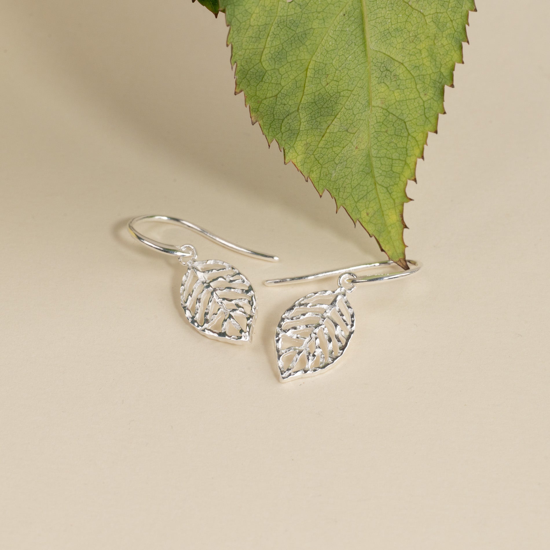Earrings made from 100% recycled sterling silver with an elegant leaf-shaped design.