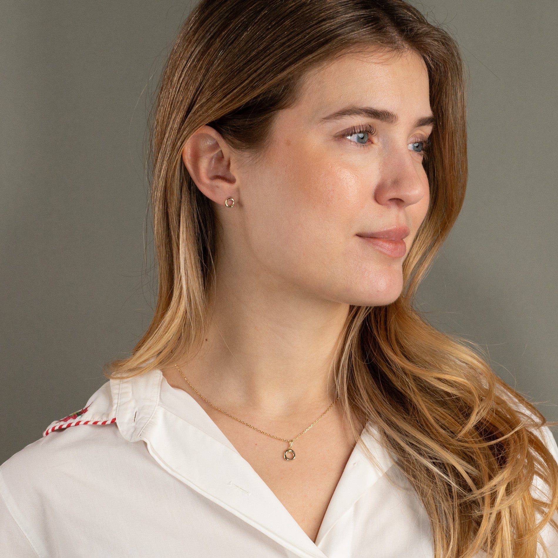 The stud earrings are made from 100% recycled solid 9 karat gold.