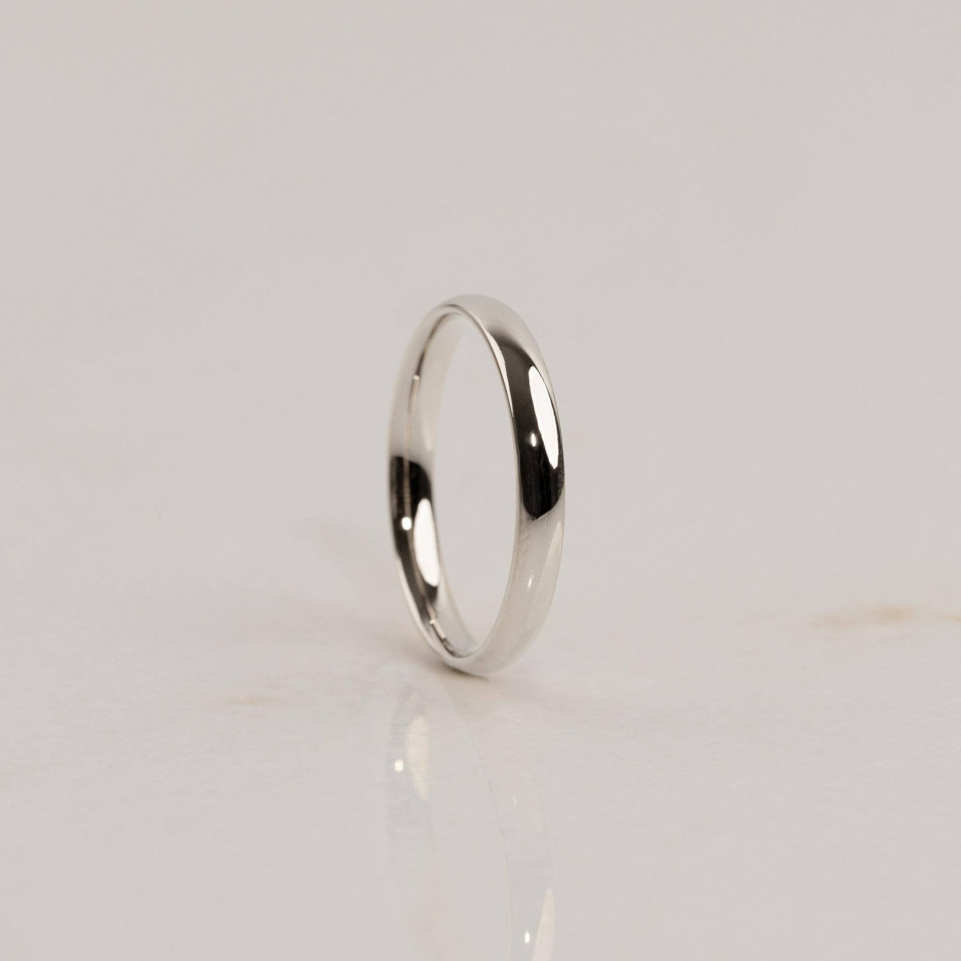 The Classic D-profile has a flat interior and a curved exterior, giving the ring its characteristic D-shape. It is a timeless wedding band in a classic design.