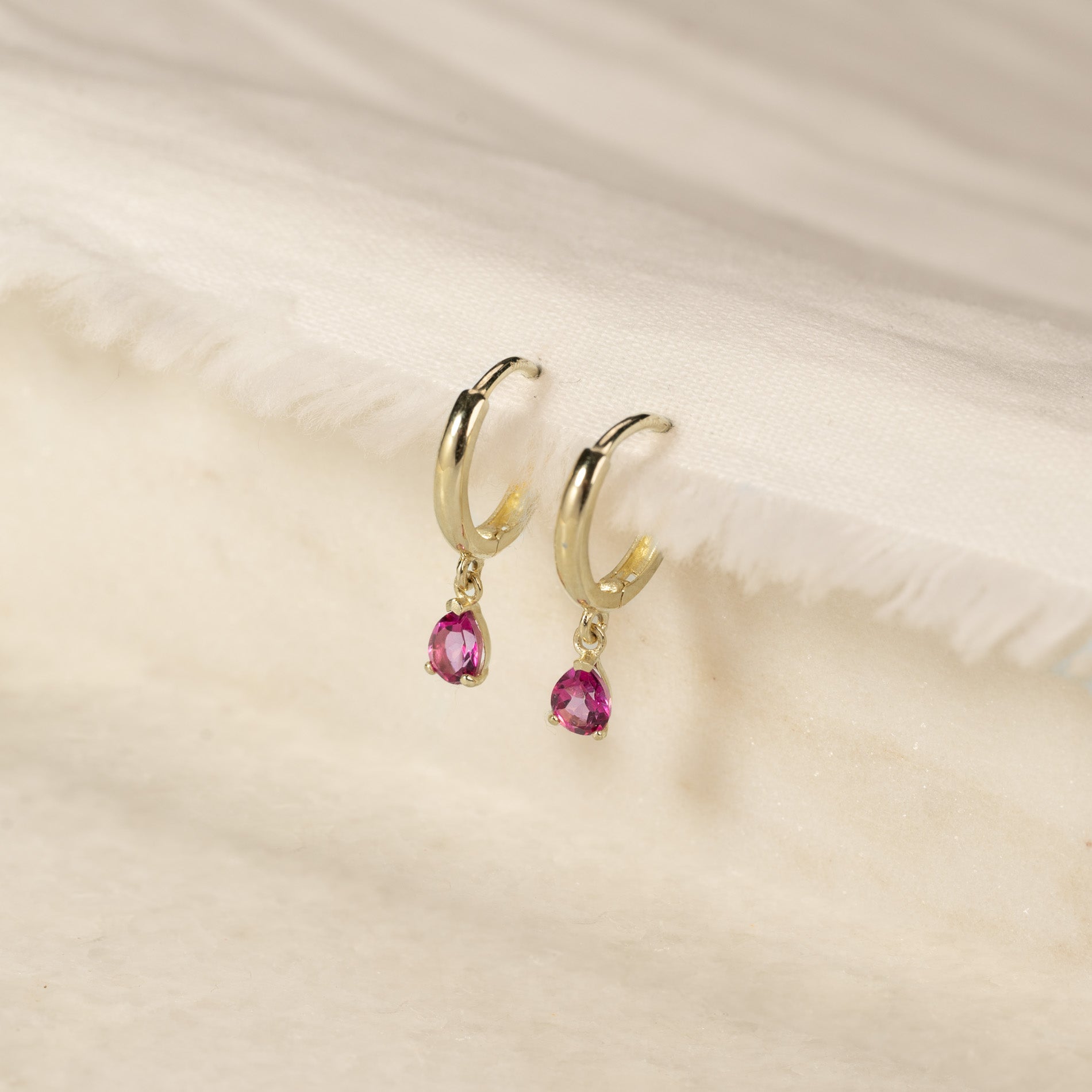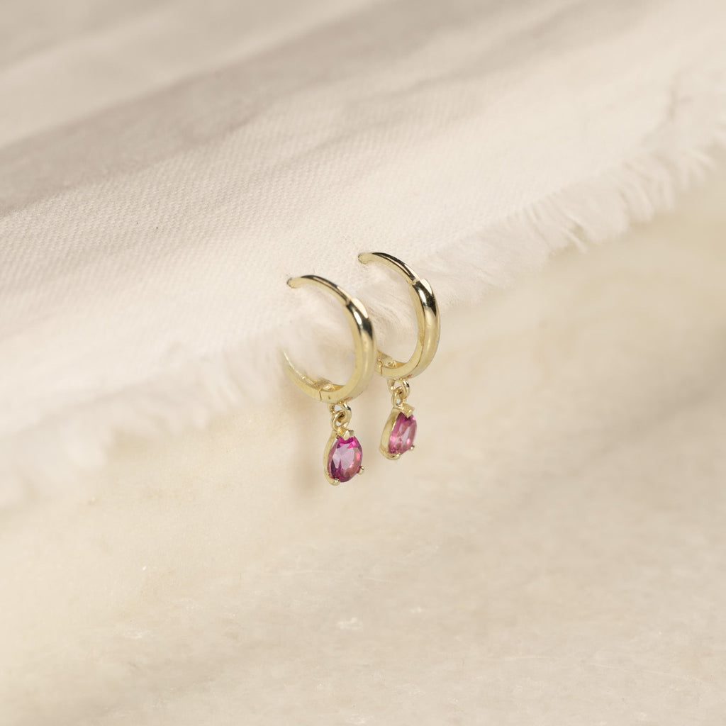 Hoop earrings in solid gold with pink topaz