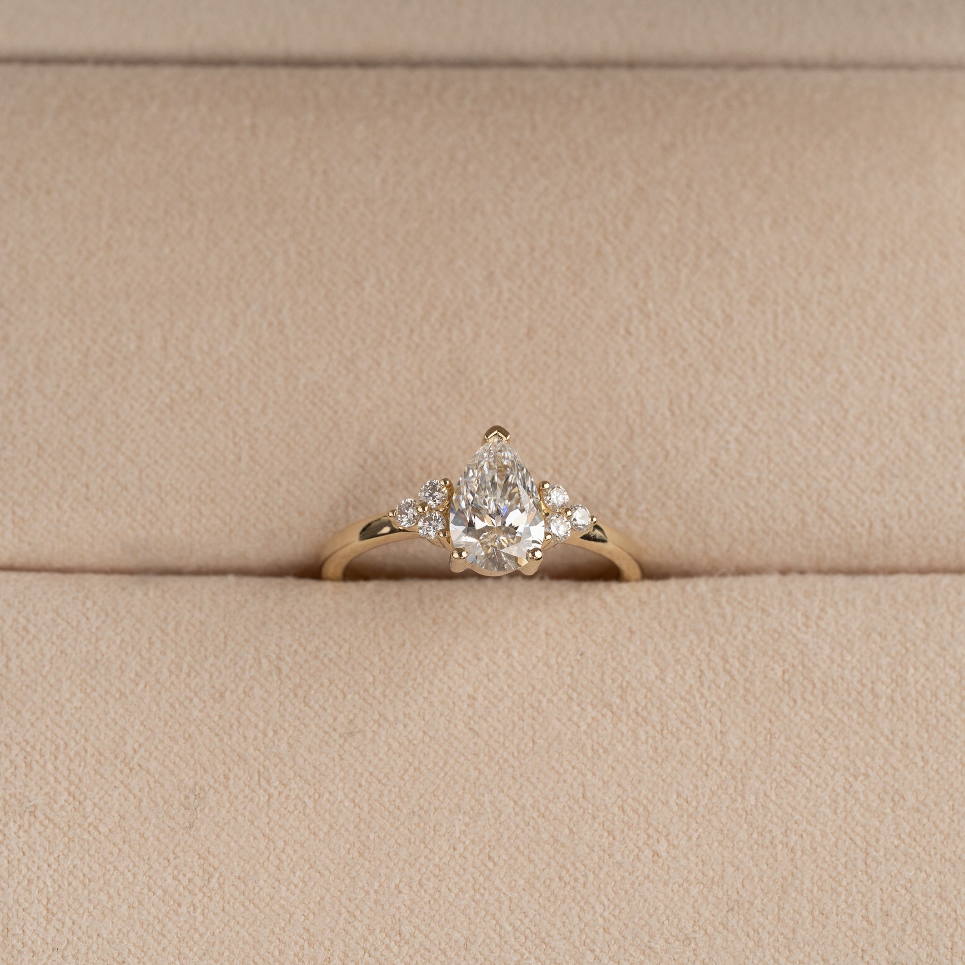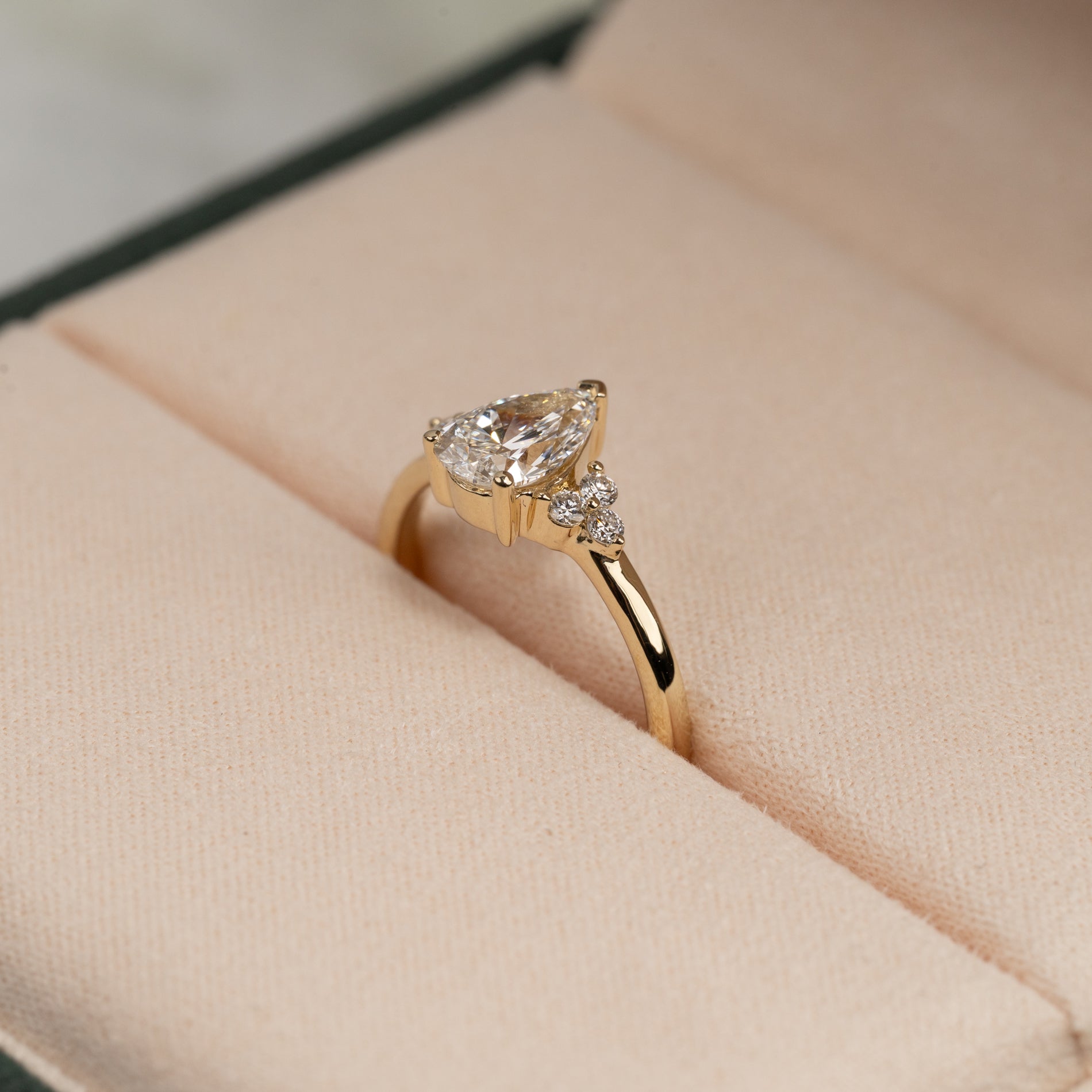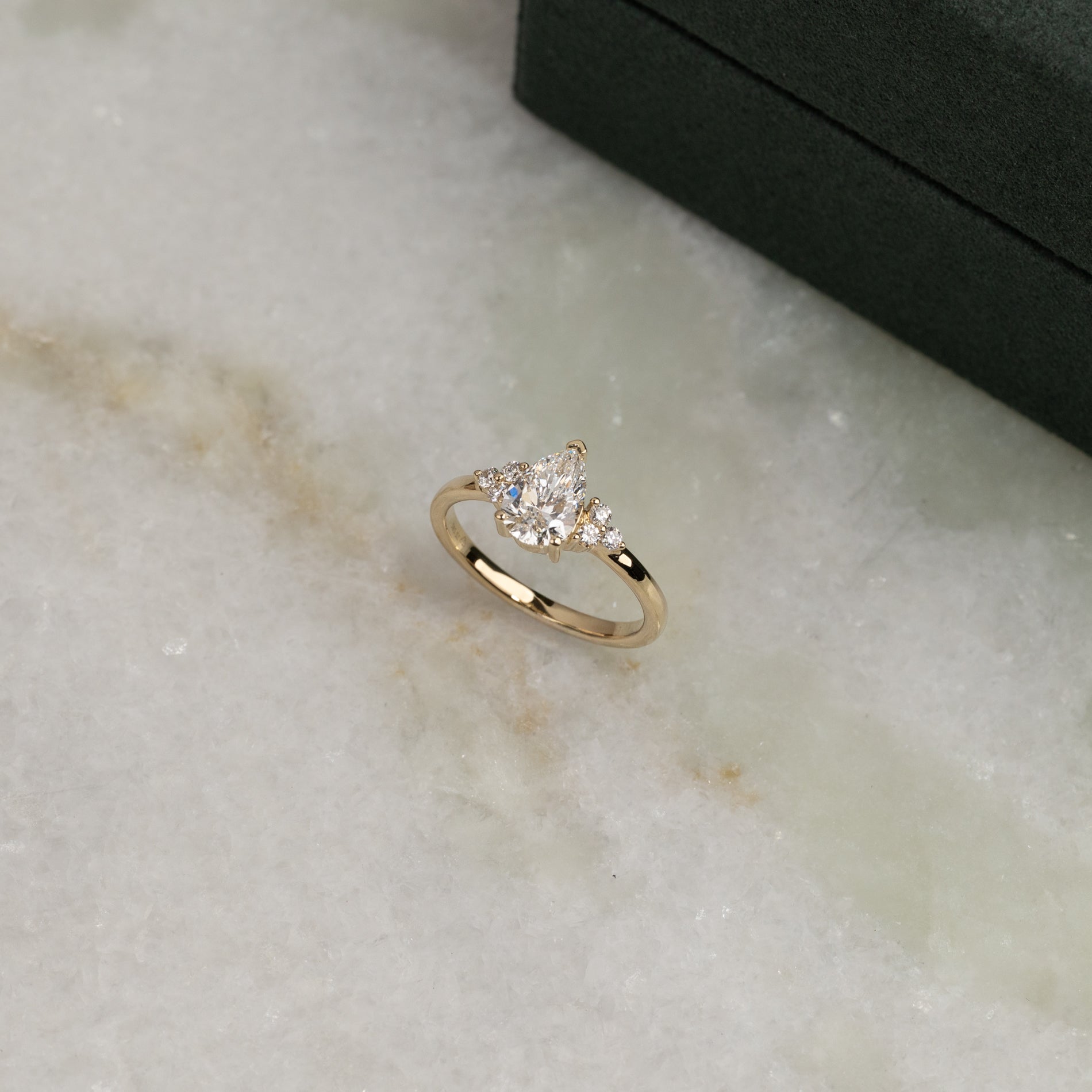 Pear-shaped diamond ring with a 1.0 ct lab-grown diamond and elegant side stones
