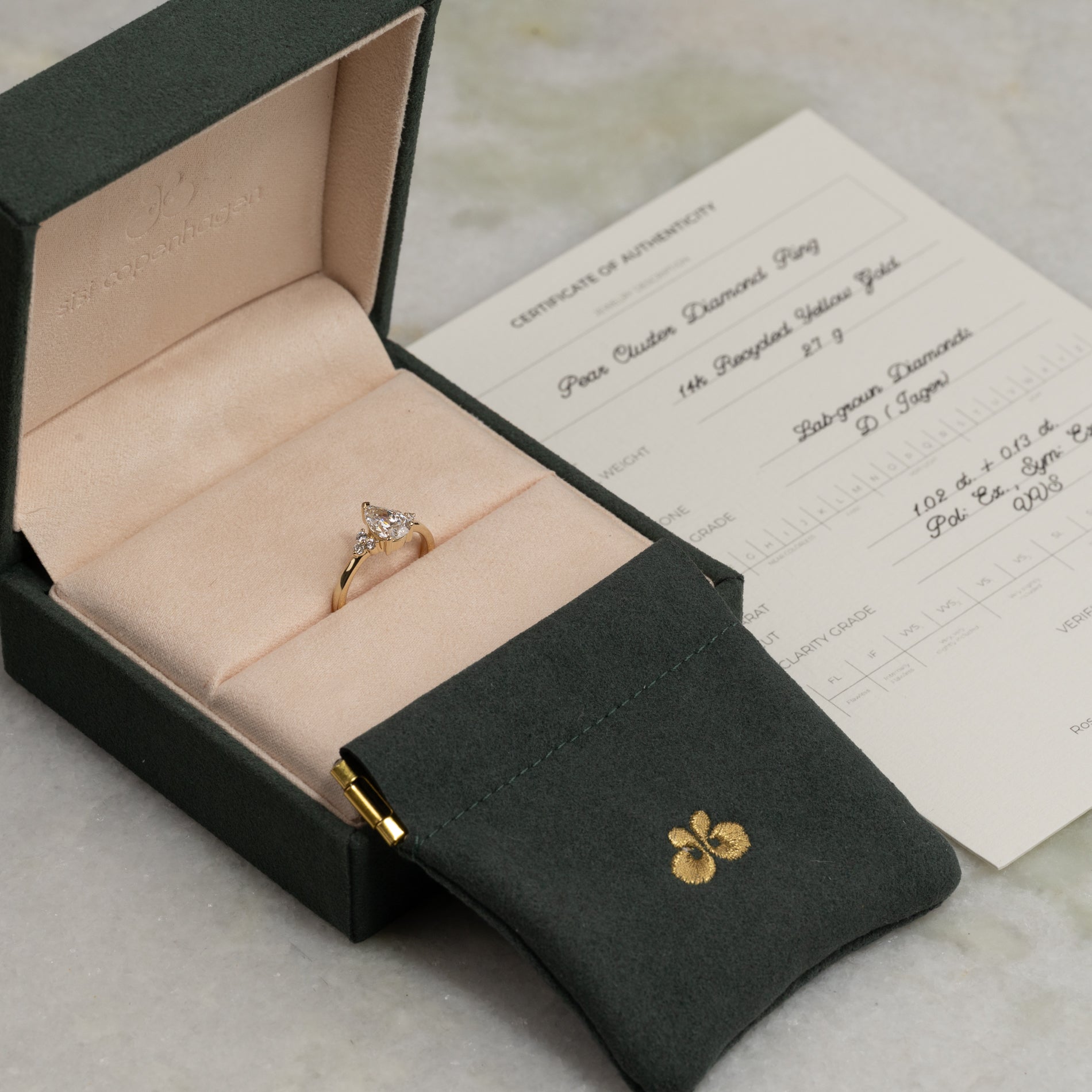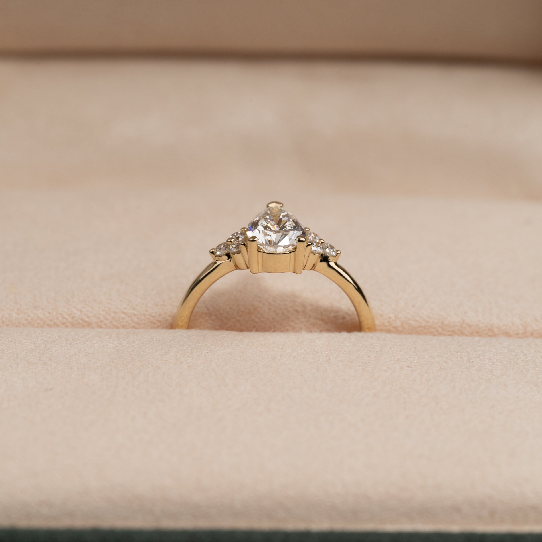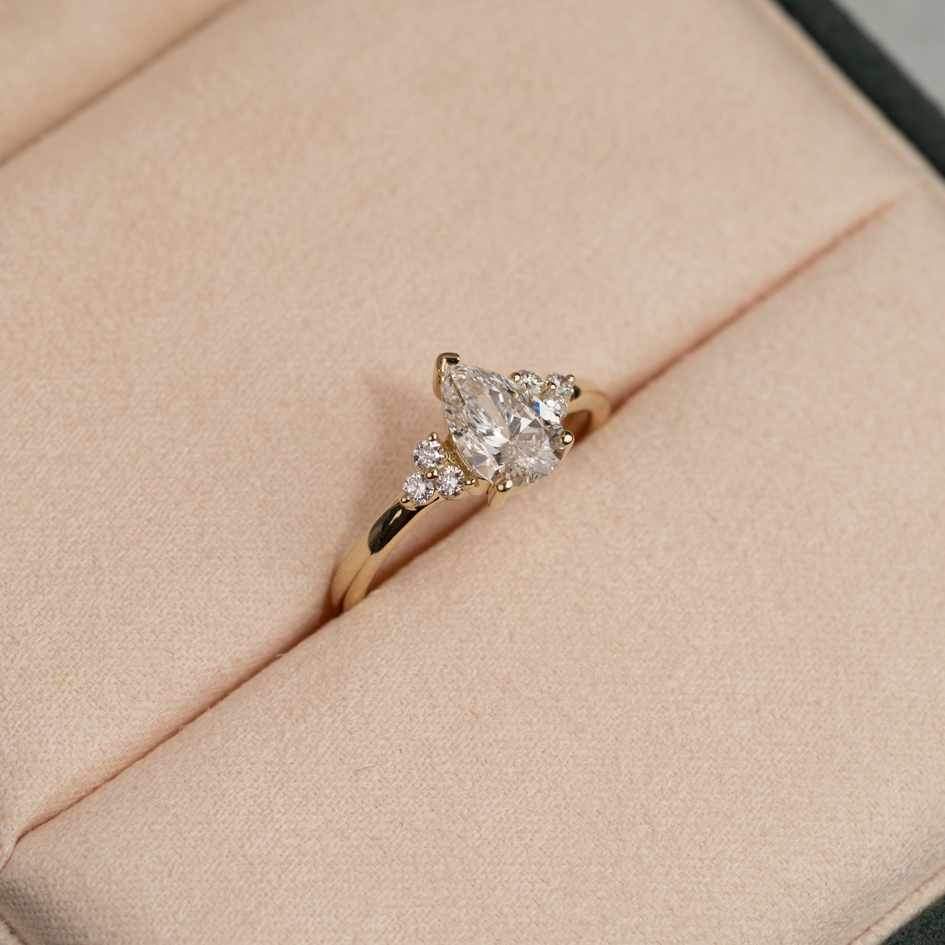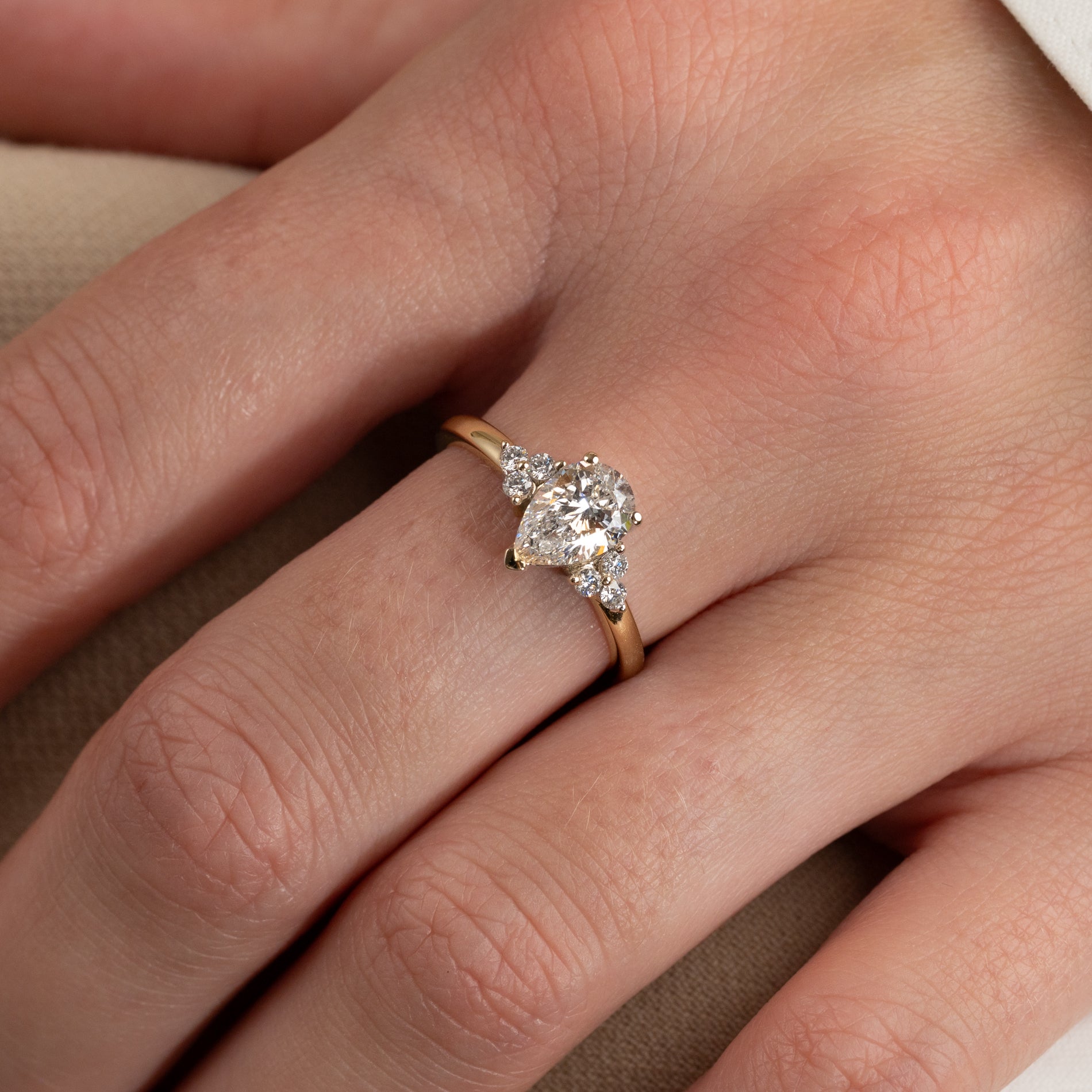 Pear-shaped diamond ring with a 1.0 ct lab-grown diamond and elegant side stones