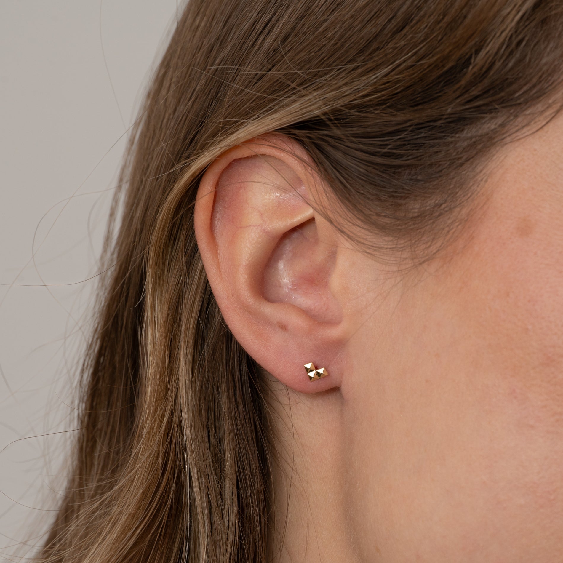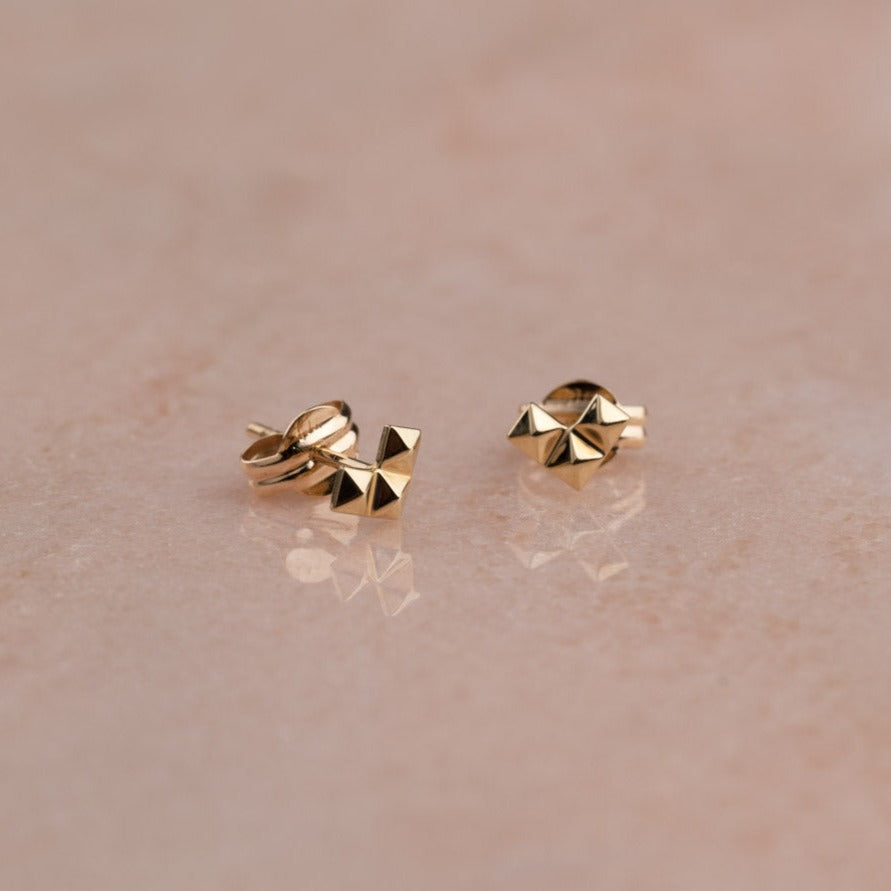 Our riveted Heart Ear Stickers are created in 100% recycled massive 9 carat gold. They designed as three 'rivets' that together form a heart shape, an arrow or an L - depending on how to turn them when you put them on. The raw expression from the rivets of the fine little design can be a perfect way to put a little edge on one's outfit.