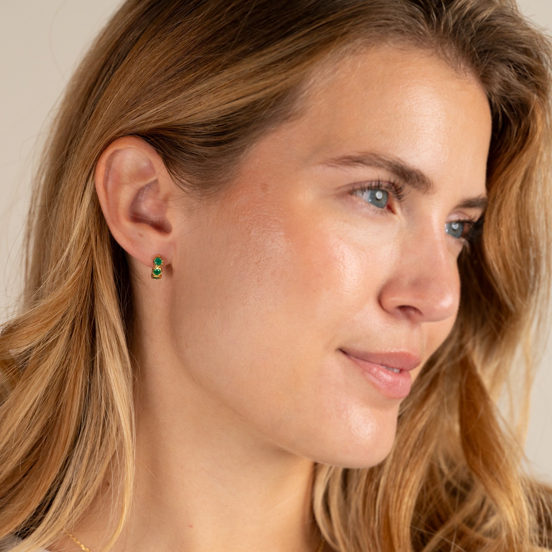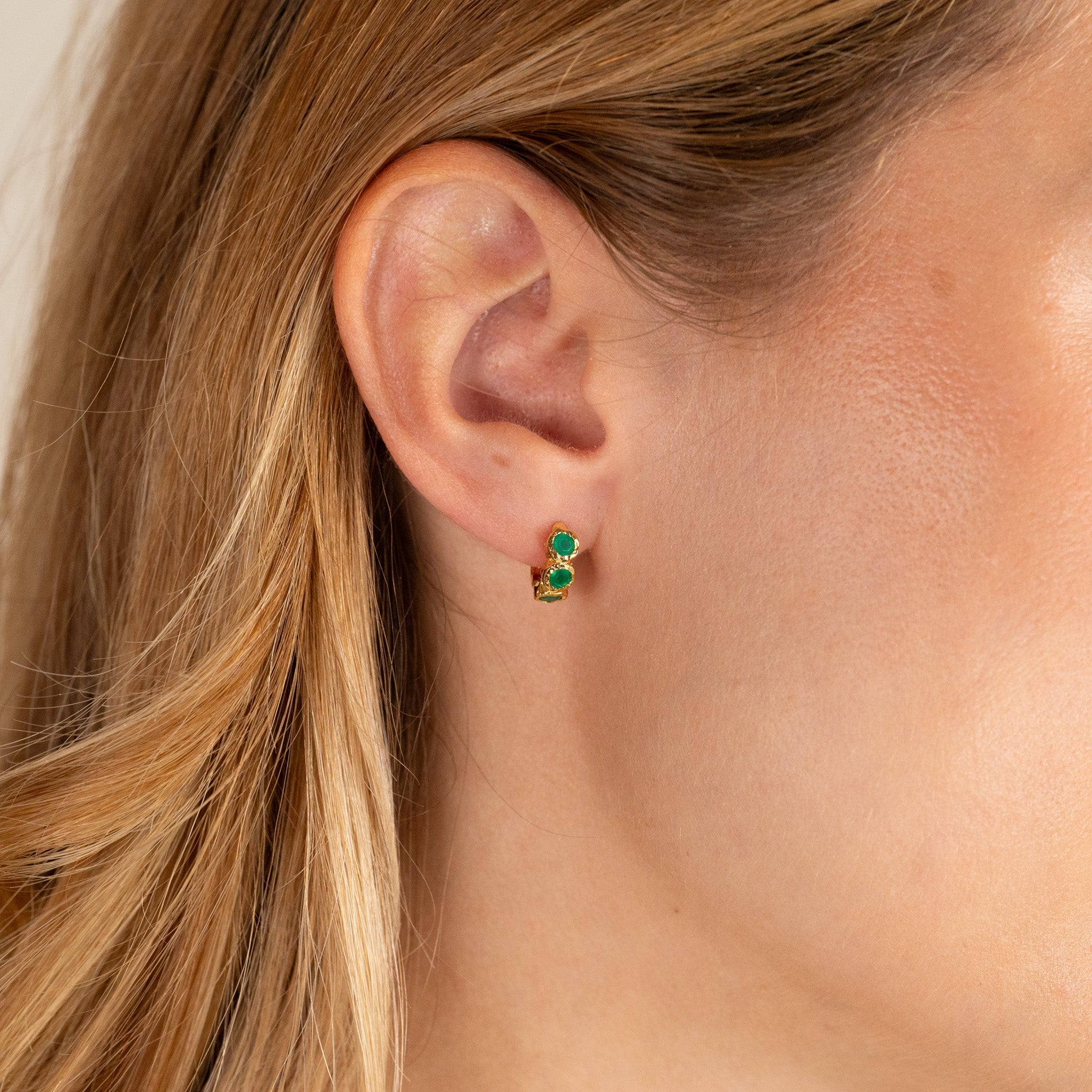 SELENE GREEN AGATE GOLDEN HUGGIE EARRING