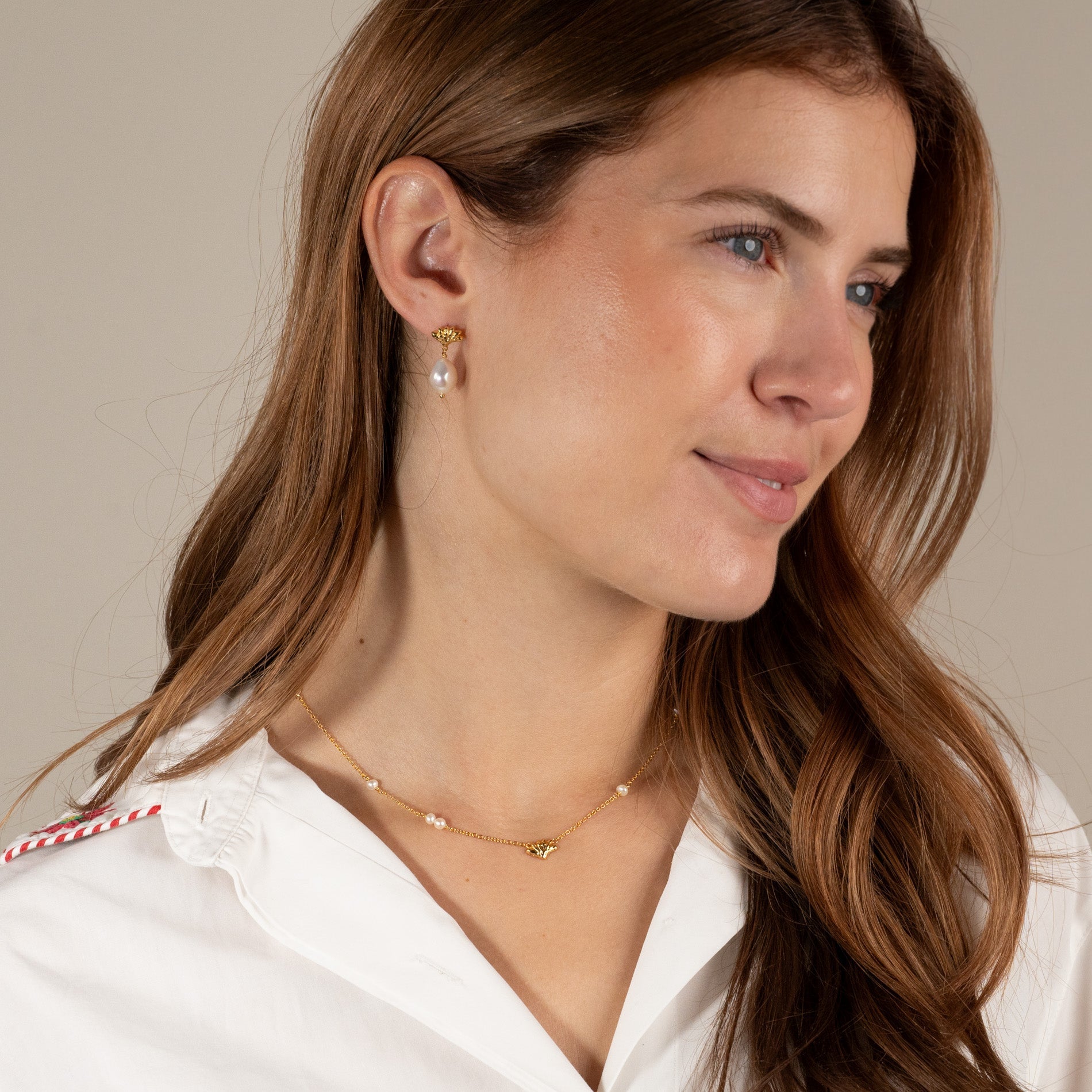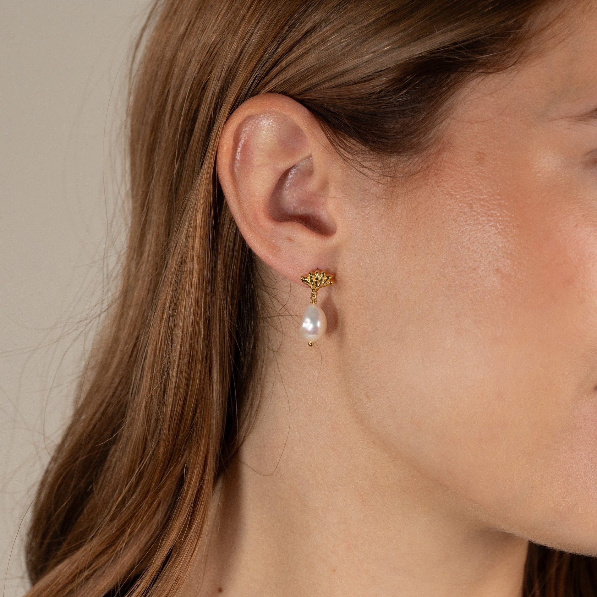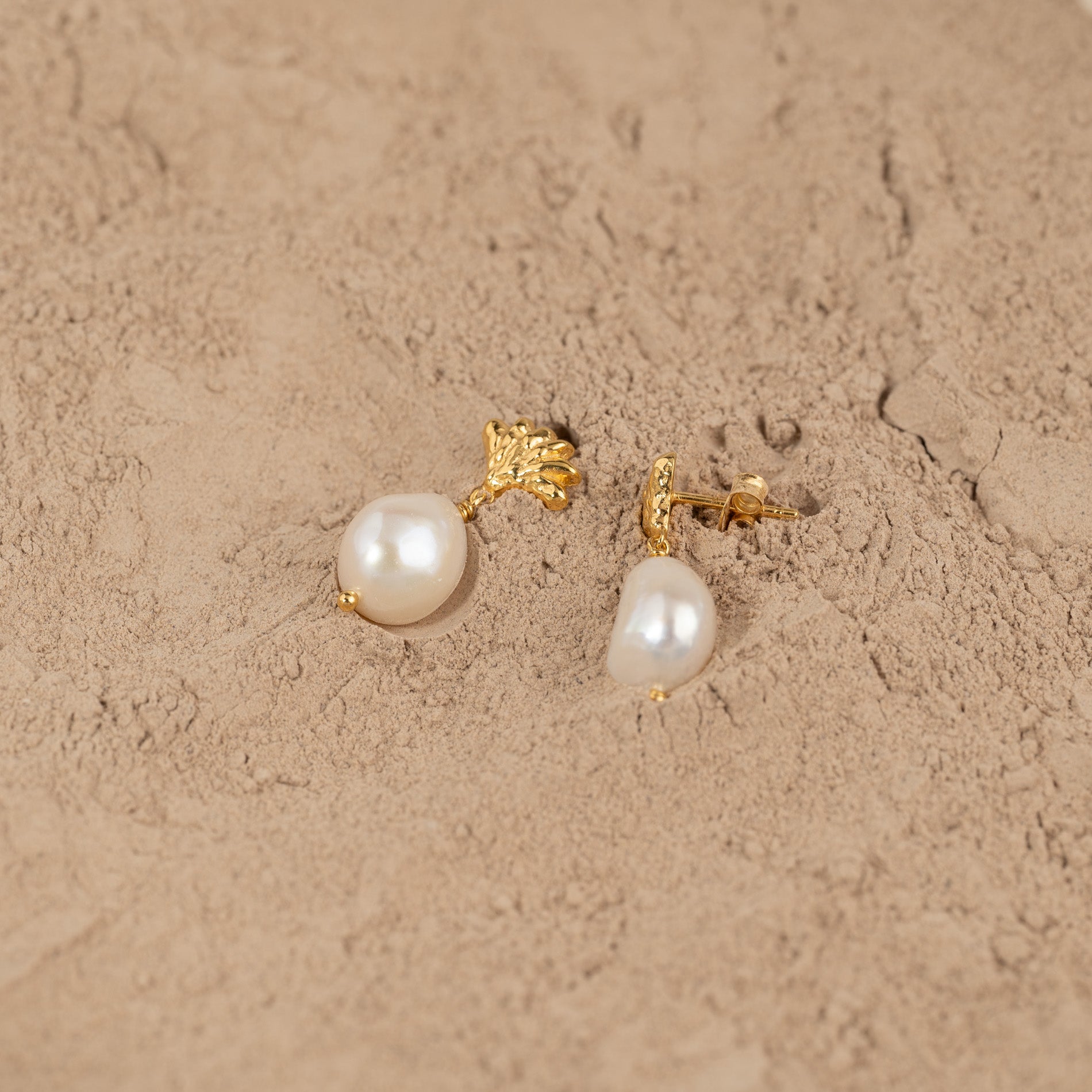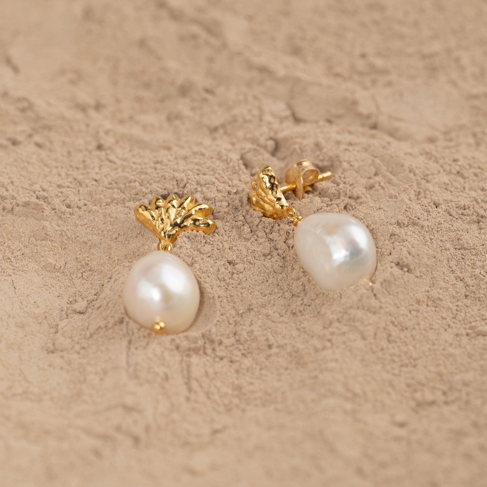 Our Shelly earrings are made from 100% recycled 18-carat gold-plated 925 sterling silver with baroque freshwater pearls.