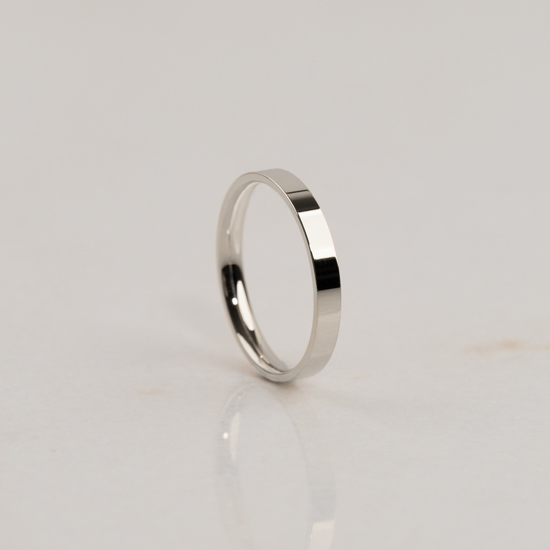 Our Flat Comfort wedding band has a modern and minimalistic design. The flat exterior creates a clean, sharp look, while the gently rounded interior ensures a comfortable fit.