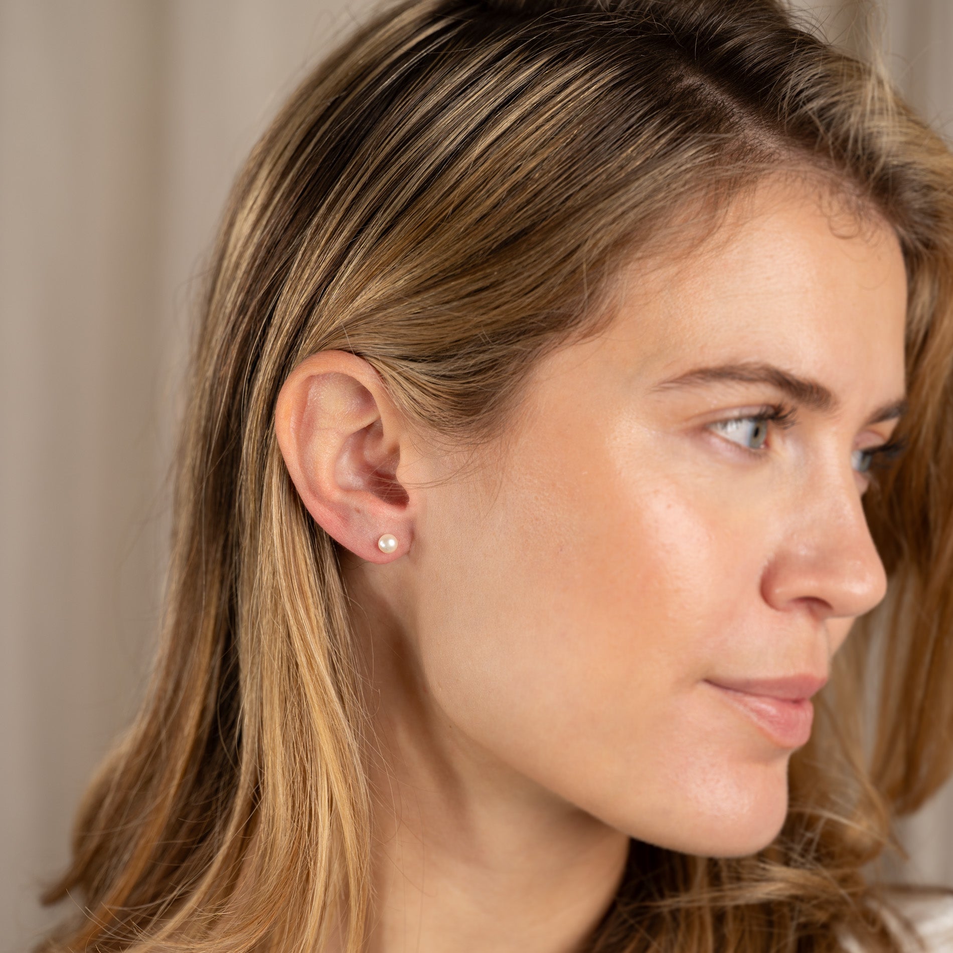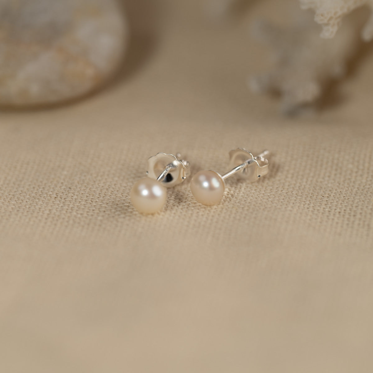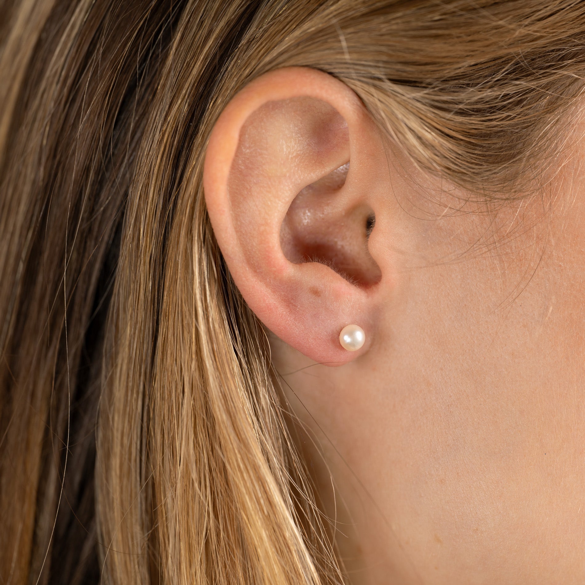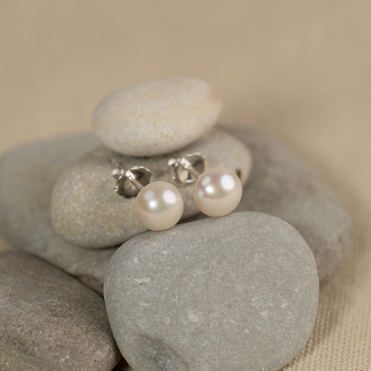 These elegant pearl earrings are made of 100% recycled 925 sterling silver, with white 'button' cultured freshwater pearls. You can choose the pearl earrings in 5mm, 7mm, or 10mm sizes.