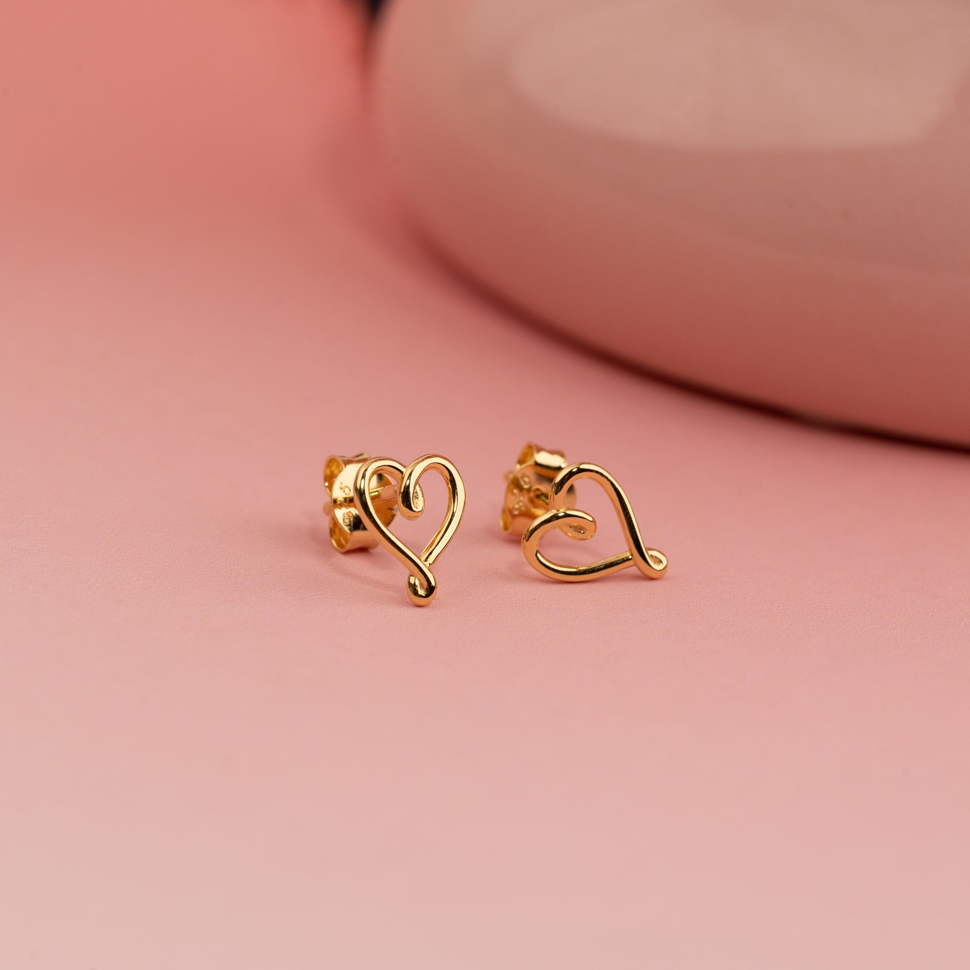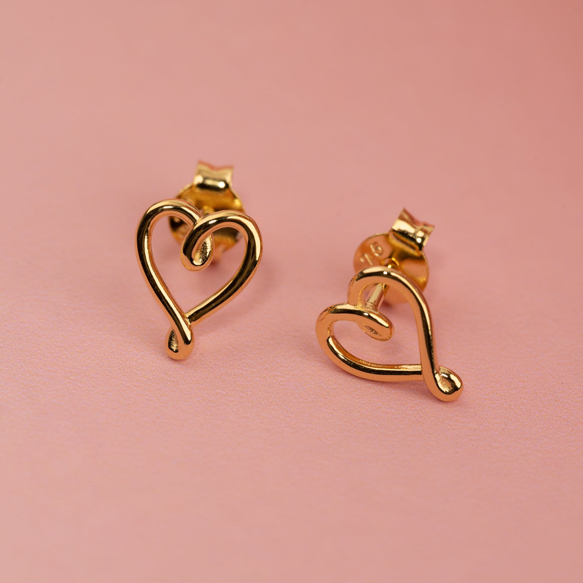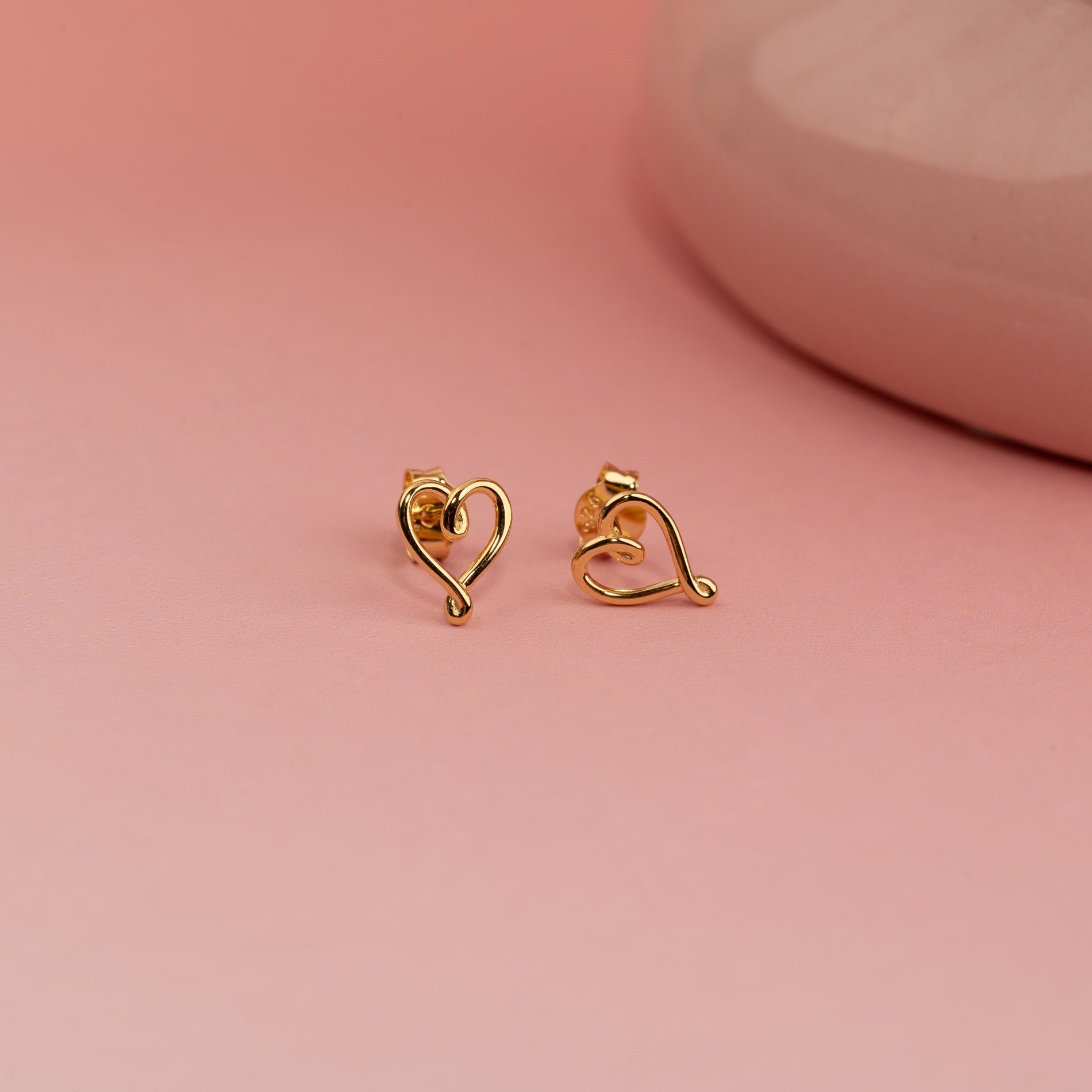 Elegant heart-shaped stud earrings made of 100% recycled 18kt. gold-plated sterling silver.