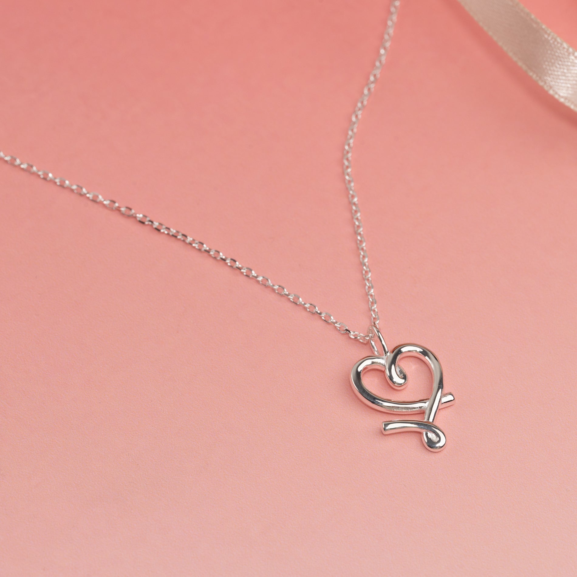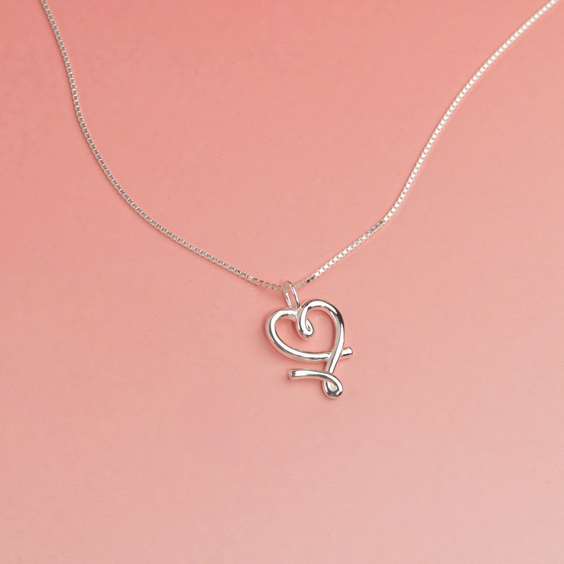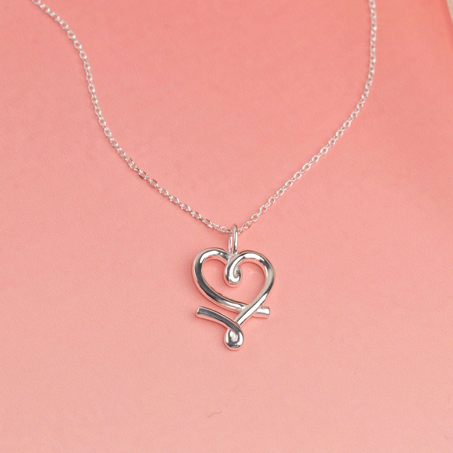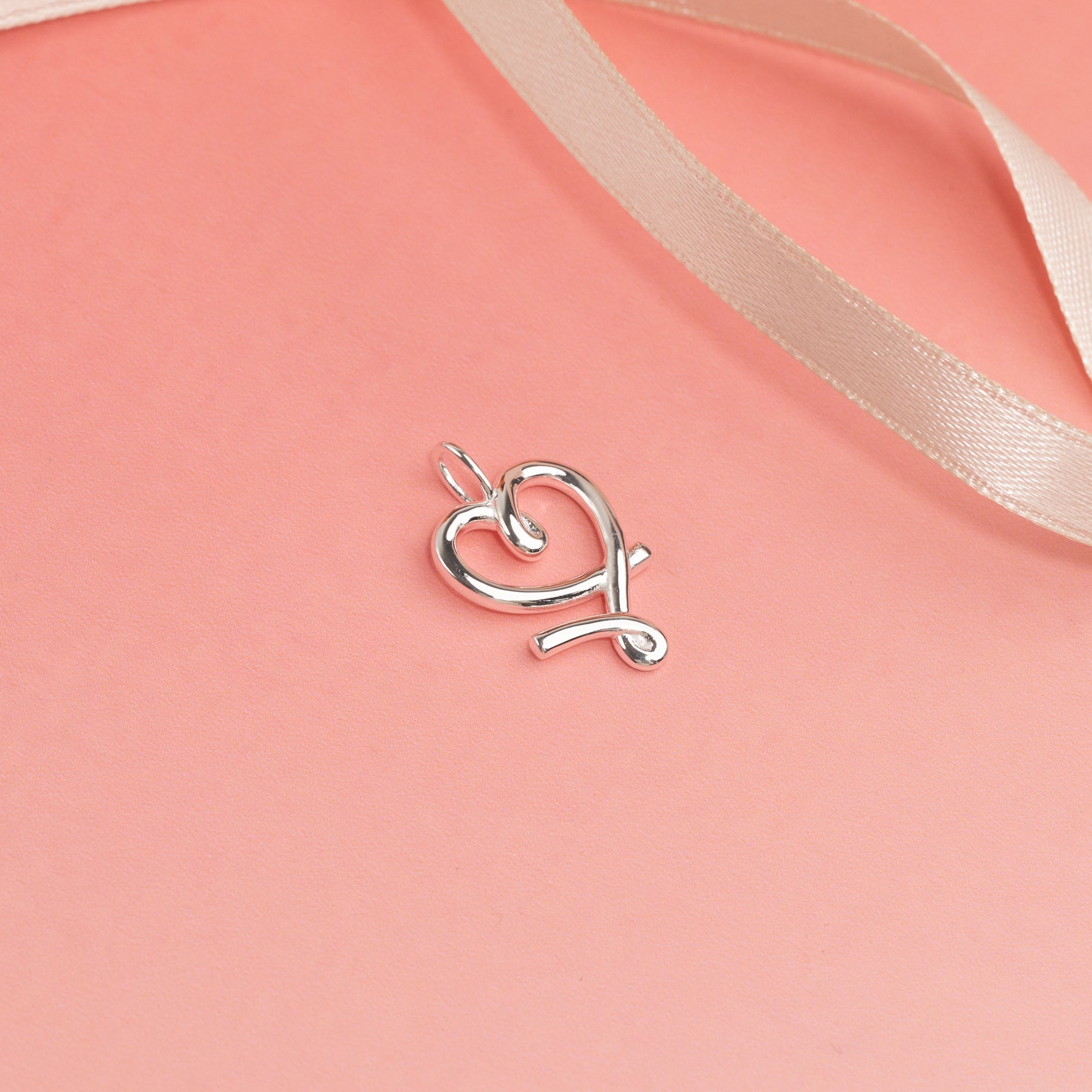 The pendant features an organic heart-shaped design with delicate twisted details, creating a light and feminine look. It measures 12.5 mm in width and approximately 17 mm in height.