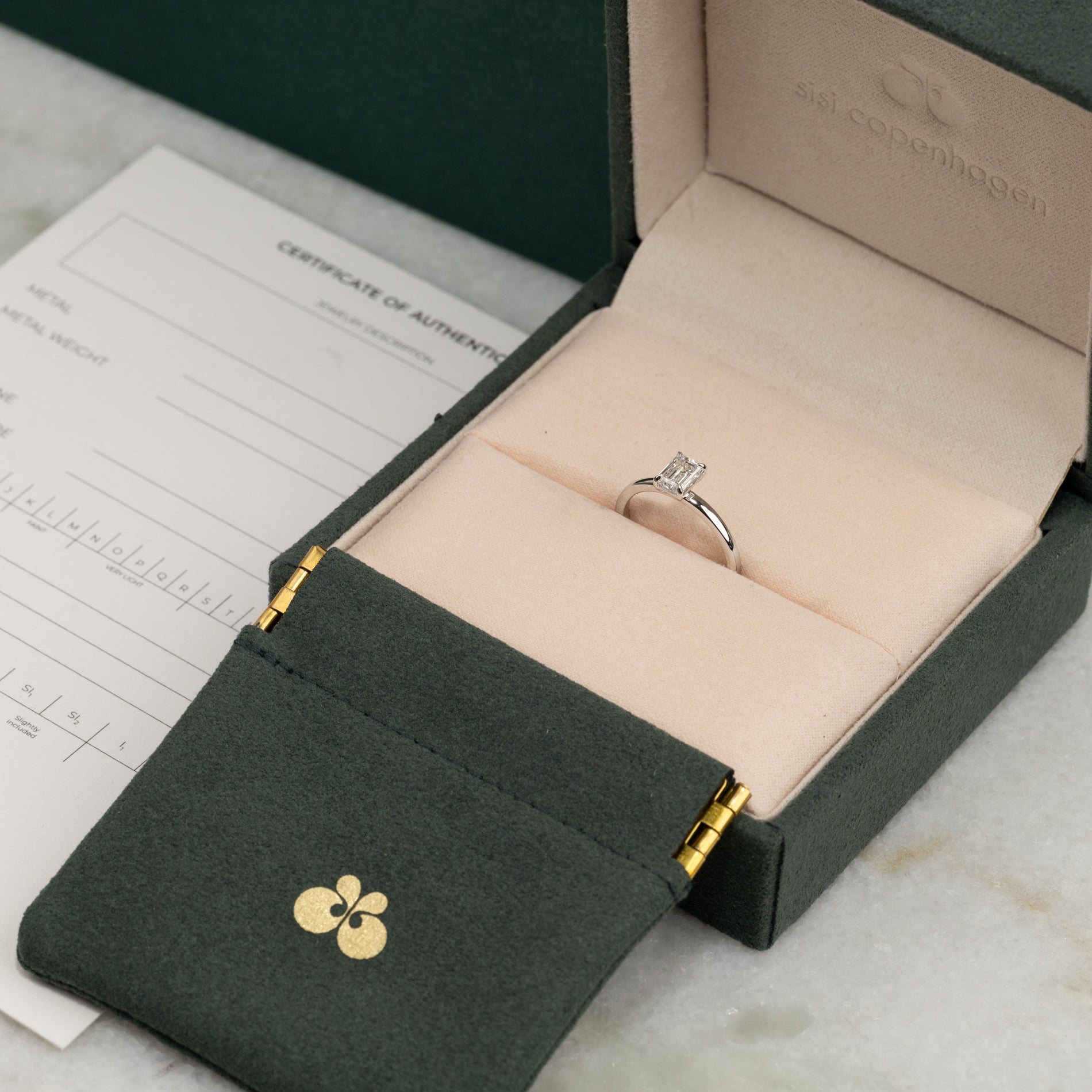 The ring is delivered in our exclusive Diamond Collection box, which includes a jewelry case, a certificate and a travel pouch.