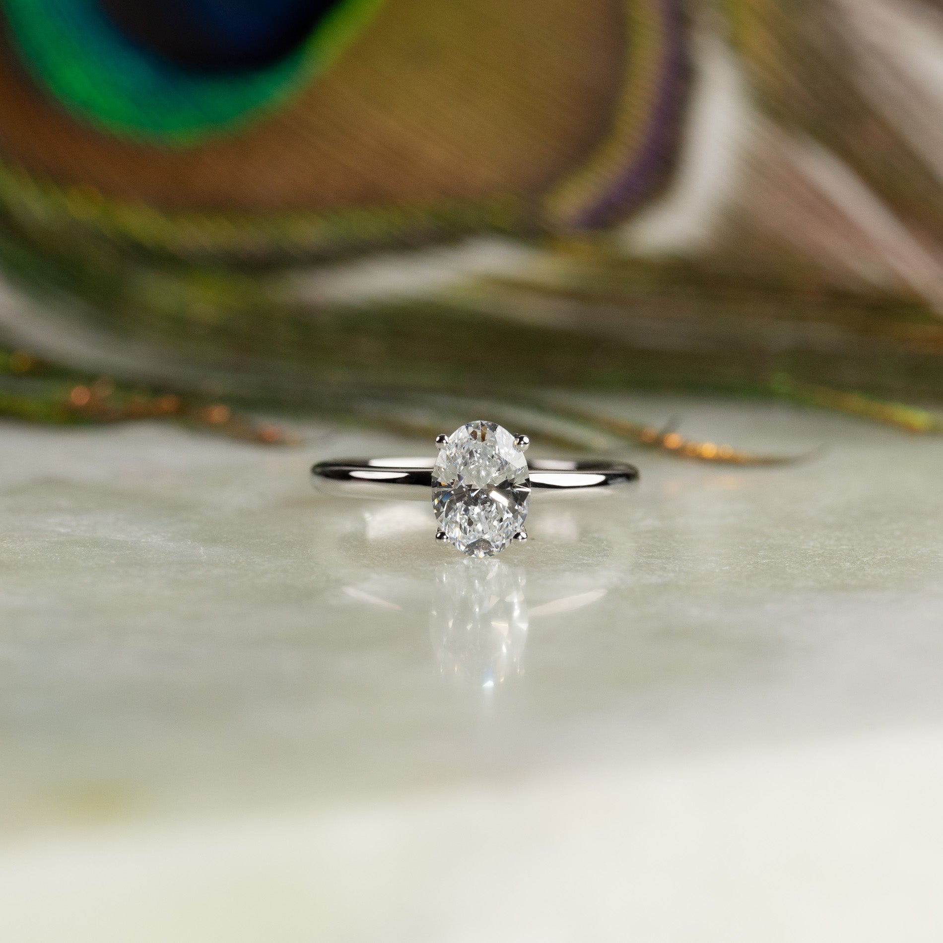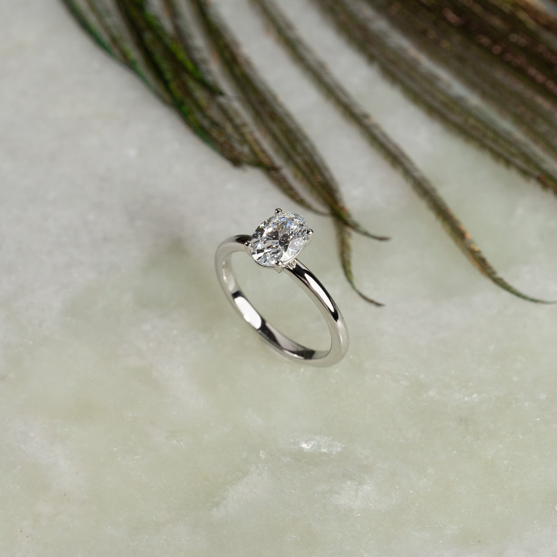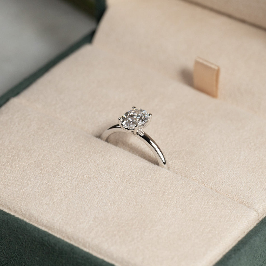 Solitaire ring with 1.0 ct. oval-cut lab-grown diamond in 14 kt. white gold
