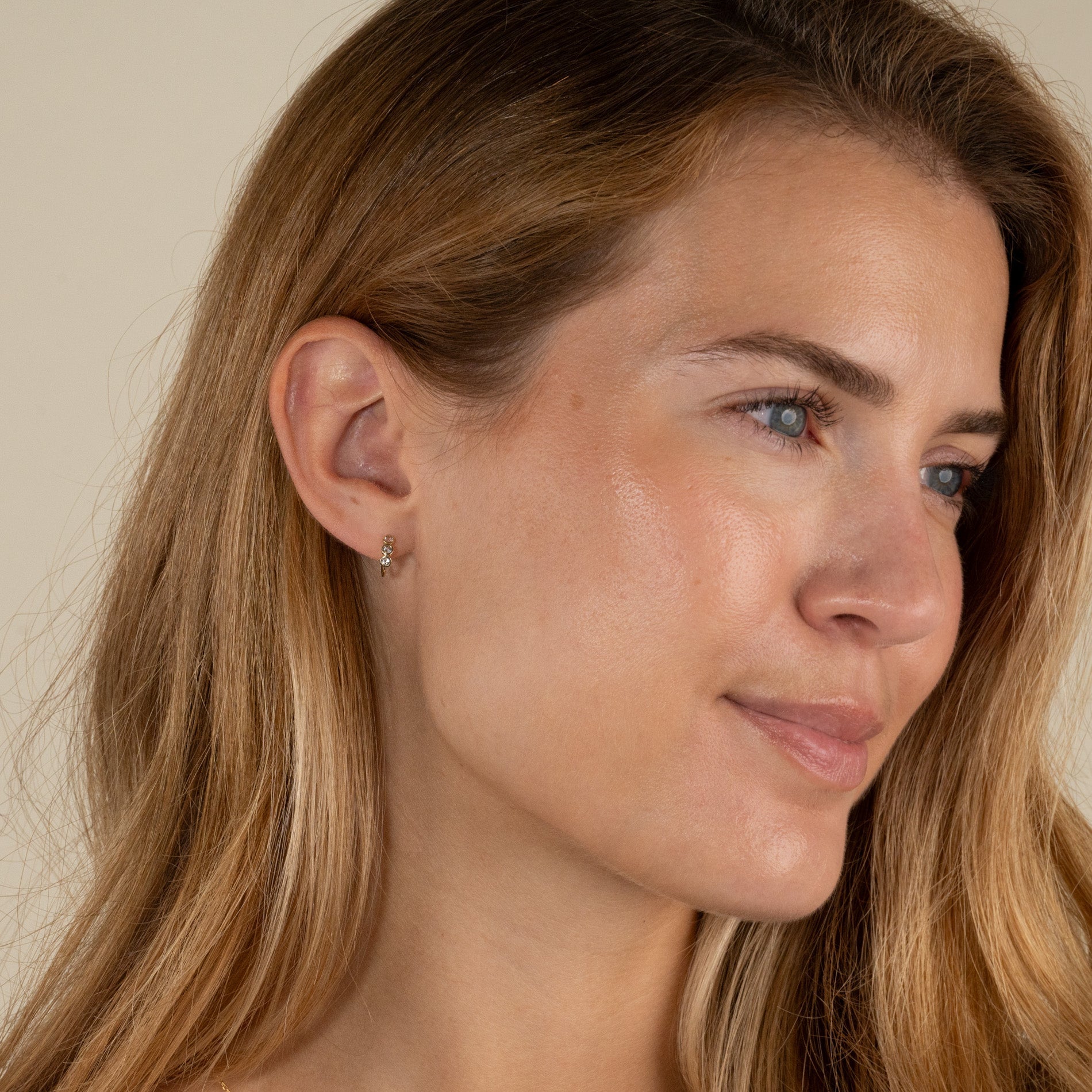 Each stone measures Ø: 3mm, and the earrings have a height of 10mm.